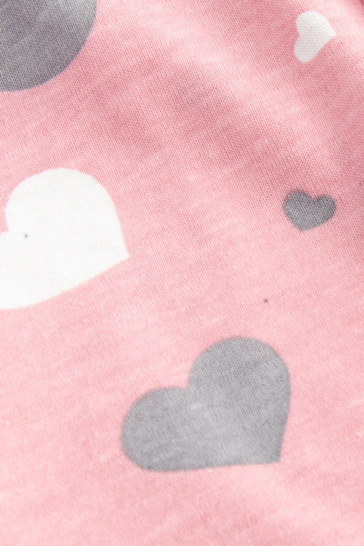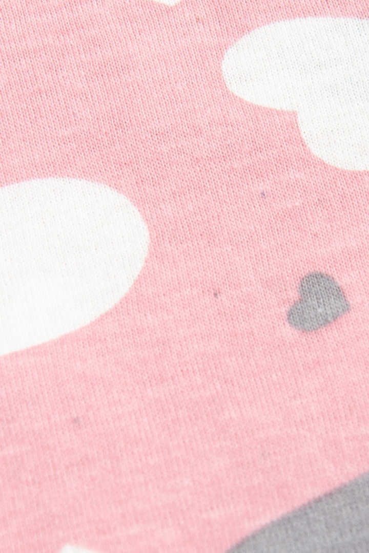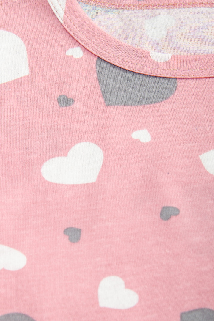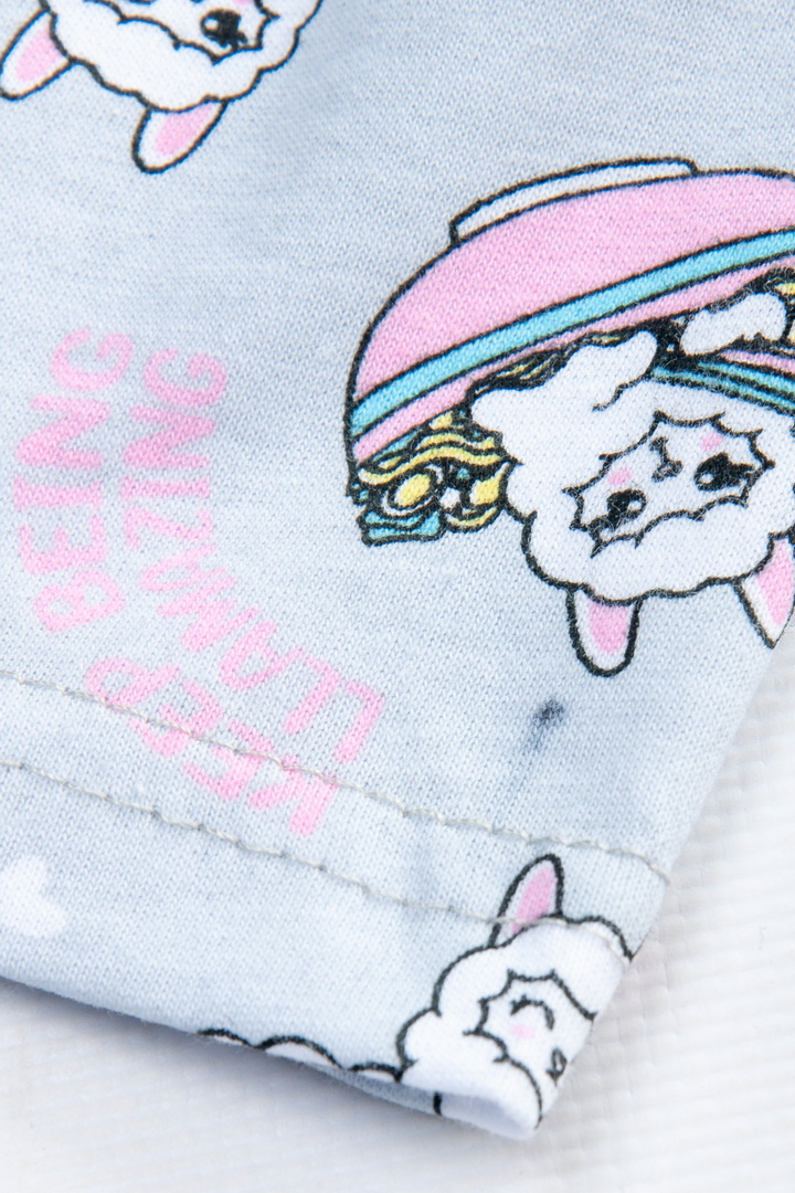 Легка зручна піжама для дівчаток з принтованого куліру. Модель вільного крою, складається з футболки з короткими рукавами, зі спущенною лінією плеча, округлою горловиною, а також шорт на еластичній тасьмі. Завдяки натуральному складу полотна (100% бавовна) ця піжама стане улюбленою річчю в домашньому гардеробі дівчаток.