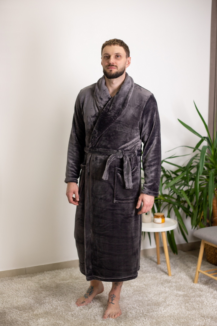 Модель має зручний пояс та кишені — для максимальної зручності. Такий халат стане чудовим подарунком для чоловіка, батька або сина. Ідеальний вибір для щоденного домашнього відпочинку.