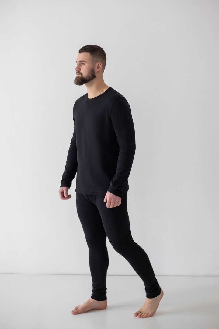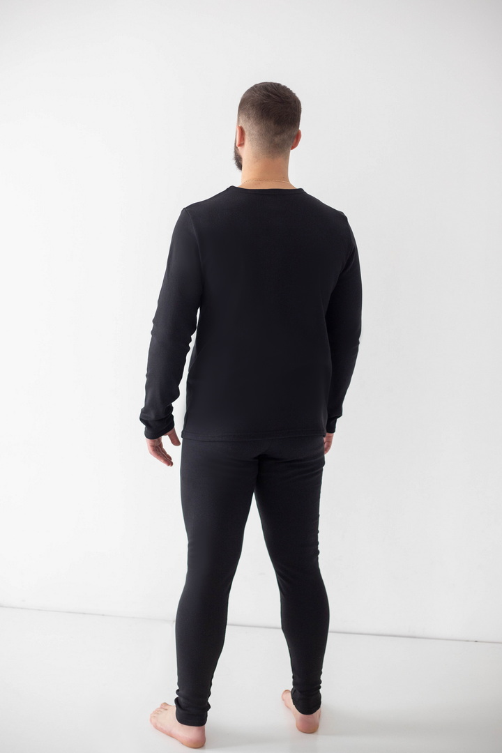 Натільна білизна складається із джемпера та кальсон. Комплект приталеного силуету, з округлою горловиною. Виготовлений зі стрейча з начосом. Полотно еластичне, м'яке, забезпечує термоізоляцію. Цей комплект стане незамінною річчю в холодну пору року.