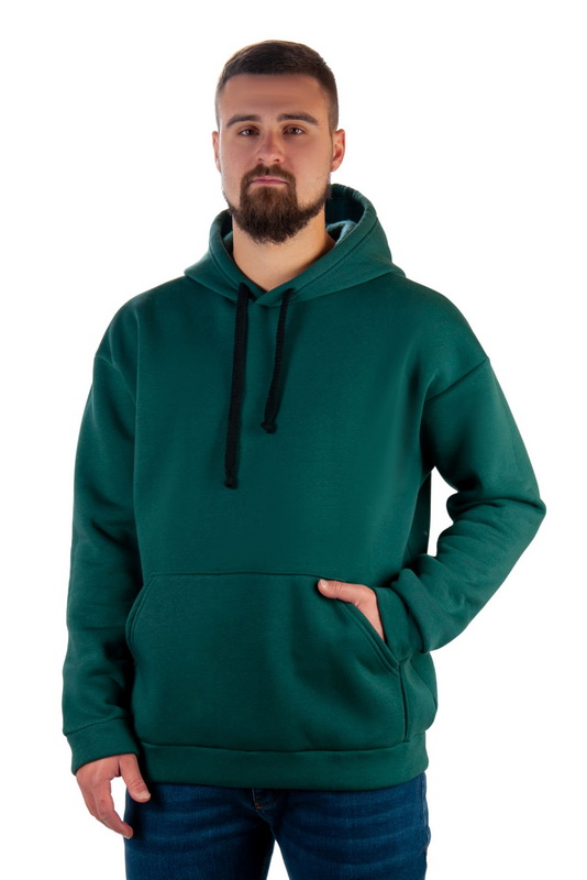 Худі для чоловіків з якісного трикотажного полотна тринитка. Тринитка - полотно з виворітного боку має начісування, що робить його теплим, дуже м'яким і приємним на дотик. Привабливий зовнішній вигляд та оригінальна текстура роблять тринитку найпопулярнішим матеріалом. Таке полотно має гарну теплоізоляцію, повітропроникність, м'якість, еластичність. Вироби з такого полотна комфортні та приємні на дотик. Модель прямого силуету, довгі рукави та низ – з манжетами. Худі - це відмінний вибір для повсякденного носіння, що буде актуальним незалежно від модних тенденцій. Його легко можна комбінувати з будь-яким повсякденним одягом – штани, джинси.