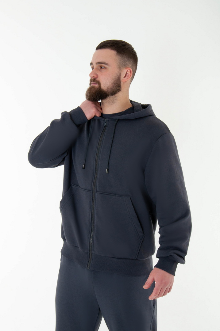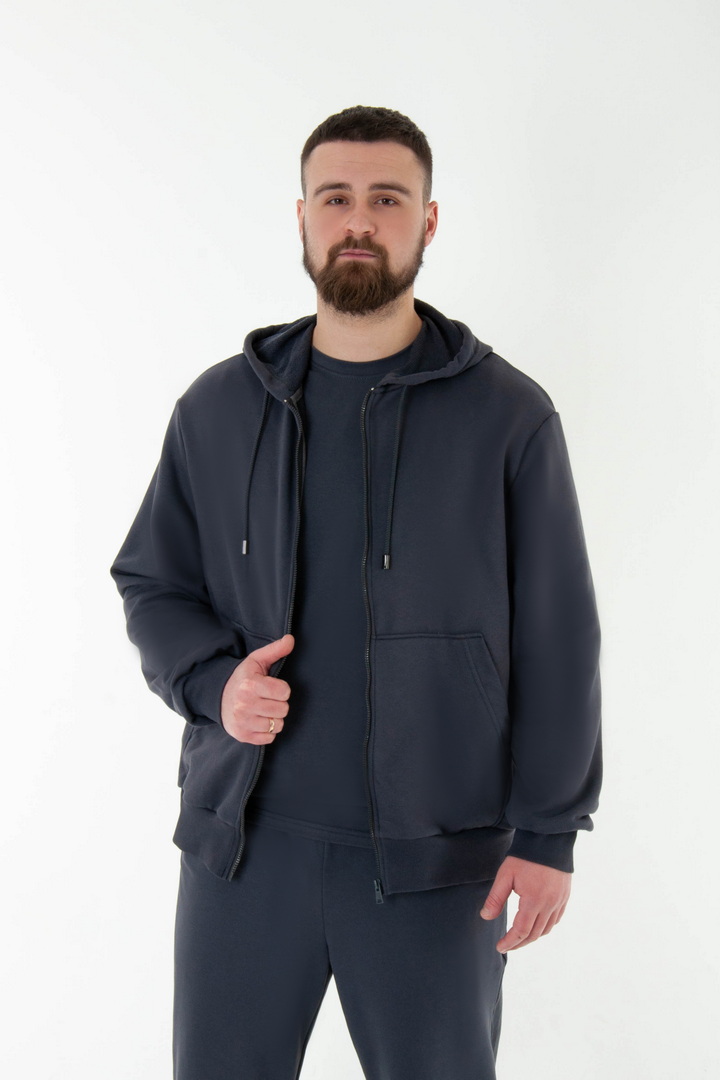 Стильна чоловіча зіп-худі з тринитки петлі пеньє — ідеальний вибір для тих, хто цінує комфорт, якість і лаконічний дизайн. Модель виконана з трикотажу пеньє, який відрізняється підвищеною м’якістю та приємними тактильними відчуттями. Зіп-худі має зручну застібку-блискавку по всій довжині, що дозволяє легко регулювати посадку та створювати різні образи — від спортивного до casual. Капюшон з кулісками забезпечує додатковий захист від вітру та прохолоди, а місткі накладні кишені додають практичності та зручності у повсякденному використанні. Манжети та низ виробу виконані з еластичної резинки, завдяки чому худі комфортно сідає по фігурі. Універсальний фасон робить модель актуальною у будь-яку пору року. Зіп-худі з тринитки петлі пеньє — це база чоловічого гардероба, яка поєднує стиль, комфорт і надійну якість на кожен день.