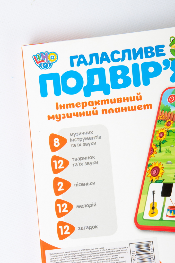 Загадки, цифри, музика, звук (українська, англійська), світло.