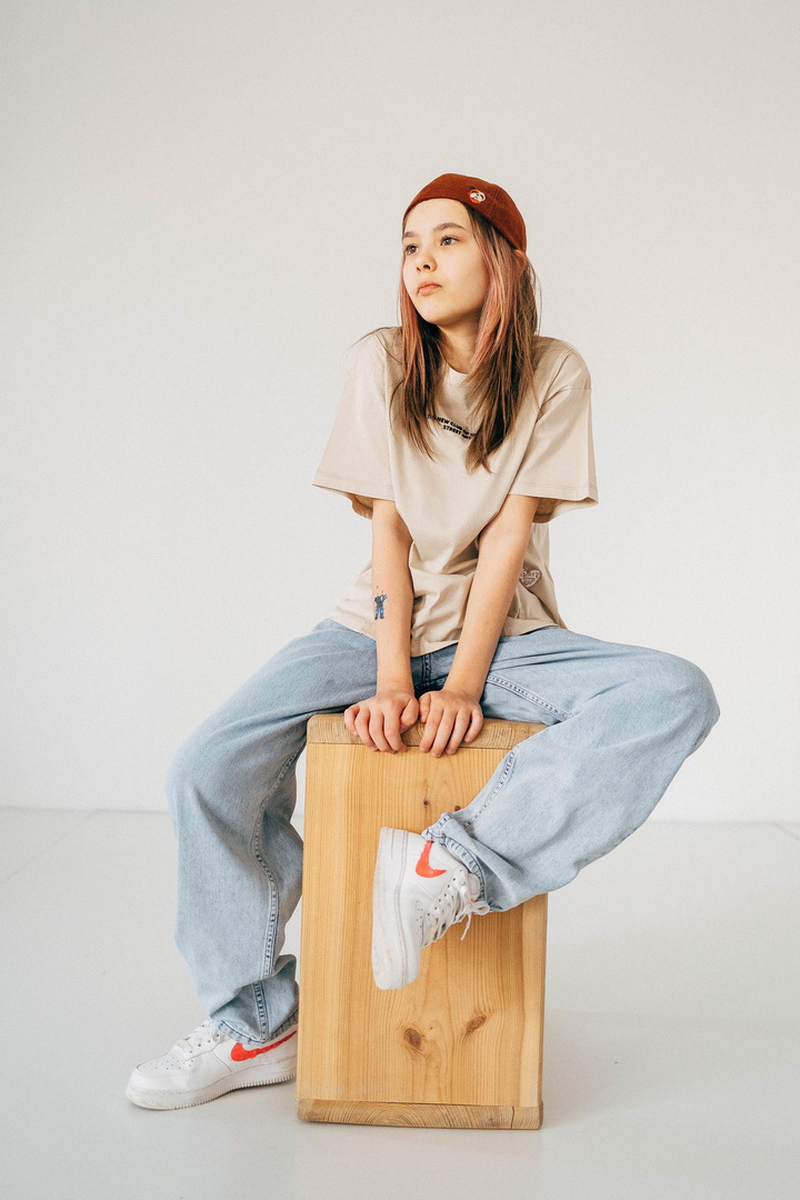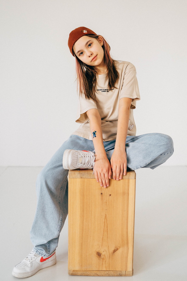 Параметри моделі: обхват грудей 77, талія 60, стегна 78, зріст 150 см. Розмір одягу 10