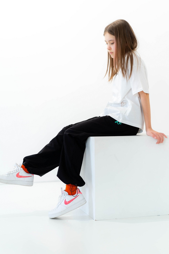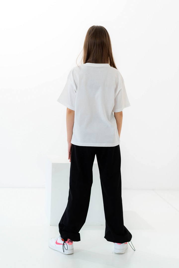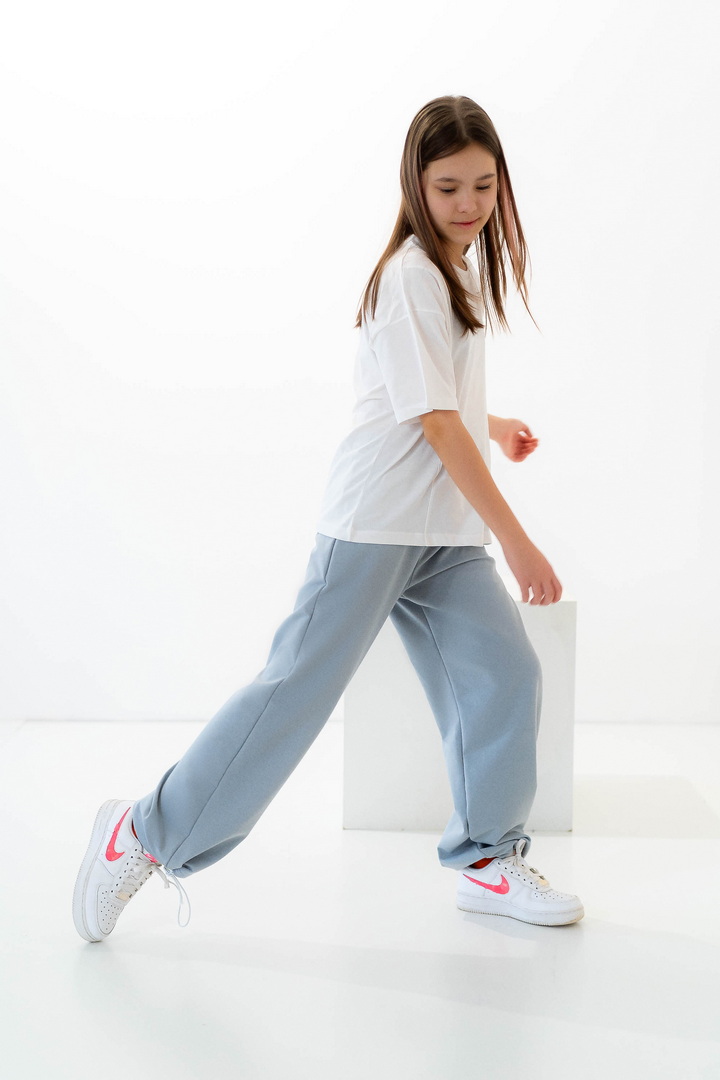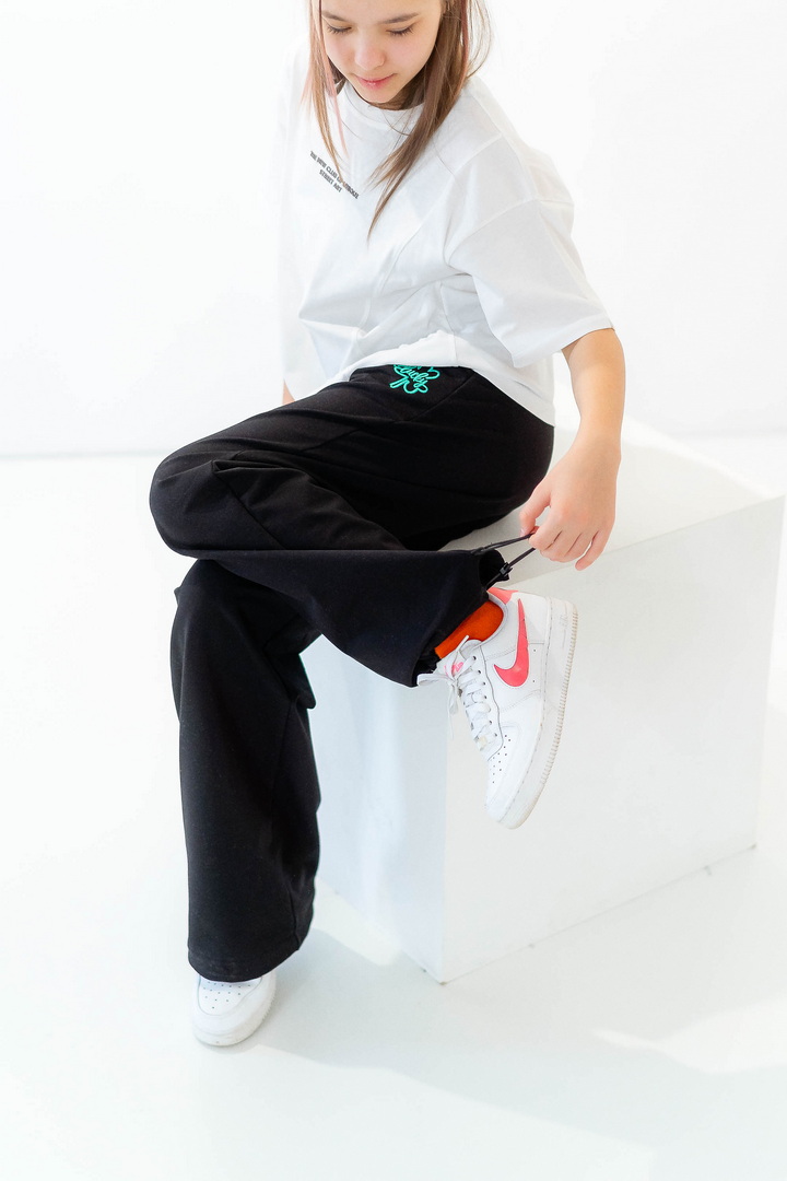 Стильні штани для дівчат із середньою посадкою. Модель виготовлена з полотна "Футер двонитковий", пояс на резинці із шнурком, ефектності додають затяжки внизу виробу, які можна призібрати. Штани не тільки стильна, а й універсальна річ, їх можна носити по-різному, створювати модні та трендові образи. Прекрасно комбінуються з футболками, щоб завершити образ можна додати розстебнутою сорочкою, джинсовою курткою. Також з такими брюками чудово комбінується спортивне взуття.