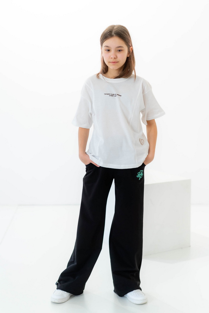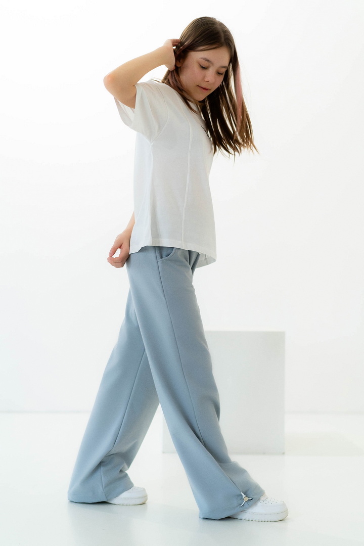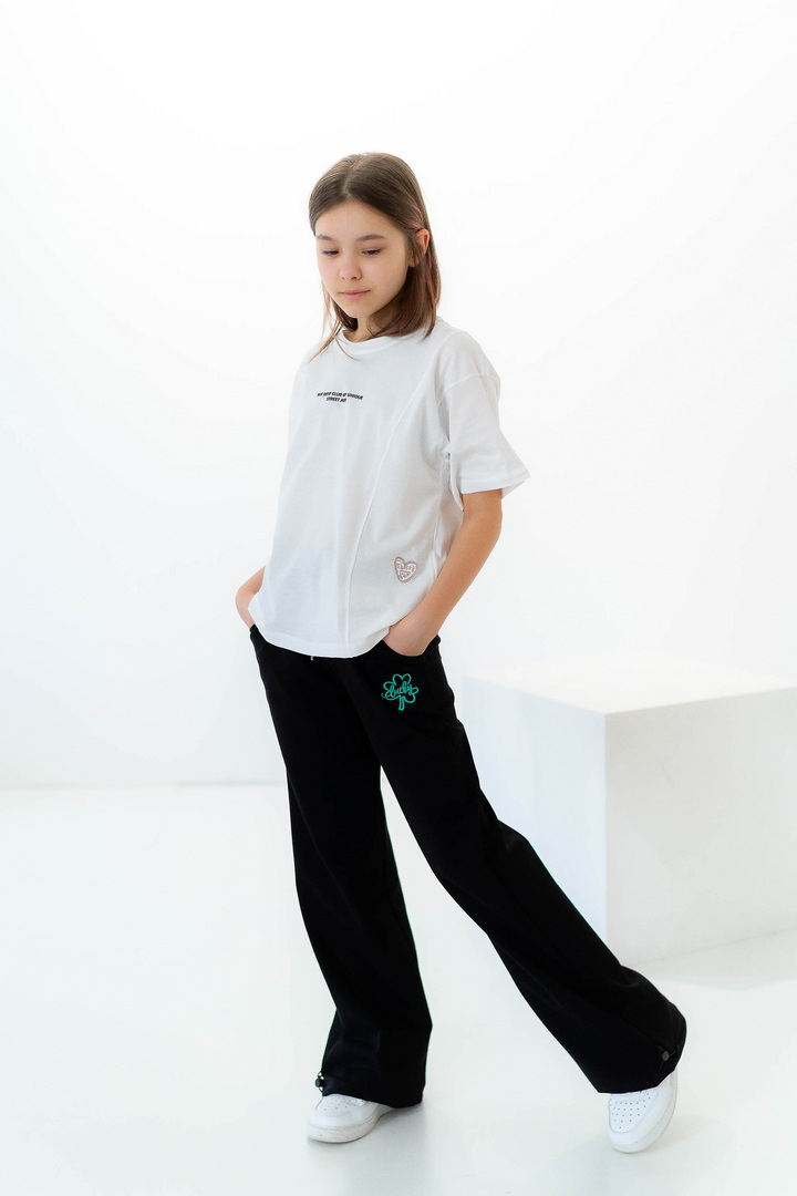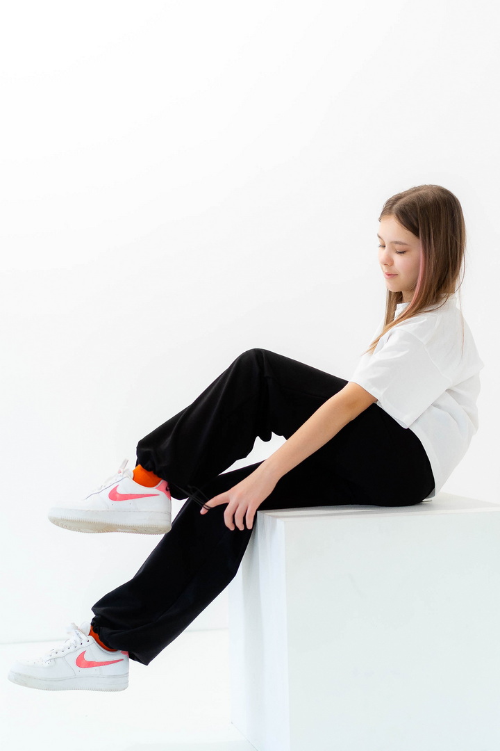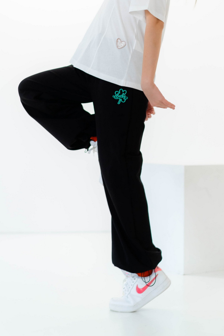 Стильні штани для дівчат із середньою посадкою. Модель виготовлена з полотна "Футер двонитковий", пояс на резинці із шнурком, ефектності додають затяжки внизу виробу, які можна призібрати. Штани не тільки стильна, а й універсальна річ, їх можна носити по-різному, створювати модні та трендові образи. Прекрасно комбінуються з футболками, щоб завершити образ можна додати розстебнутою сорочкою, джинсовою курткою. Також з такими брюками чудово комбінується спортивне взуття.