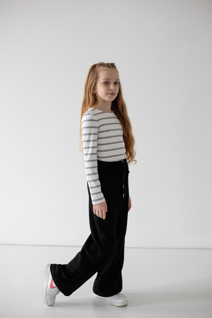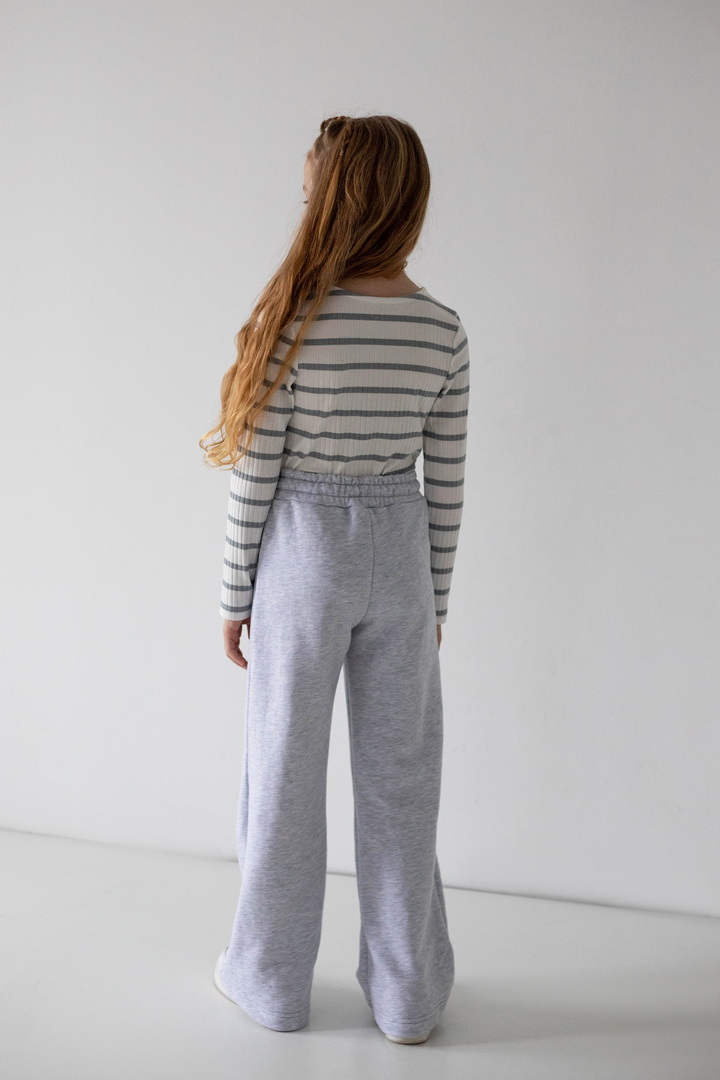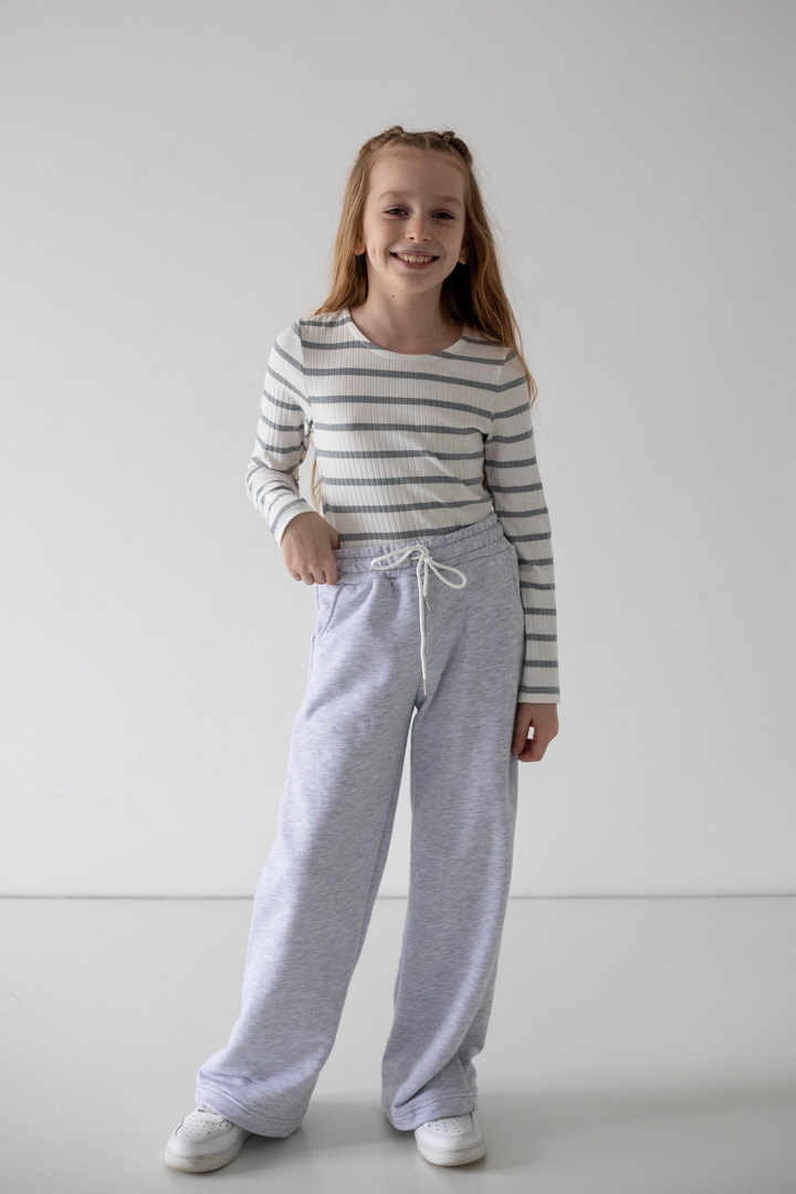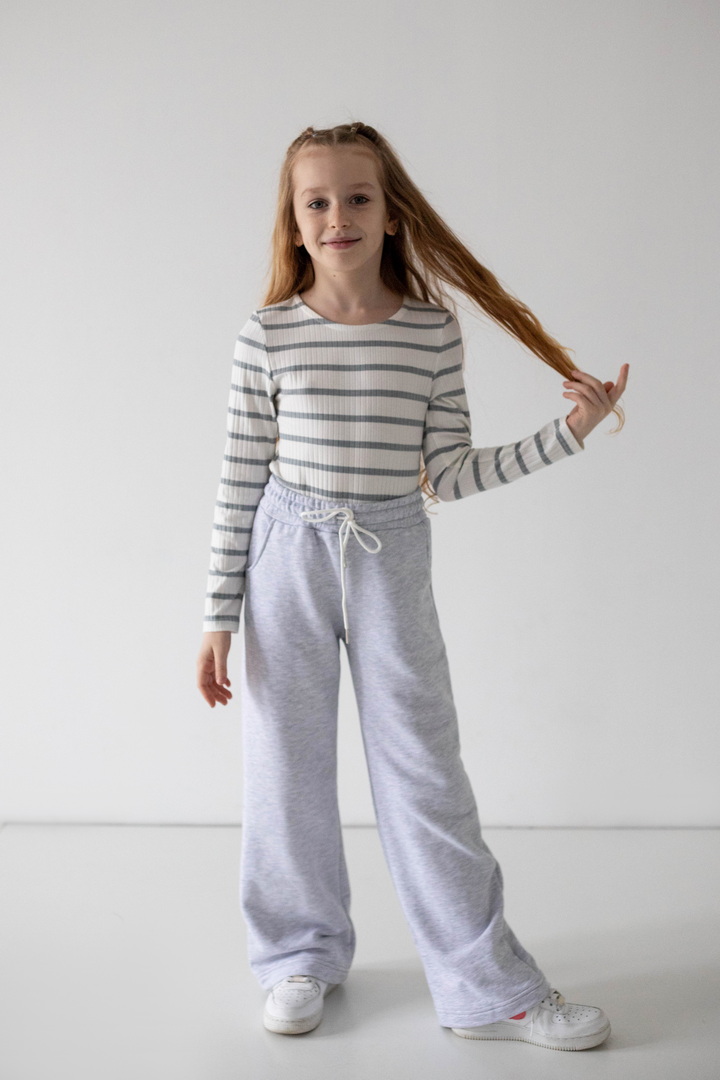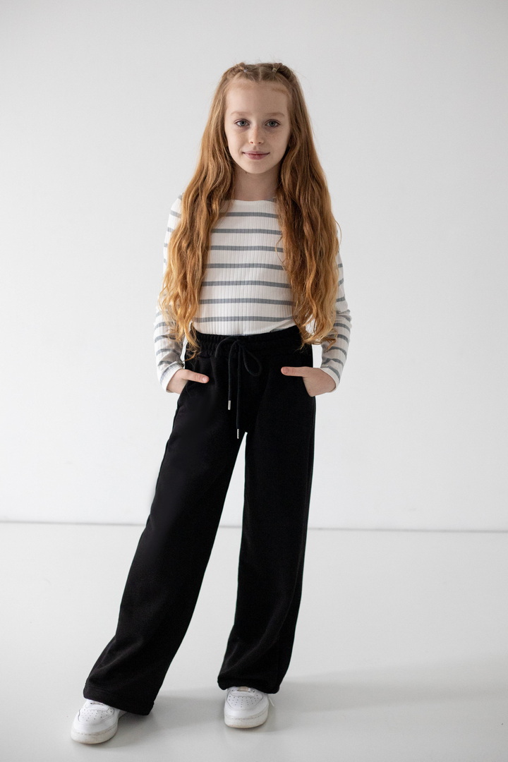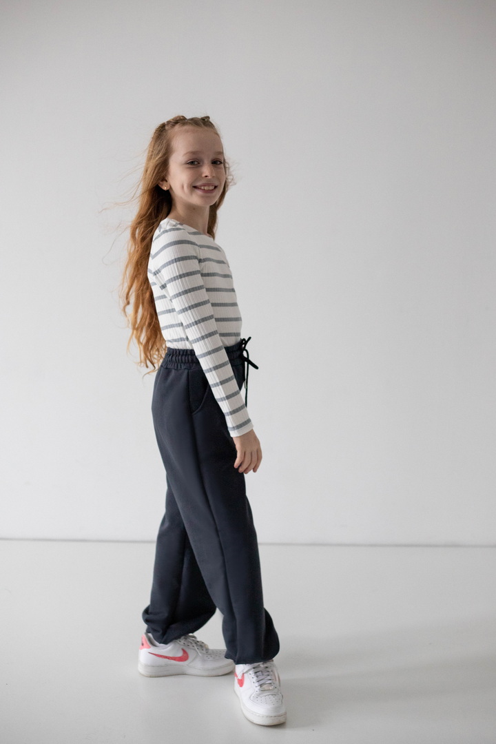 Ці штани — про свободу, комфорт і стиль, який відчувається з першого дотику. Створені з тринитки петлі пеньє, вони м’яко огортають тіло, дарують тепло та ідеально підходять для активних буднів дівчинки. Тканина дихає, не втрачає форму та залишається приємною до шкіри. Сучасний вільний крій виглядає трендово — у цих штанах зручно бігати, гуляти, подорожувати й просто насолоджуватися кожним днем. Пояс на м’якій резинці зі шнурком забезпечує комфортну посадку та легко підлаштовується під фігуру. Особливий акцент моделі — низ штанів із фіксаторами. Вони дозволяють змінювати настрій образу: залишити штани вільними або акуратно зібрати низ, додаючи спортивної динаміки та практичності. Це деталь, яка робить модель універсальною та по-справжньому сучасною.