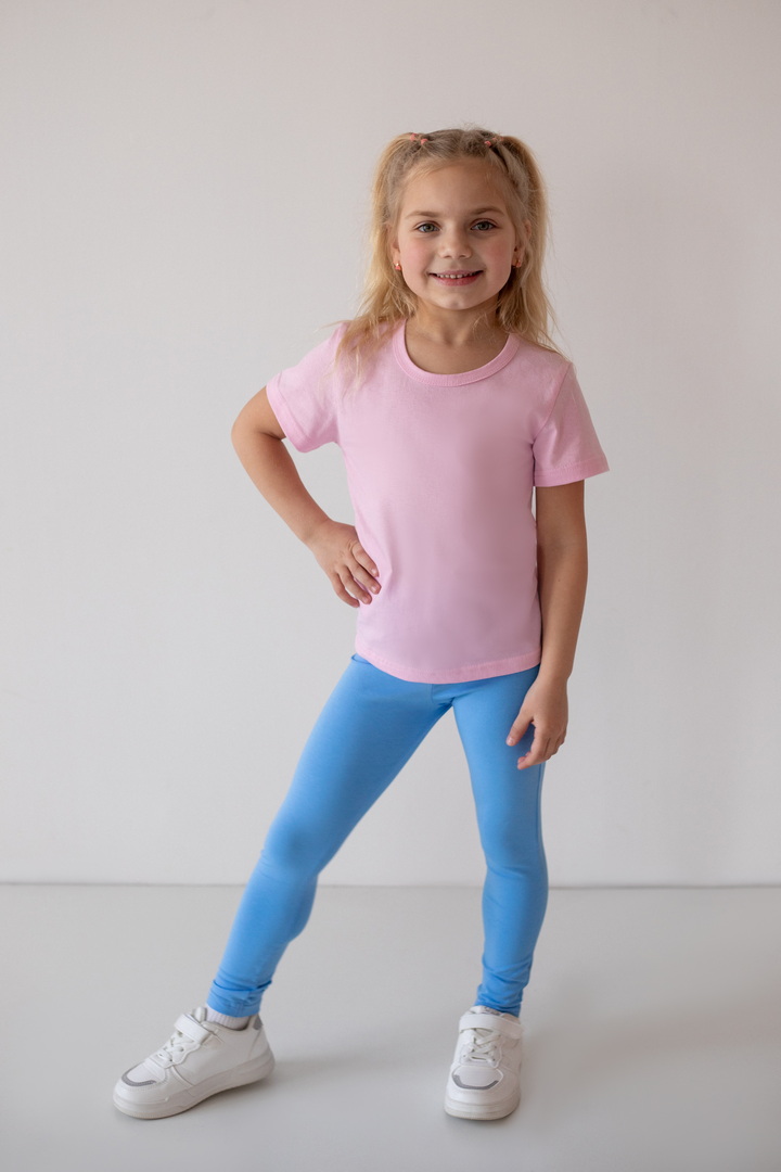Базові легкі лосини для дівчаток із еластичного стрейч-куліру. Модель на резинці. Лосини - must have в гардеробі кожної дівчинки, модель комфортна для носіння на кожен день, під туніки, футболки та топи, також підходить для занять спортом та активного відпочинку. Полотно гарної якості, легке, еластичне, натуральне за складом.