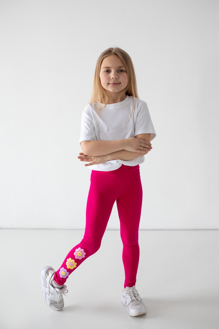 Ці лосини — справжній must-have для маленьких непосид. Легкі, ніжні та неймовірно зручні — вони створені для дівчаток, які не сидять на місці та щодня відкривають світ по-своєму. Стрейч-кулір пеньє дарує відчуття «другої шкіри»: м’яко огортає, дозволяє тілу дихати та забезпечує абсолютну свободу. Матеріал еластичний і витривалий — не деформується, не втрачає яскравості та виглядає бездоганно. Лосини ідеально сідають по фігурі, формуючи акуратний силует, а комфортний пояс ніжно фіксується на талії без зайвого тиску. А особливого шарму додають стильні принти внизу виробу — саме той акцент, який робить образ грайливим, сучасним і по-справжньому дитячим. Це той варіант, який легко стає улюбленим: швидко вдягнули — і вперед до пригод, ігор та нових відкриттів.