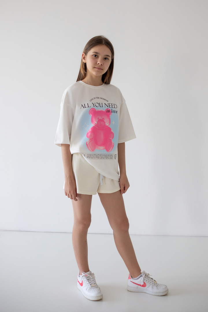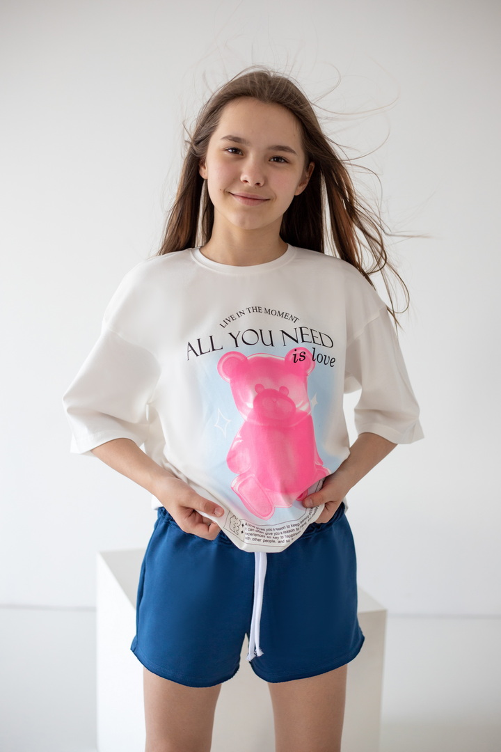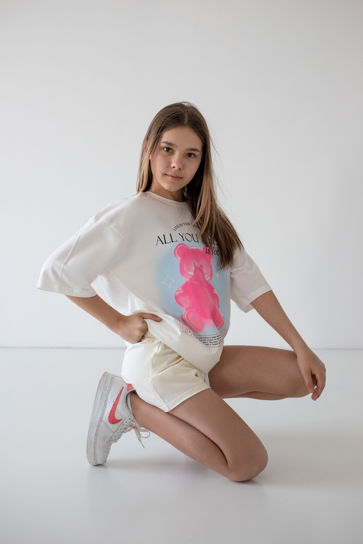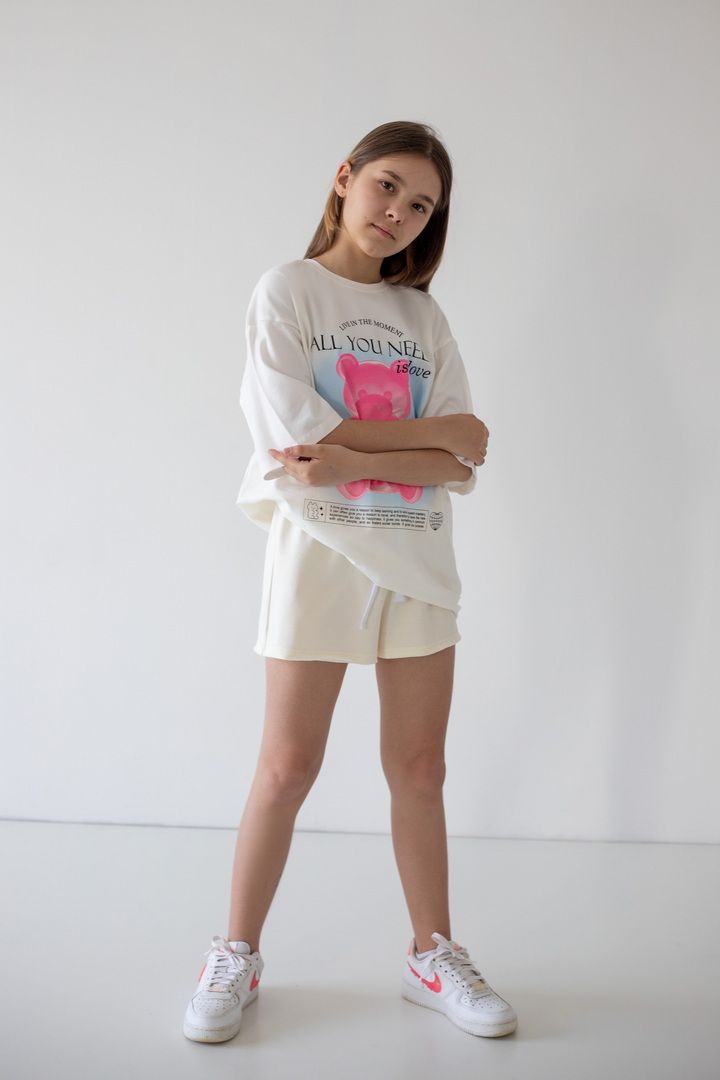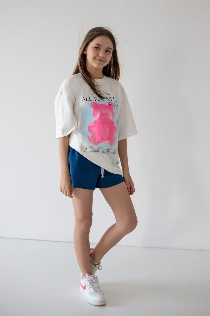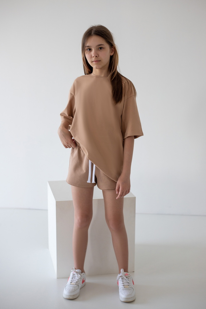 Базові літні шорти для дівчат-підлітків з двониткового футера. Модель стандартної посадки, з кишенями, пришивним поясом з широкою еластичною тасьмою, відстрочкою і шнурком. Шорти універсальні, підходять для носіння з будь-якою футболкою, топом. Полотно хорошої якості, не скачується.