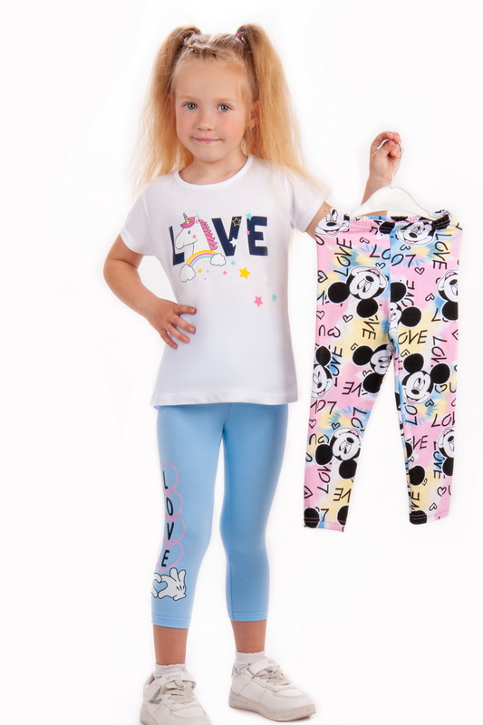 Комплект трес для дівчаток зі стрейч-куліру. Полотно хорошої якості, легке, завдяки наявності еластану в складі, треси добре прилягають до ніжок. Доповнити образ можна однотонною футболкою, топом або світшотом.