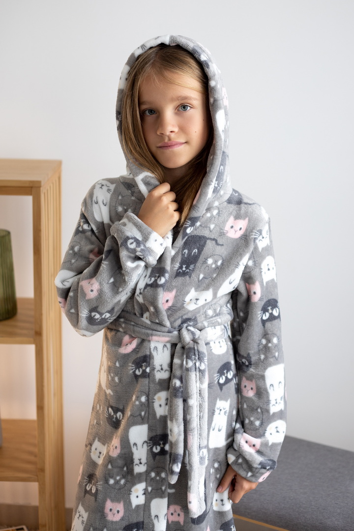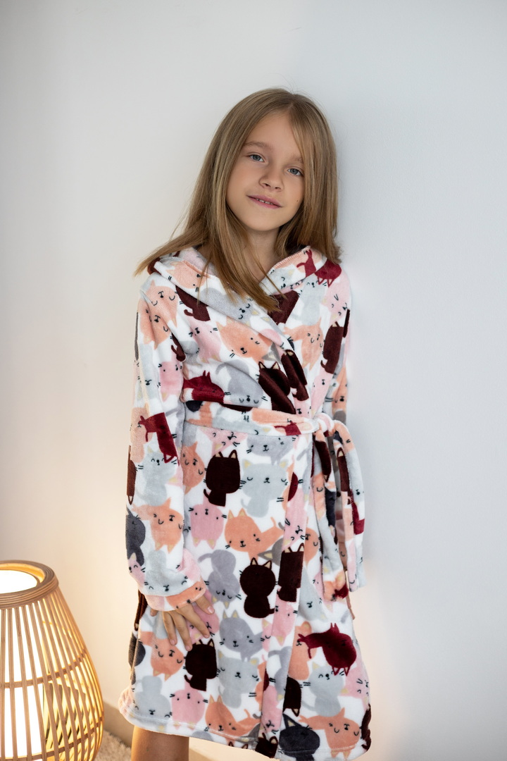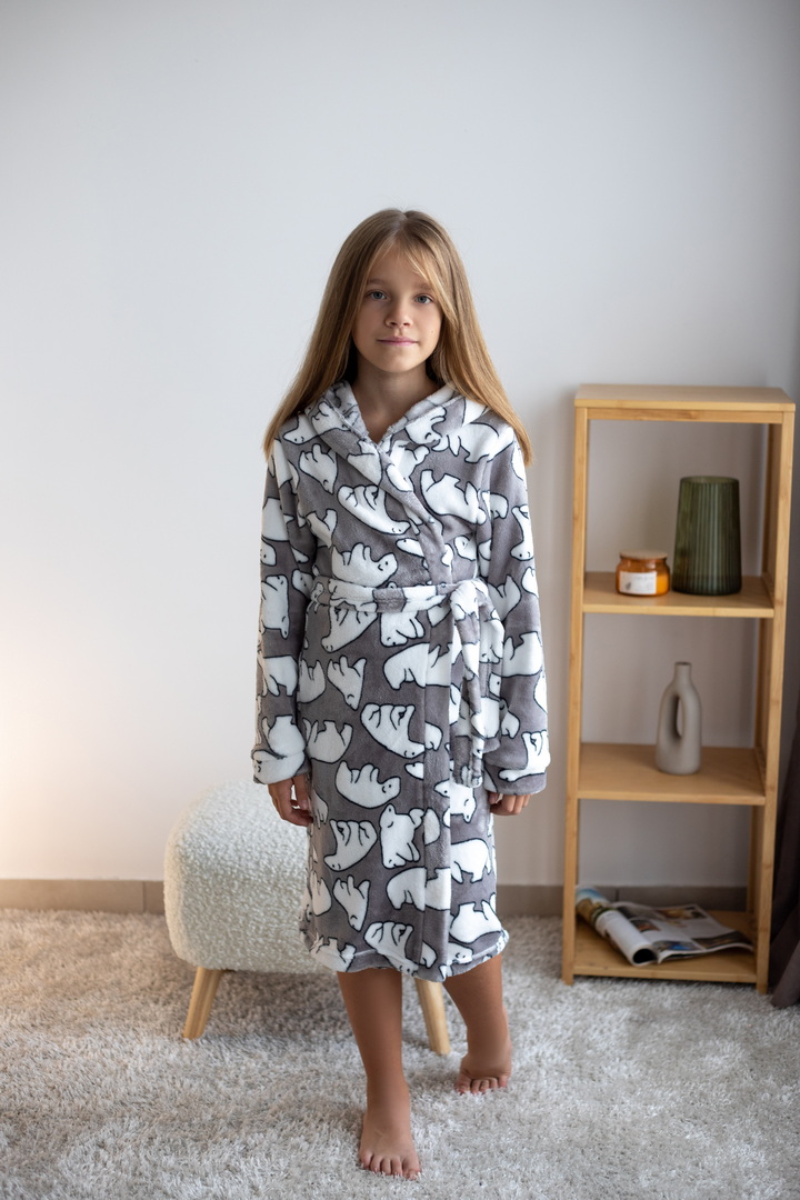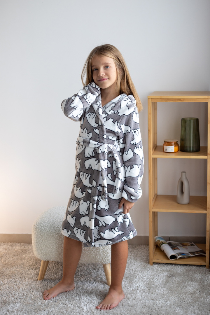 Теплий та затишній халат для дітей, який виготовлено з м'якого та яскравого трикотажного полотна. Велсофт/рвана махра (Welsoft) - трикотажне полотно з дуже м'яким високим ворсом. Часто використовується для пошиття халатів, ясельних комбінезонів. Рвана махра практична в використанні та не розтягується і не сідає після прання. Підходить для повсякденного використання у будь-яку пору року. Розрахований на дітей віком від 7 до 13 років.