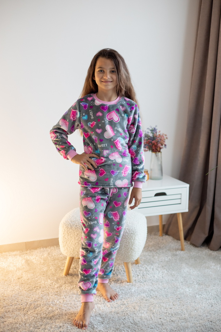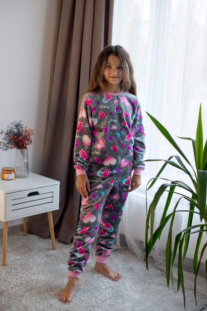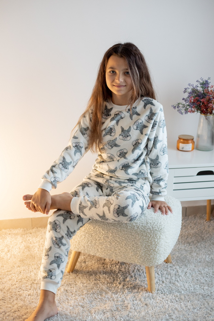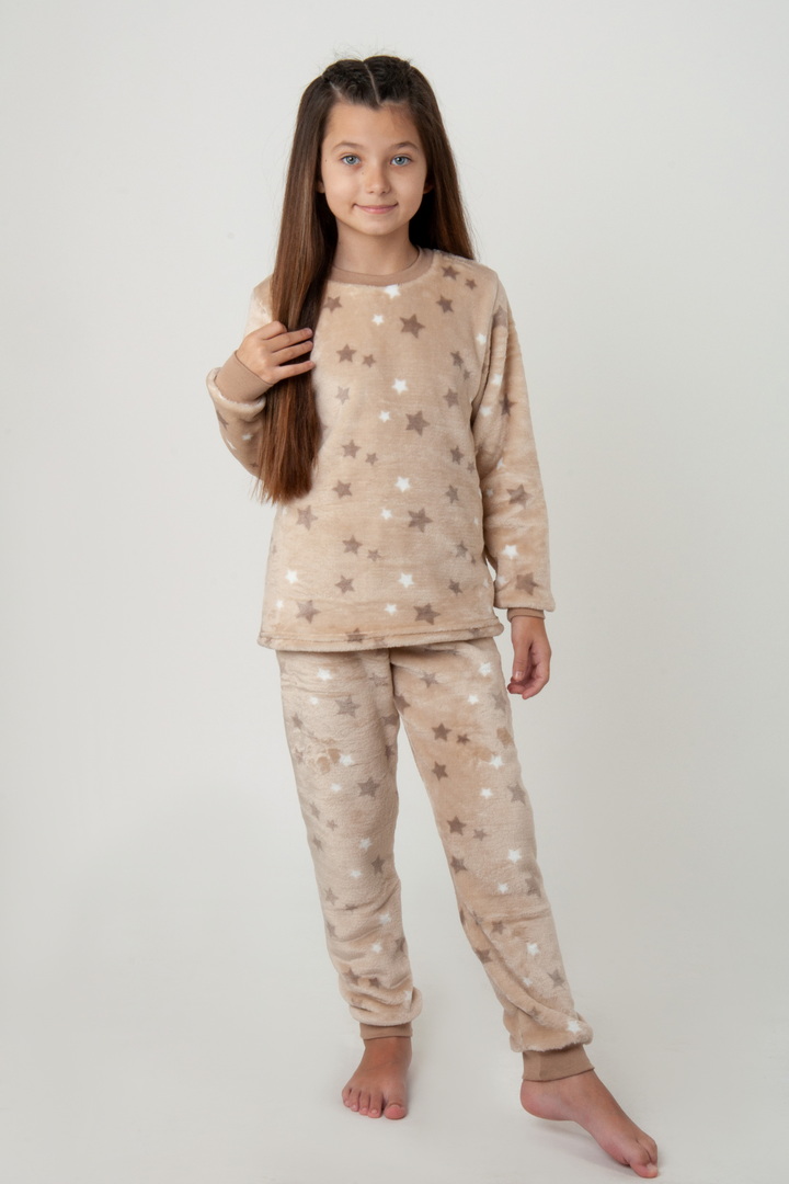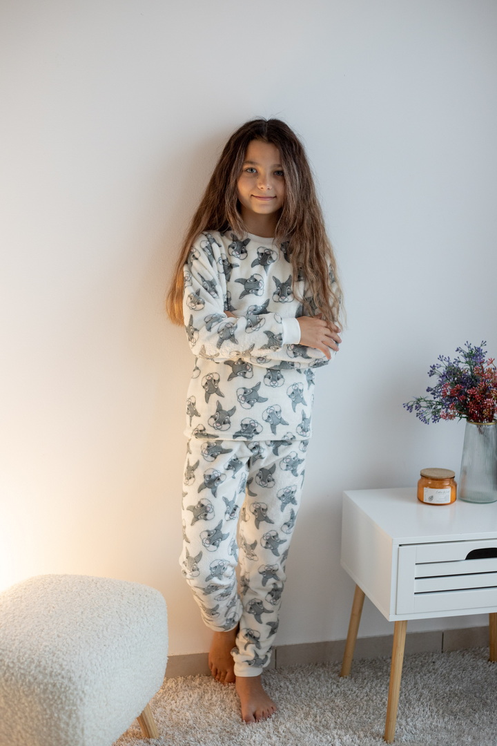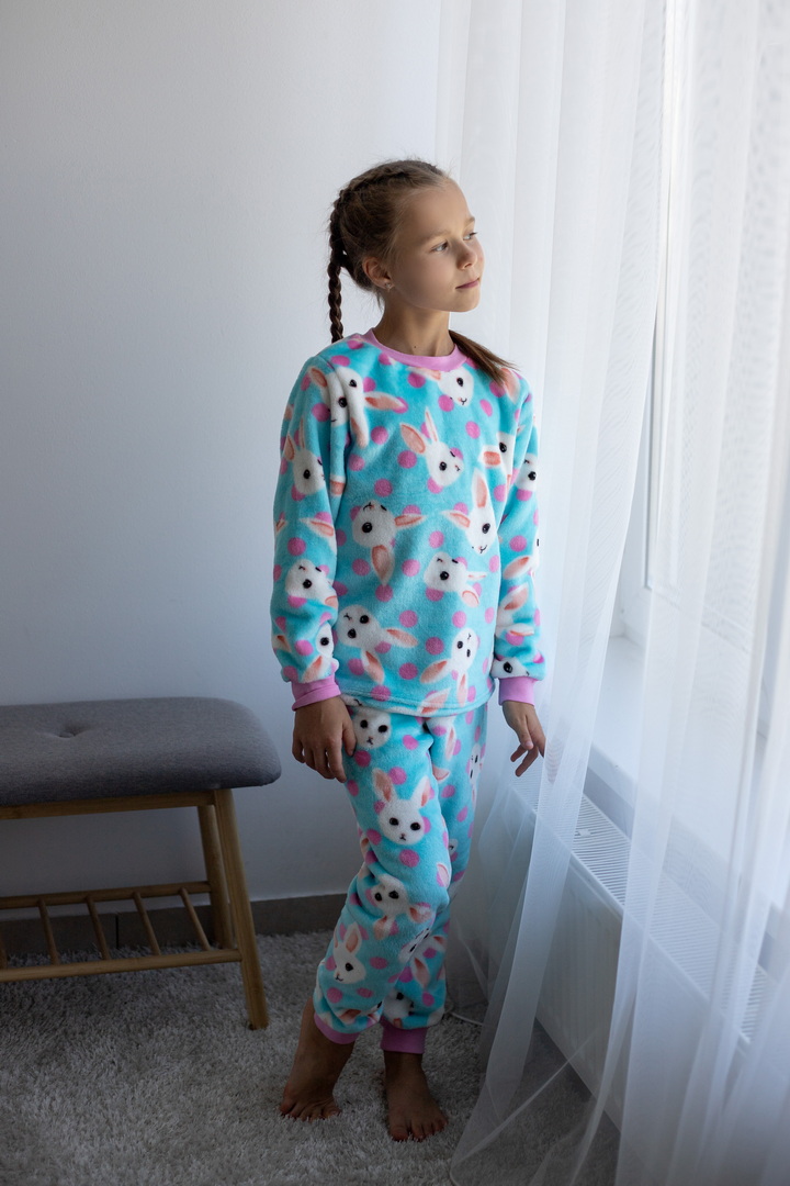 Дитяча тепла піжама, виготовлена з м'якого, ніжного полотна "Махра", складається з джемпера та штанів (рукава та низ штанів на еластичних манжетах для зручності у використанні). Теплий домашній одяг та одяг для сну часто виготовляють саме з махри через те, що така тканина гарно зберігає тепло в прохолодну пору року та дає можливість шкірі дихати - тому комфортний та здоровий сон вам забезпечений.