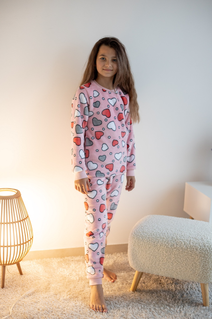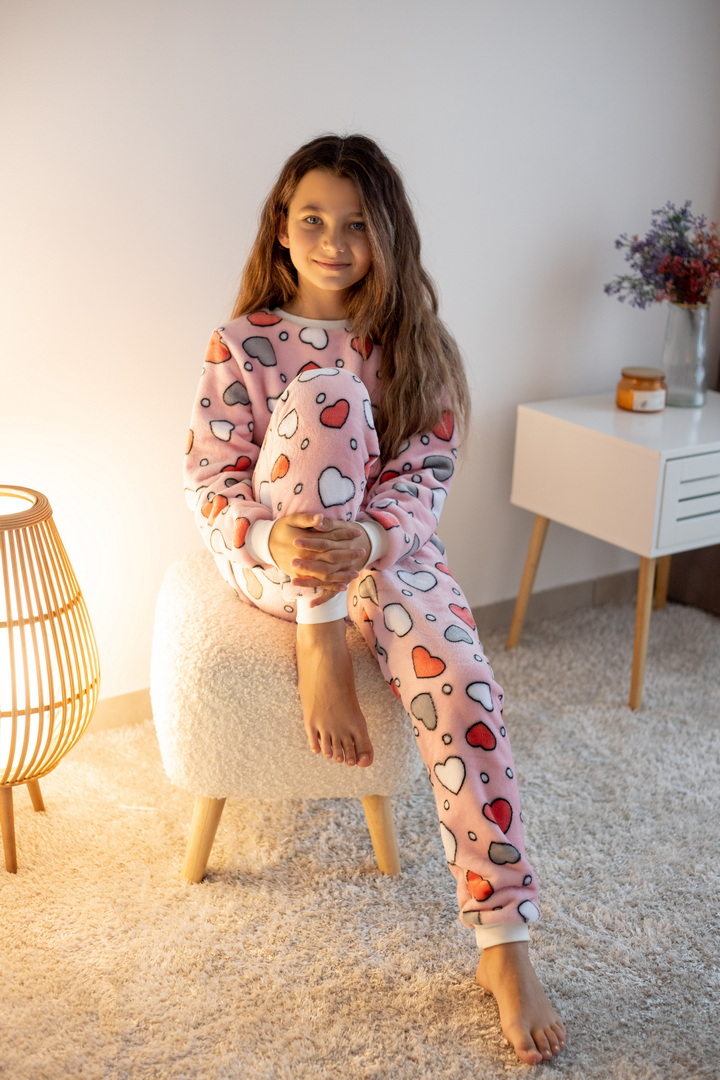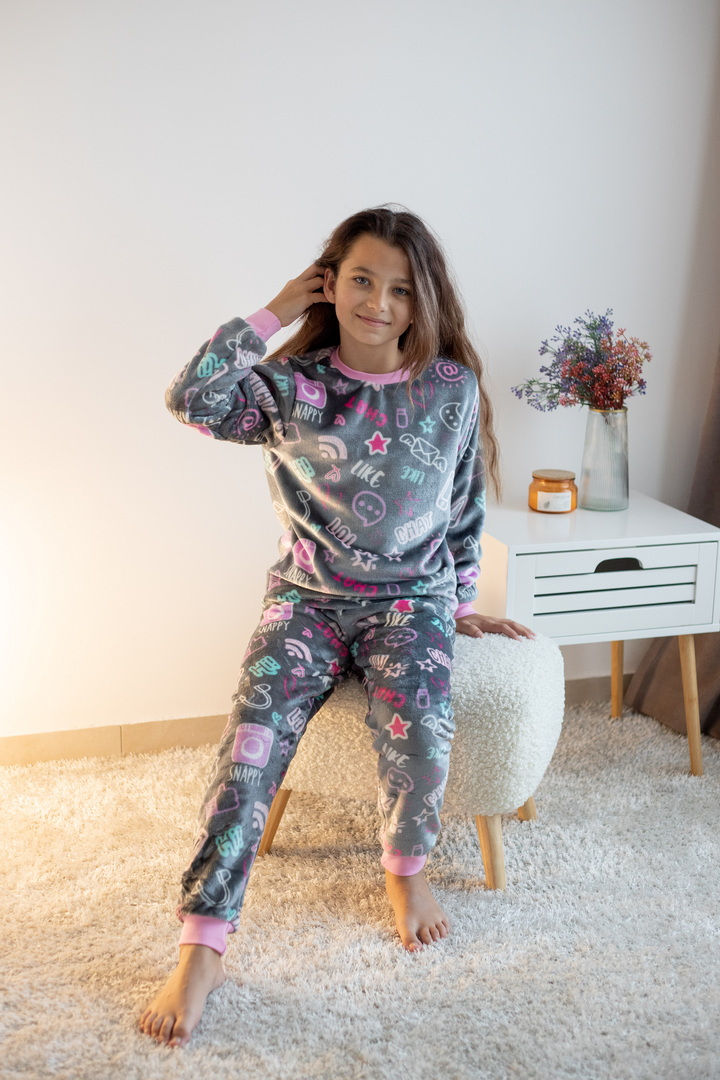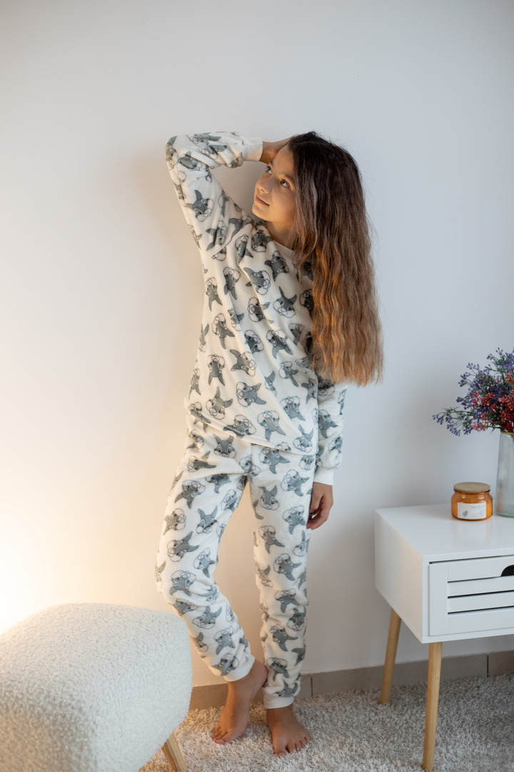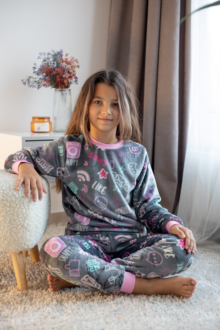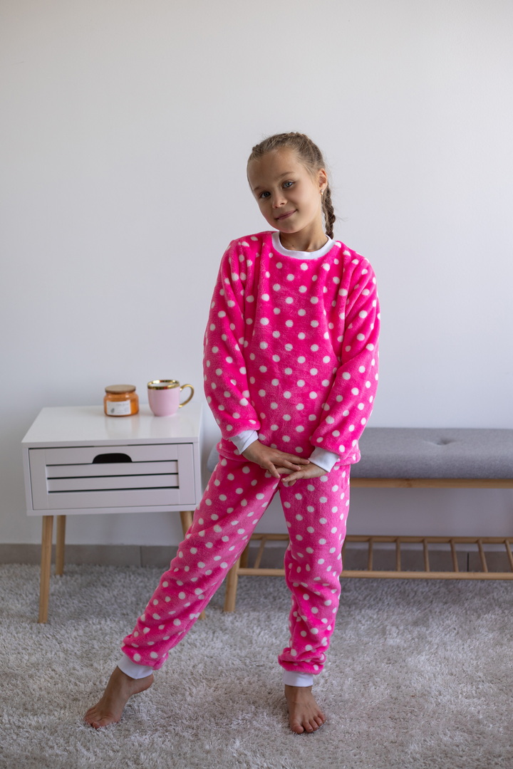 Дитяча тепла піжама, виготовлена з м'якого, ніжного полотна "Махра", складається з джемпера та штанів (рукава та низ штанів на еластичних манжетах для зручності у використанні). Теплий домашній одяг та одяг для сну часто виготовляють саме з махри через те, що така тканина гарно зберігає тепло в прохолодну пору року та дає можливість шкірі дихати - тому комфортний та здоровий сон вам забезпечений.