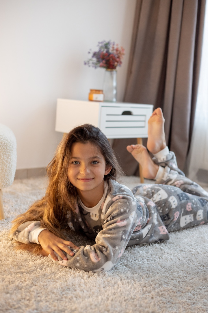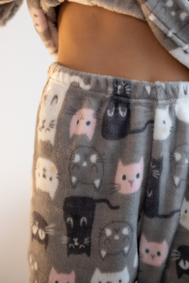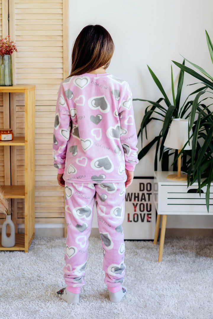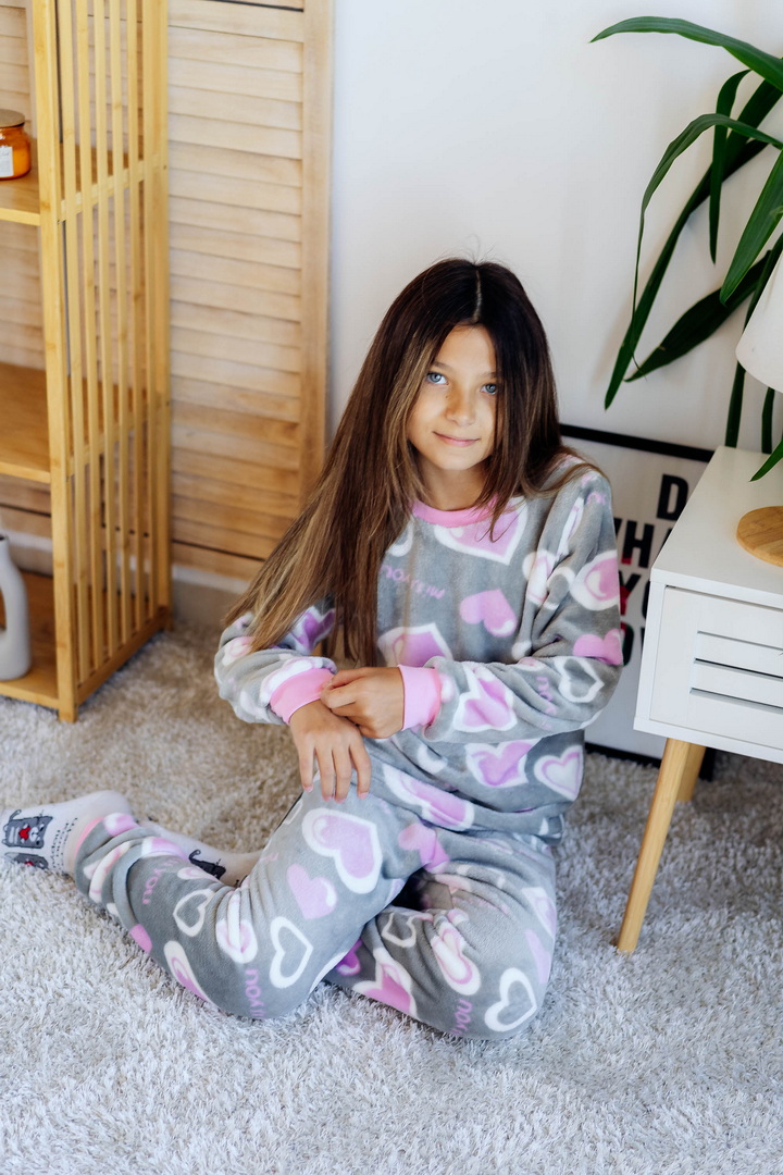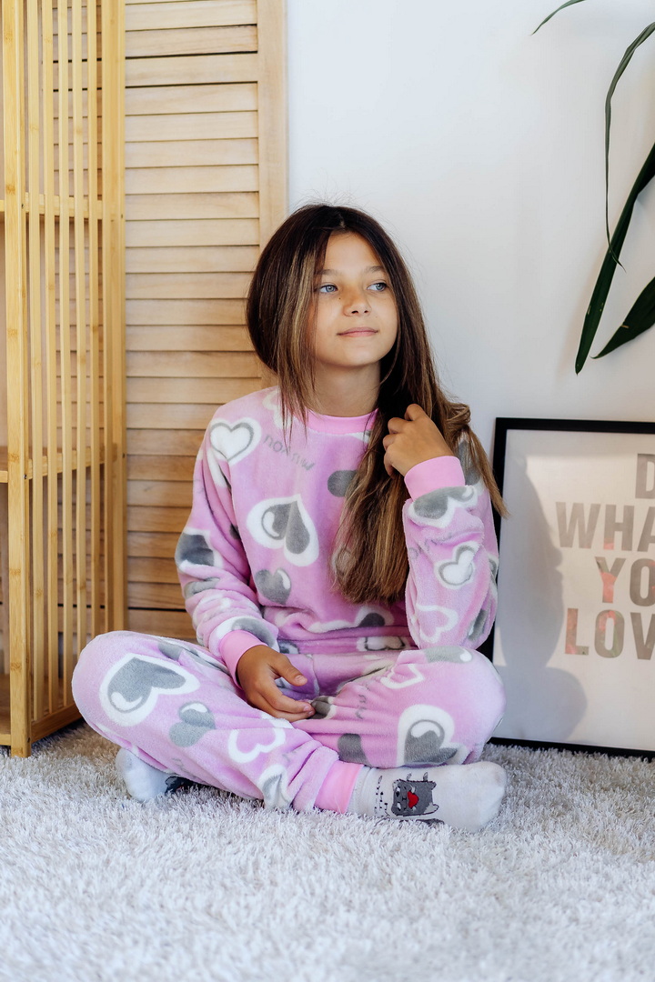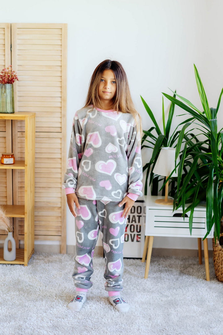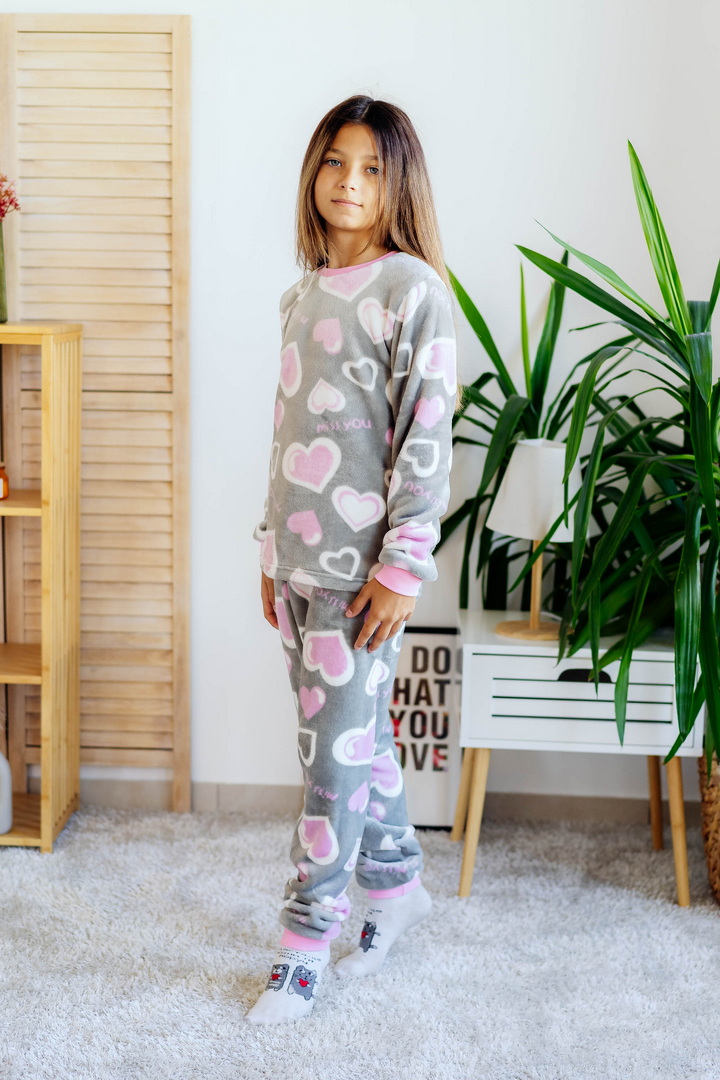 Затишна піжама для дівчаток-підлітків із м'якої махри – ідеальний вибір для холодного сезону. Піжама складається з джемпера та штанів (рукава та низ штанин на еластичних манжетах для зручності у використанні). Теплий домашній одяг та одяг для сну часто виготовляється саме з махри. Така тканина приємна до тіла, добре зберігає тепло в холодну пору року і дає шкірі можливість дихати – тому комфортний та здоровий сон вам забезпечений. Стильний та практичний варіант для дому, сну та відпочинку.