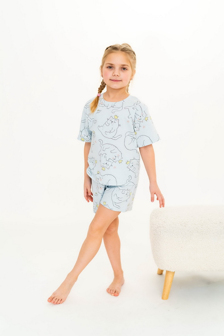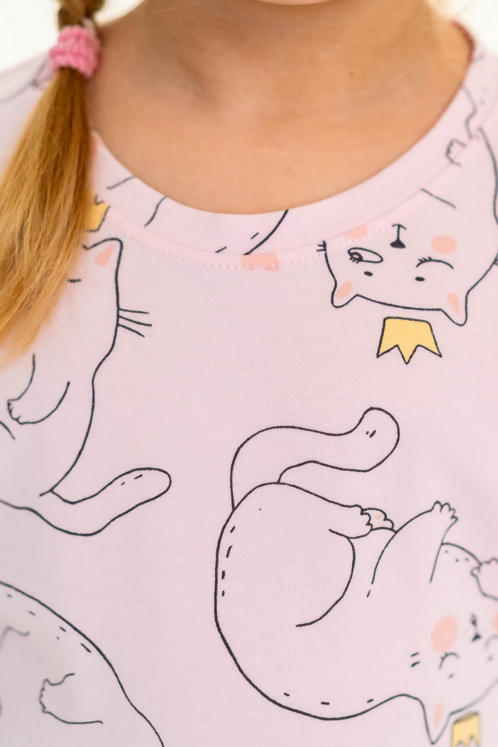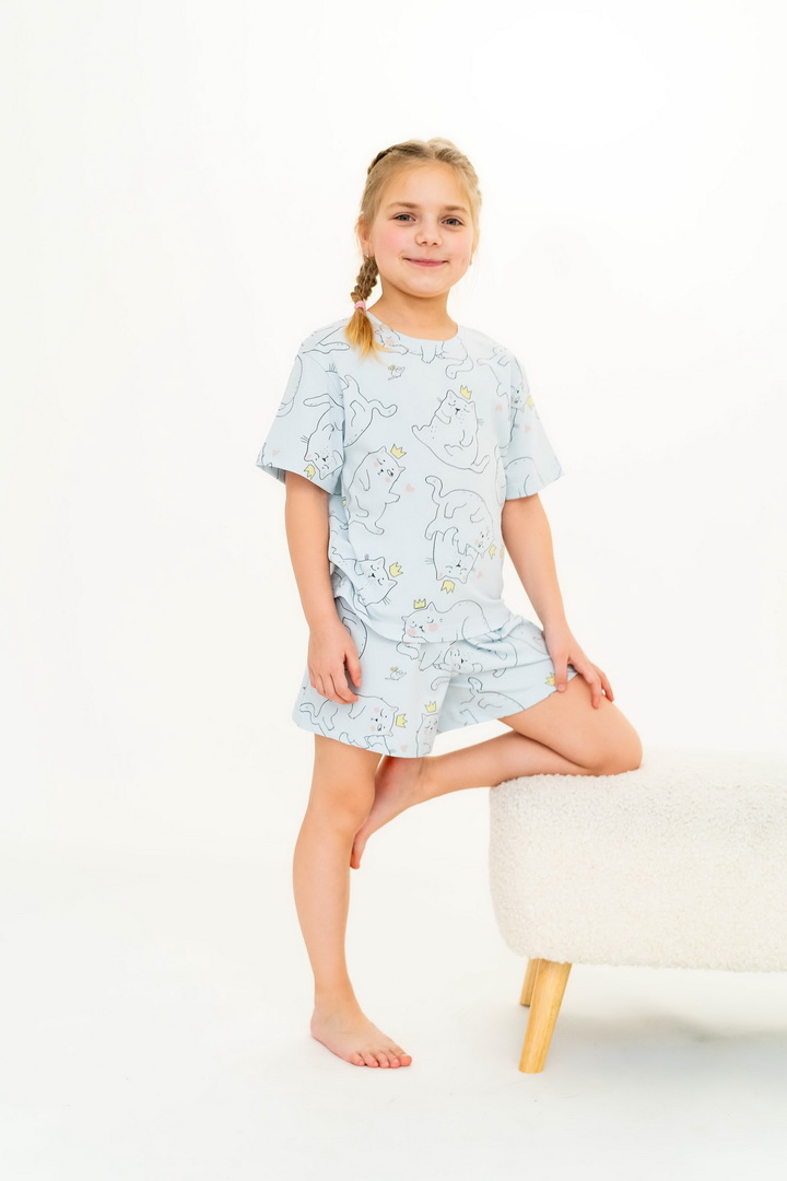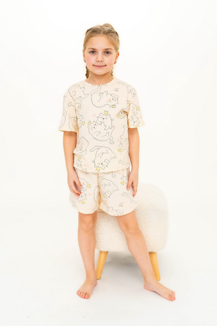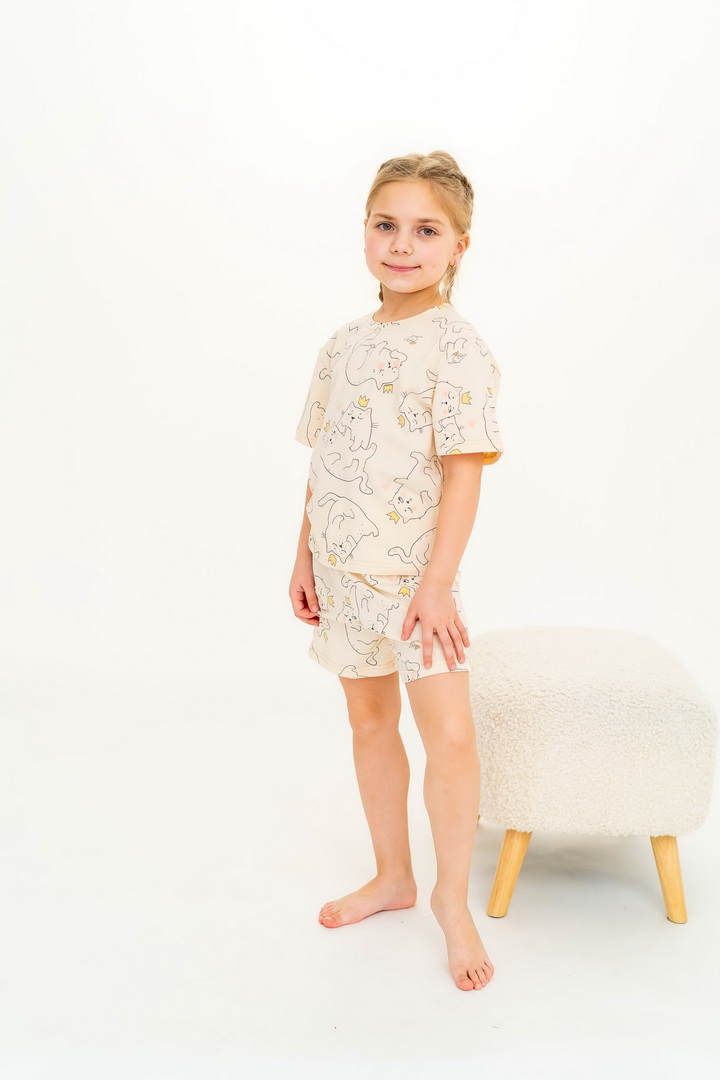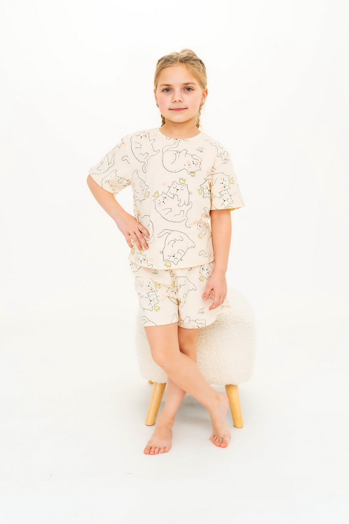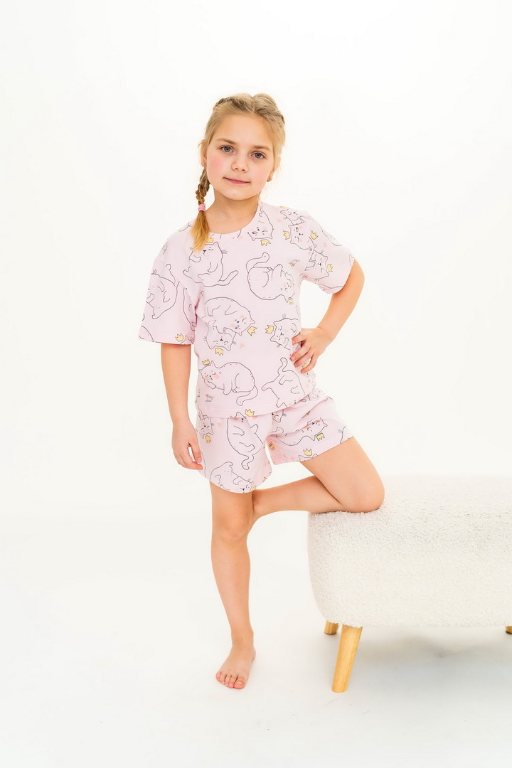 Ця піжама для дівчаток зі стрейч-куліру пеньє створена для тих моментів, коли дім наповнюється теплом, а вечір перетворюється на казку. Вона ніжно огортає тіло — дитина спить спокійно, а батьки впевнені у комфорті. Комплект складається з легкої футболки та зручних шортиків із м’якою посадкою. Тканина пеньє — це якісна бавовна з ідеально гладкою поверхнею, яка приємна навіть для найчутливішої шкіри. Завдяки еластану, піжама добре тягнеться та не втрачає форму. Ніжний, милий принт додає настрою та робить піжаму улюбленою річчю — саме тією, яку дитина хоче вдягати знову і знову. Лаконічний дизайн дозволяє носити комплект не лише для сну, а й для домашніх ігор чи ранкових обіймів. Також є можливість придбати схожу модель жіночої піжами для створення Family look.