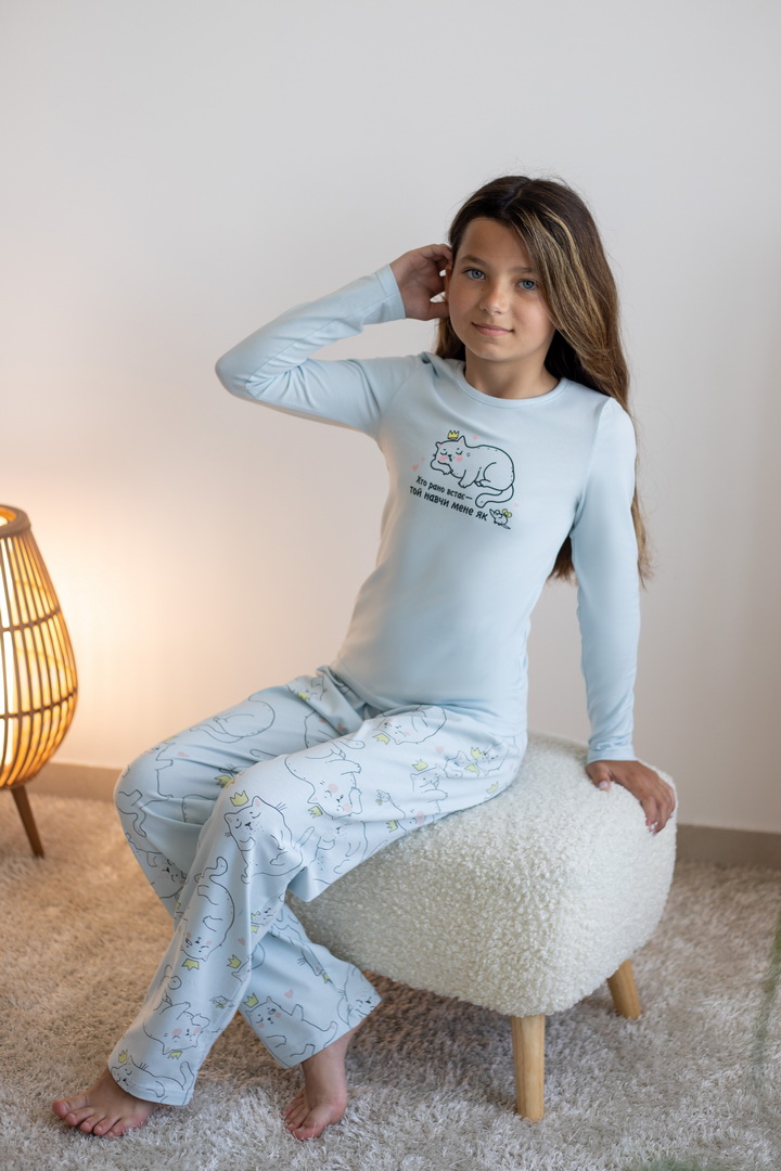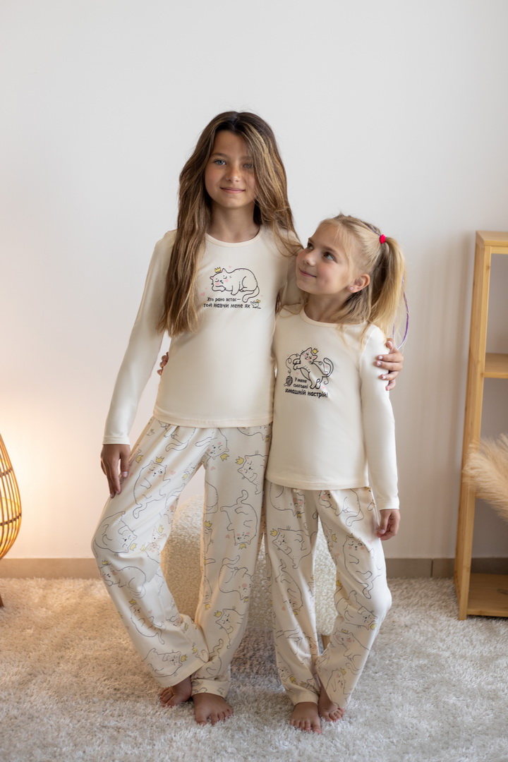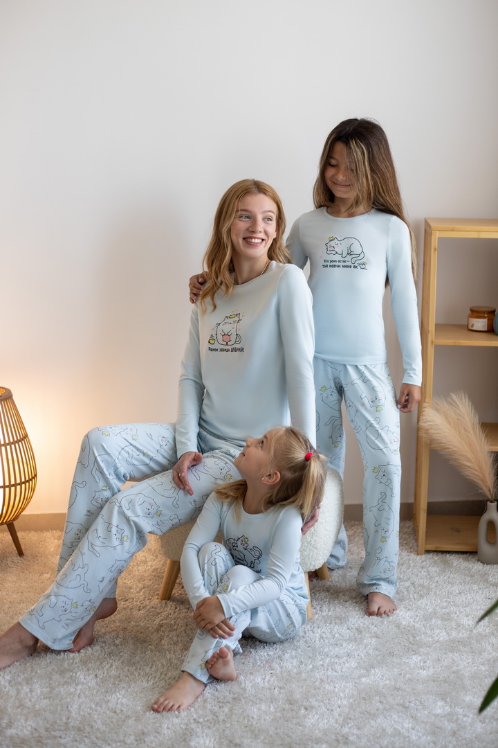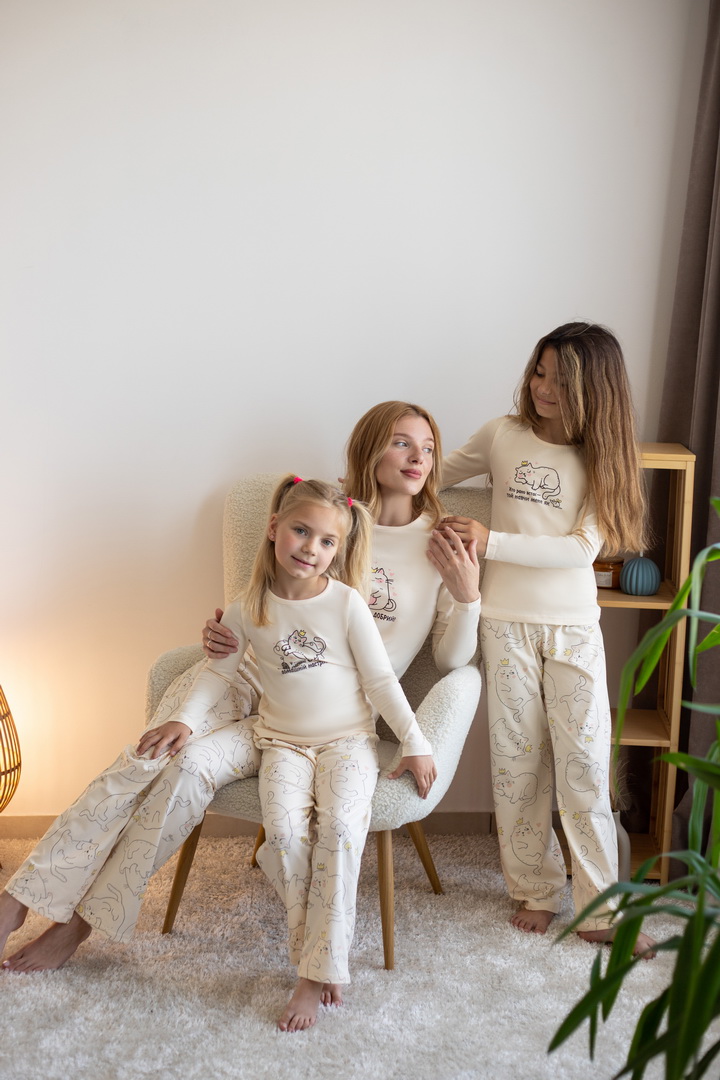 Комплект створений для тих моментів, коли дім наповнюється тишею та теплом. Він ніжно торкається шкіри та дарує дівчатам максимальний комфорт, завдяки стрейч-куліру пеньє — тканині преміум-класу з ідеально гладкою фактурою та природною еластичністю. Джемпер із витонченим, казковим принтом виглядає стильно й водночас затишно, а штани вільного крою з м’яким поясом не тиснуть і дозволяють рухатися легко та невимушено. Кожна деталь продумана так, щоб комплект не відчувався на тілі — лише комфорт і спокійний сон. Це вибір для дівчат, які цінують якість та естетику. Також є можливість придбати схожі моделі жіночих піжам для створення Family look.