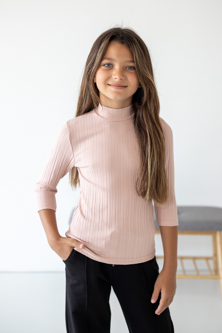 Блуза виконана з якісного трикотажного полотна "Стрейч кулір пенье в рубчик". Модна блузка з рукавом 3/4. Полотно приємне до тіла, добре тягнеться, відновлює форму в використанні та після прання. Одяг від українського виробника - це якість натуральних матеріалів, якість швів, комфорт, міцність і довговічність.