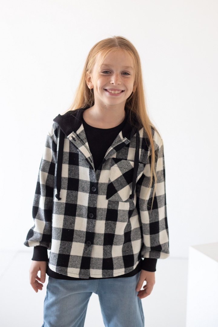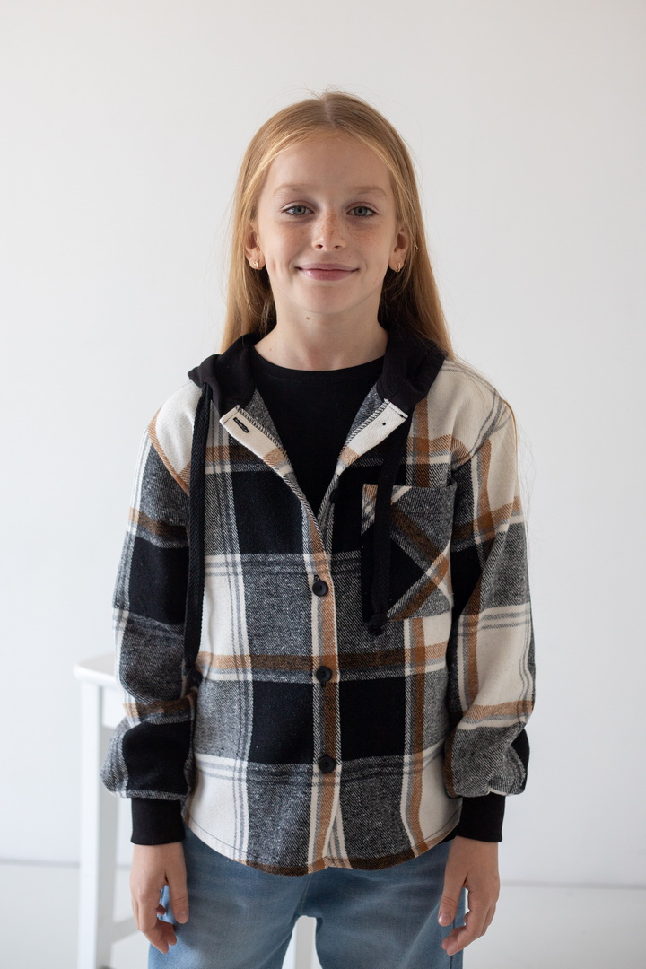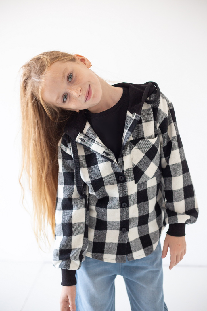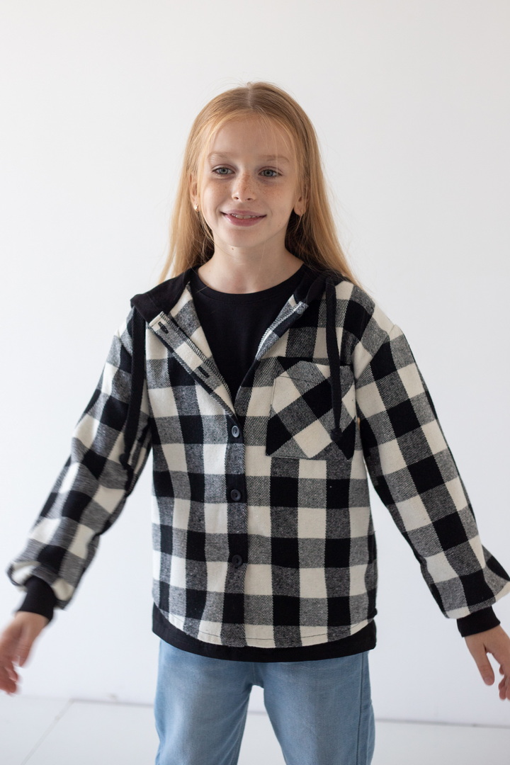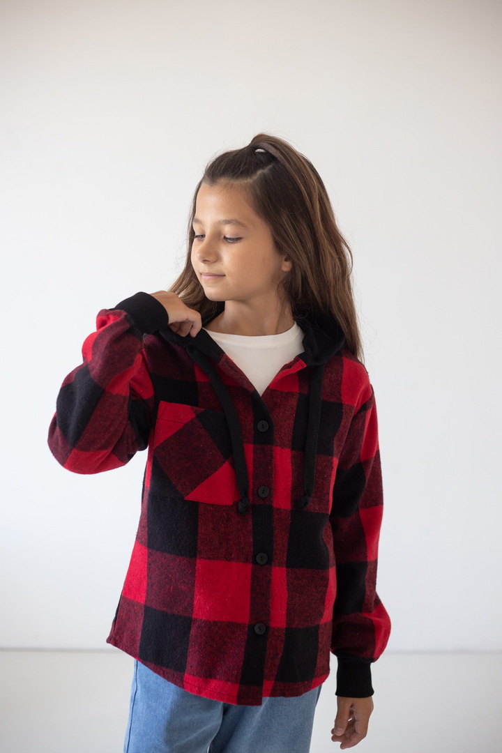 Ультрамодний хіт цього сезону - сорочка з теплої картатої байки супер якості для підлітків. Модель вільного крою з довгими рукавами, стильним контрастним капюшоном зі шнурками, застібкою на гудзики і манжетами з еластичного матеріалу по низу рукавів. Доповнити образ рекомендується футболкою або топом, стильними джинсами, об'ємними кросівками або черевиками на шнурівці. Тканина преміум якості, дуже щільна і тепла.