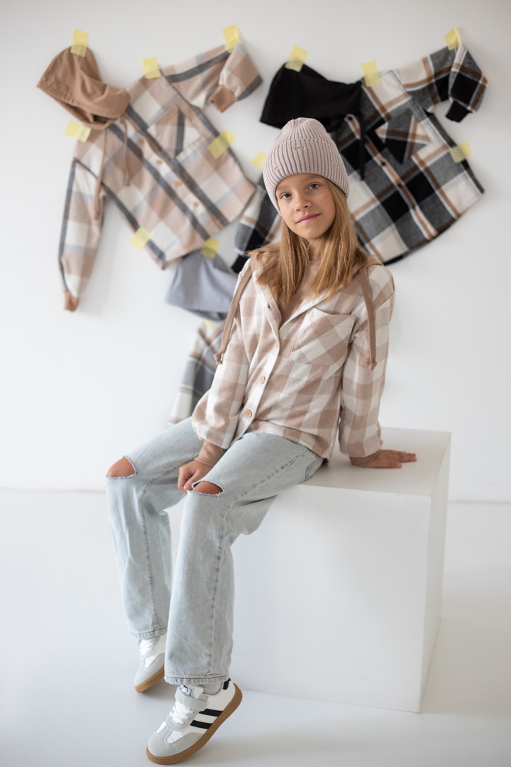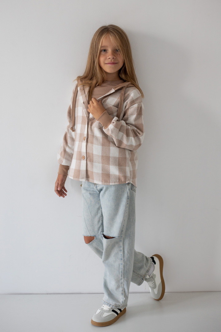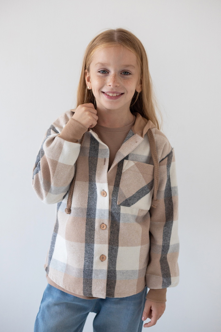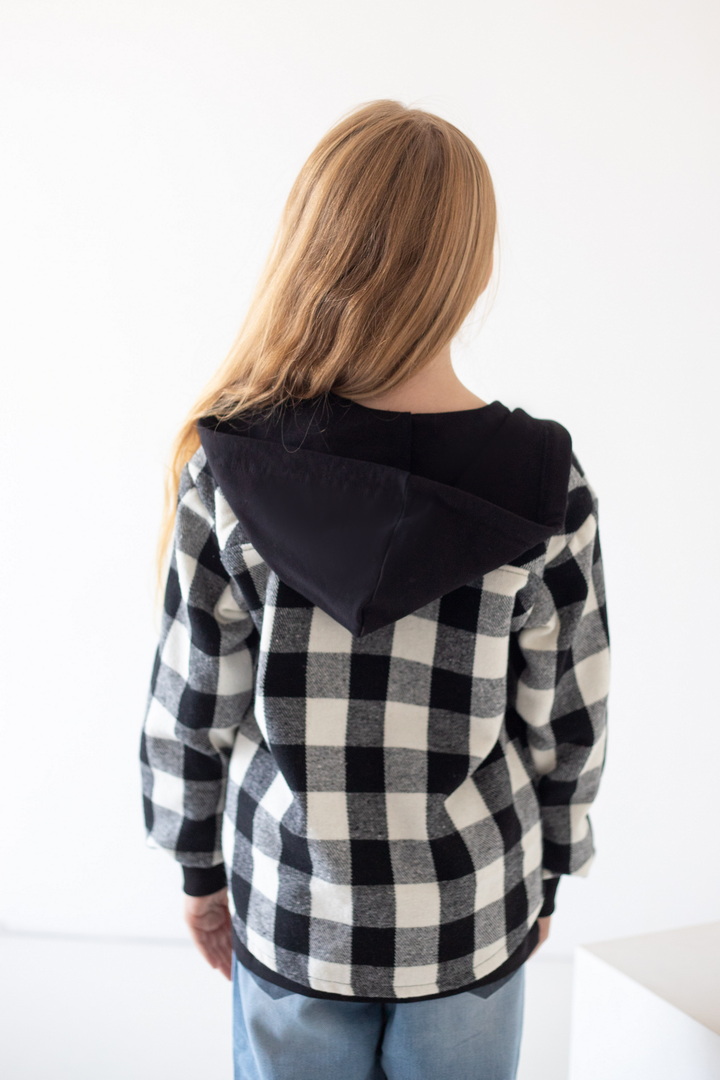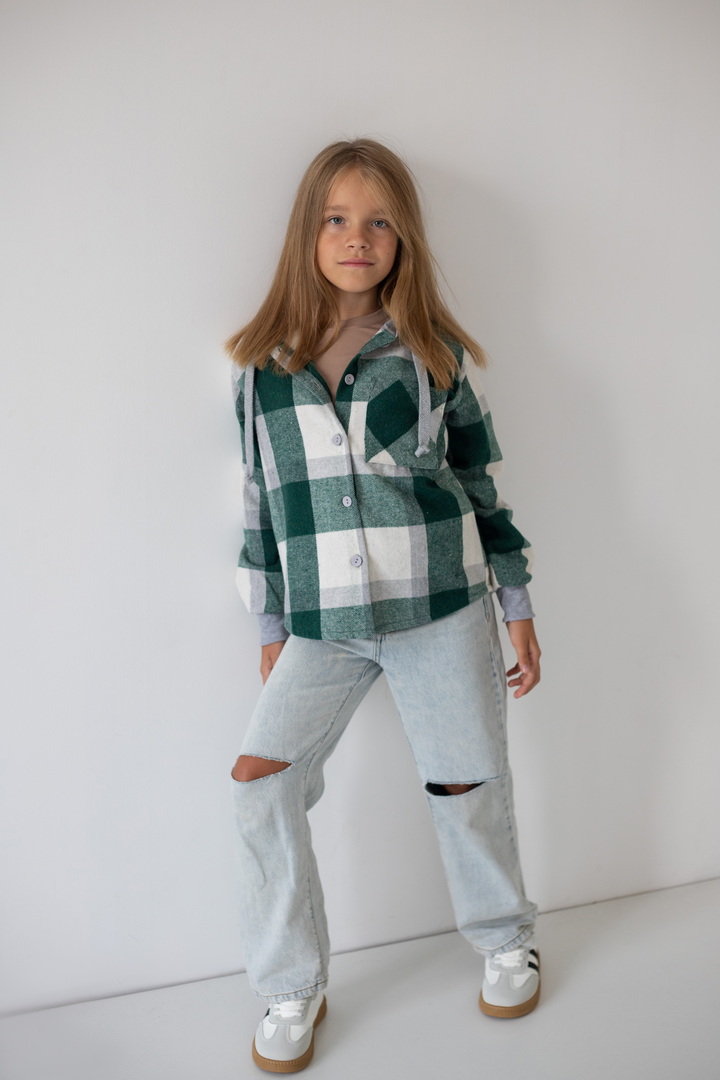 Ультрамодний хіт цього сезону - сорочка з теплої картатої байки супер якості для підлітків. Модель вільного крою з довгими рукавами, стильним контрастним капюшоном зі шнурками, застібкою на гудзики і манжетами з еластичного матеріалу по низу рукавів. Доповнити образ рекомендується футболкою або топом, стильними джинсами, об'ємними кросівками або черевиками на шнурівці. Тканина преміум якості, дуже щільна і тепла.