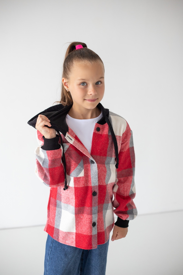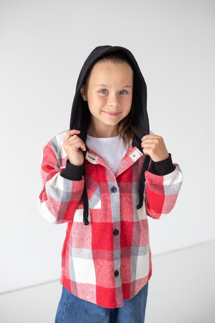 Ультрамодний хіт цього сезону - сорочка з теплої картатої байки супер якості. Модель вільного крою з довгими рукавами, стильним контрастним капюшоном зі шнурками, застібкою на гудзики і манжетами з еластичного матеріалу по низу рукавів. Доповнити образ рекомендується футболкою або топом, стильними джинсами, об'ємними кросівками або черевиками на шнурівці. Тканина преміум якості, дуже щільна і тепла.