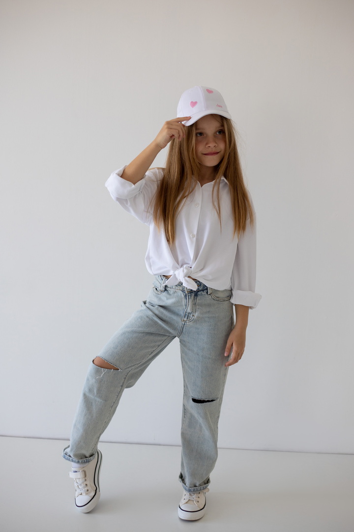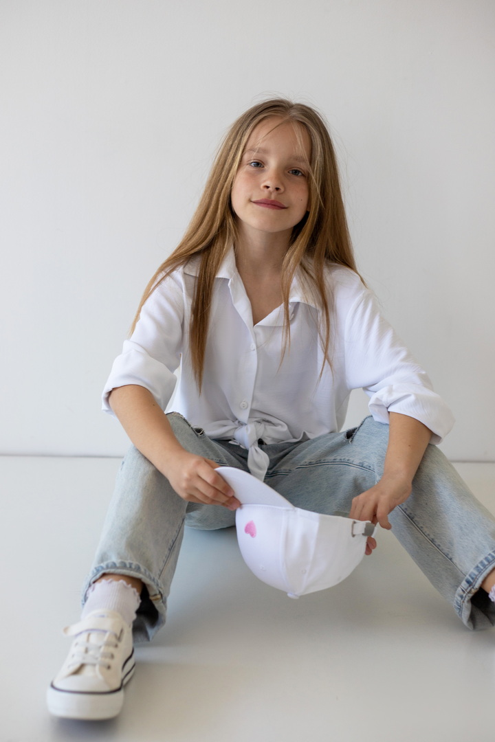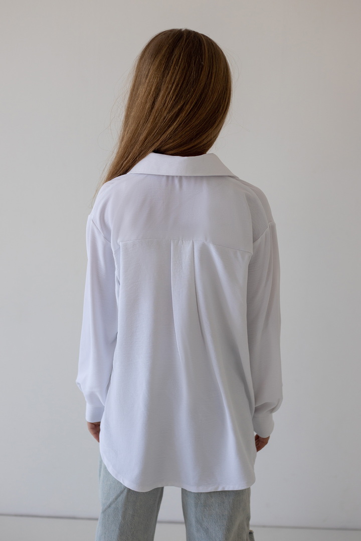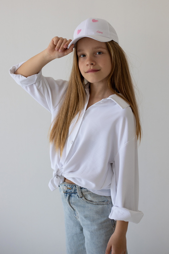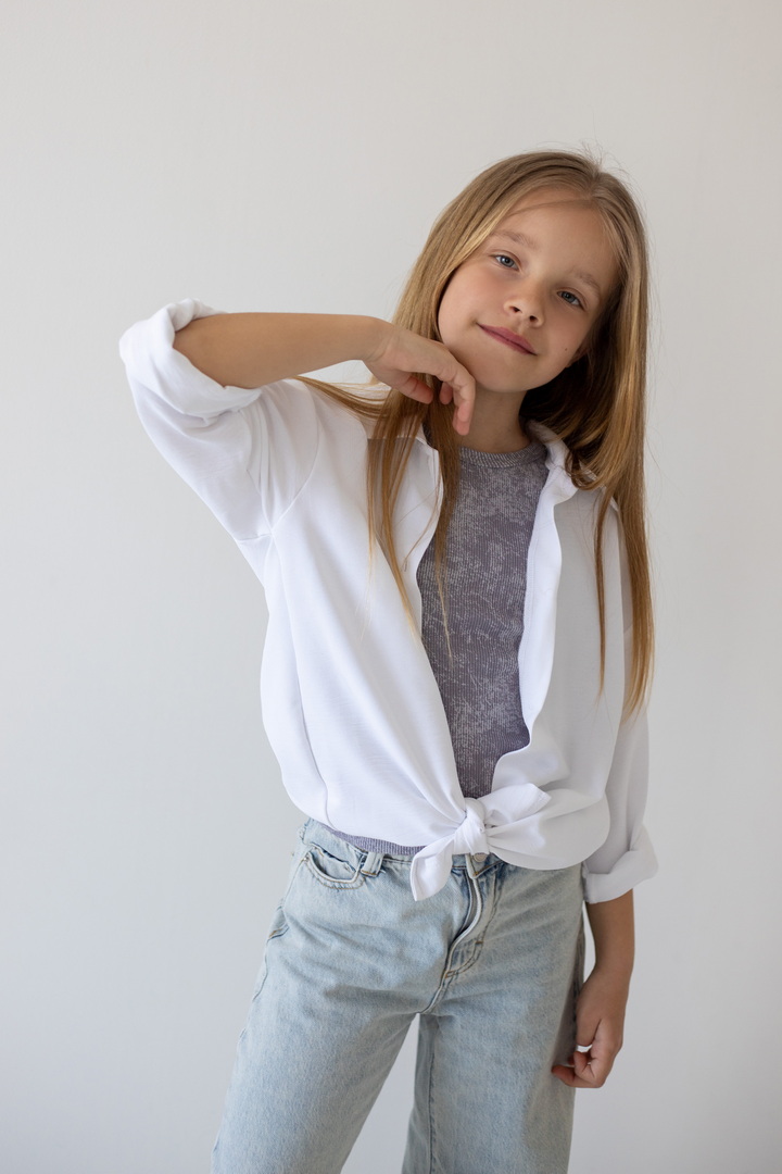 Стильна сорочка для дівчат, виконана з легкого, повітрянного полотна "Американський креп". Сорочка застібається на гудзики. Така сорочка дуже актуальна цього літа, її легко поєднувати з будь-яким взуттям - кросівки, босоніжки, лофери. Щоб довершити образ, можна одягнути під розстібнуту сорочку однотонну майку, футболку або топ, та поєднати з брюками, спідницею та джинсами.