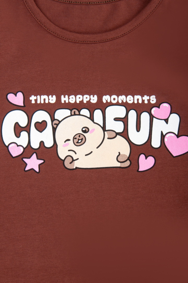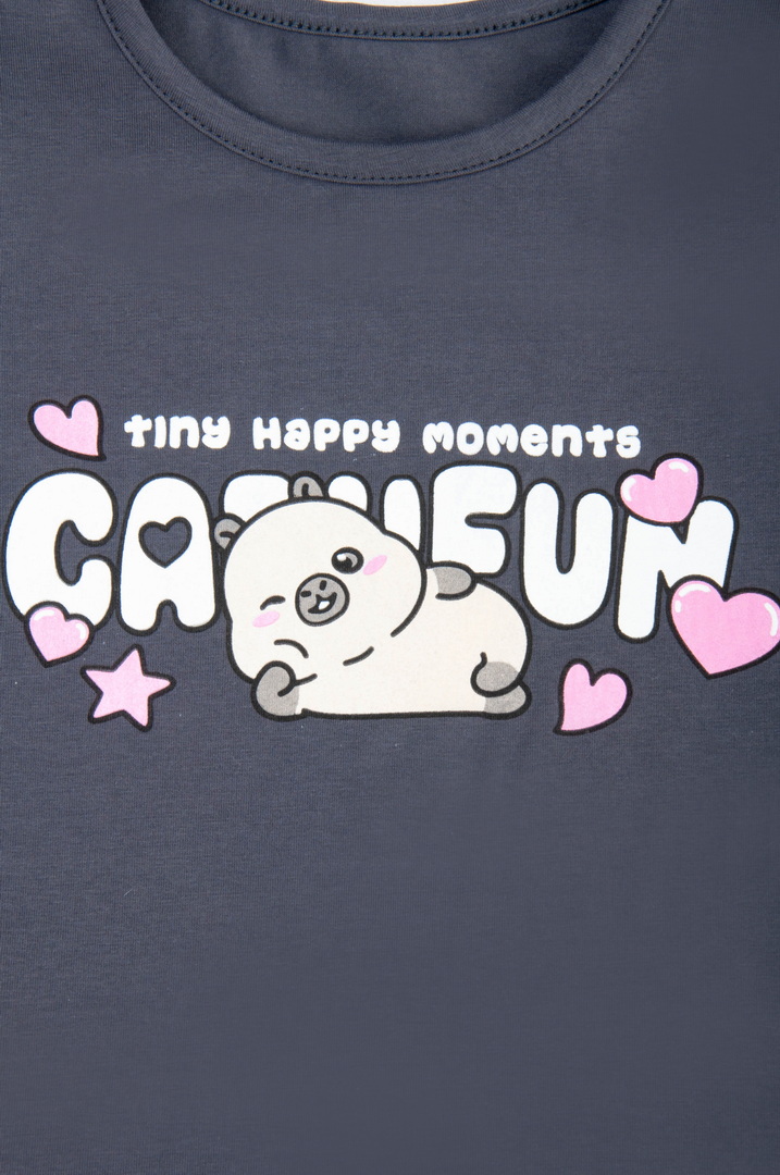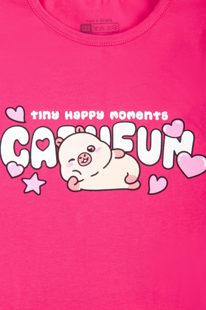 Рекомендації по догляду: прати при температурі не більше 30°C, принт прасувати тільки по вивороту.