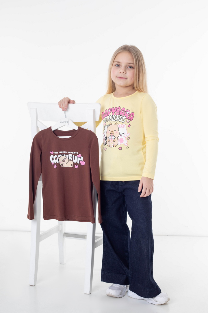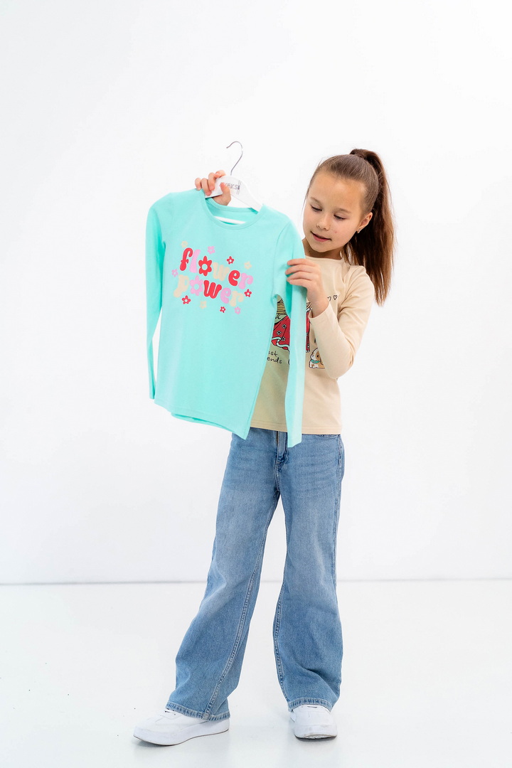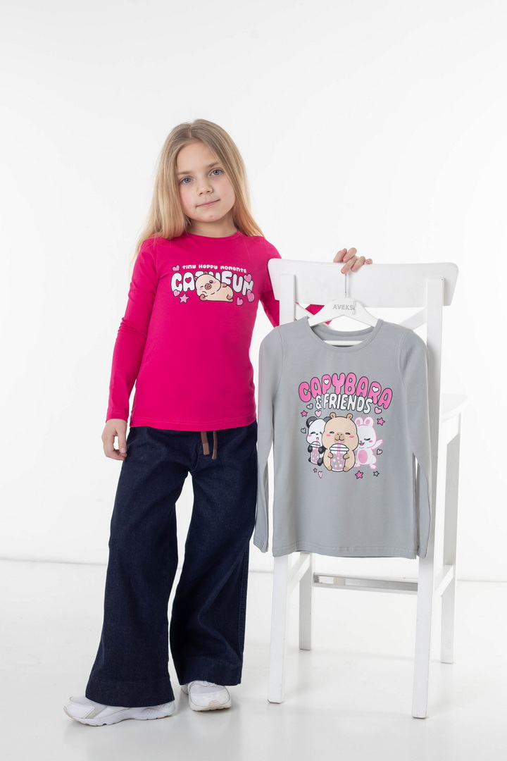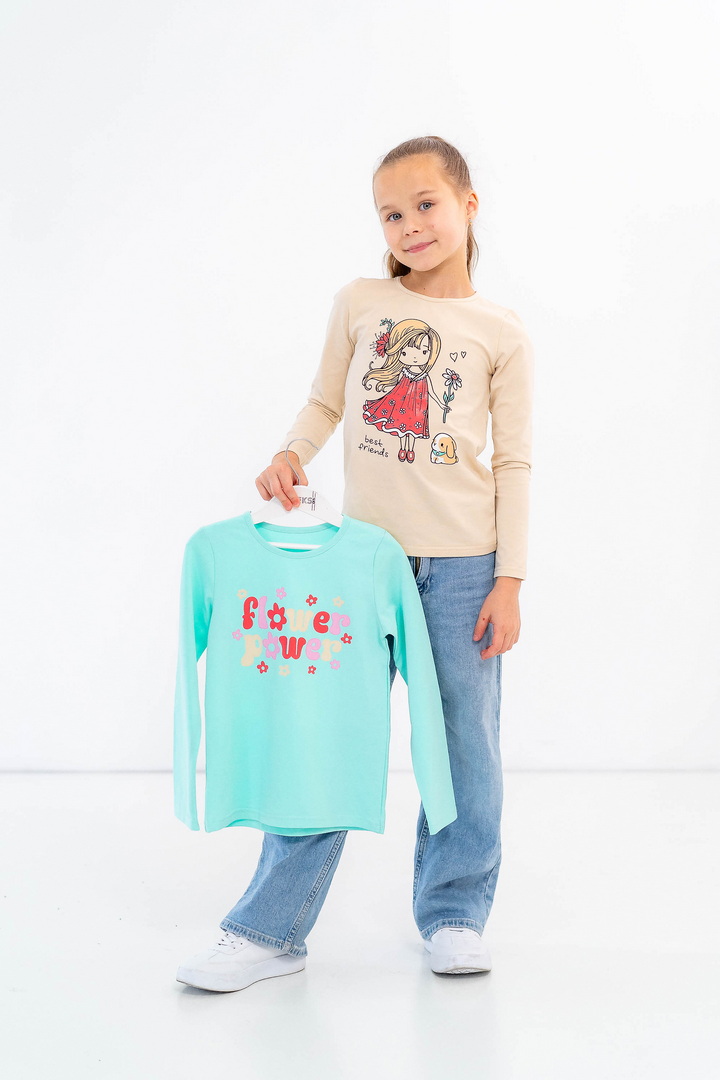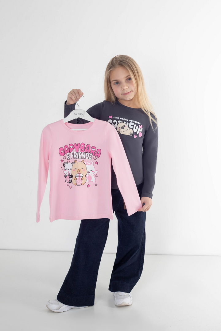 Комплект лонгслівів для дівчаток — щоденний комфорт, який не набридає. Два лонгсліви легко підлаштовуються під ритм дитини: зранку — у садочок чи школу, після обіду — на прогулянку, ввечері — для спокійного відпочинку вдома. Трикотаж зі стрейч-куліру пеньє відчувається ніжно з першого дотику. Він не парить, м’яко прилягає до тіла й дозволяє рухатися вільно — без перекручувань, заломів і дискомфорту. Продумані принти додають характеру кожному лонгсліву, тож дитина може обирати настрій свого образу щодня. Це саме ті речі, які стають «улюбленими» — їх хочеться вдягати знову. Комплект стане зручним рішенням для батьків і приємним доповненням дитячого гардероба — практичним, стильним і зручним.