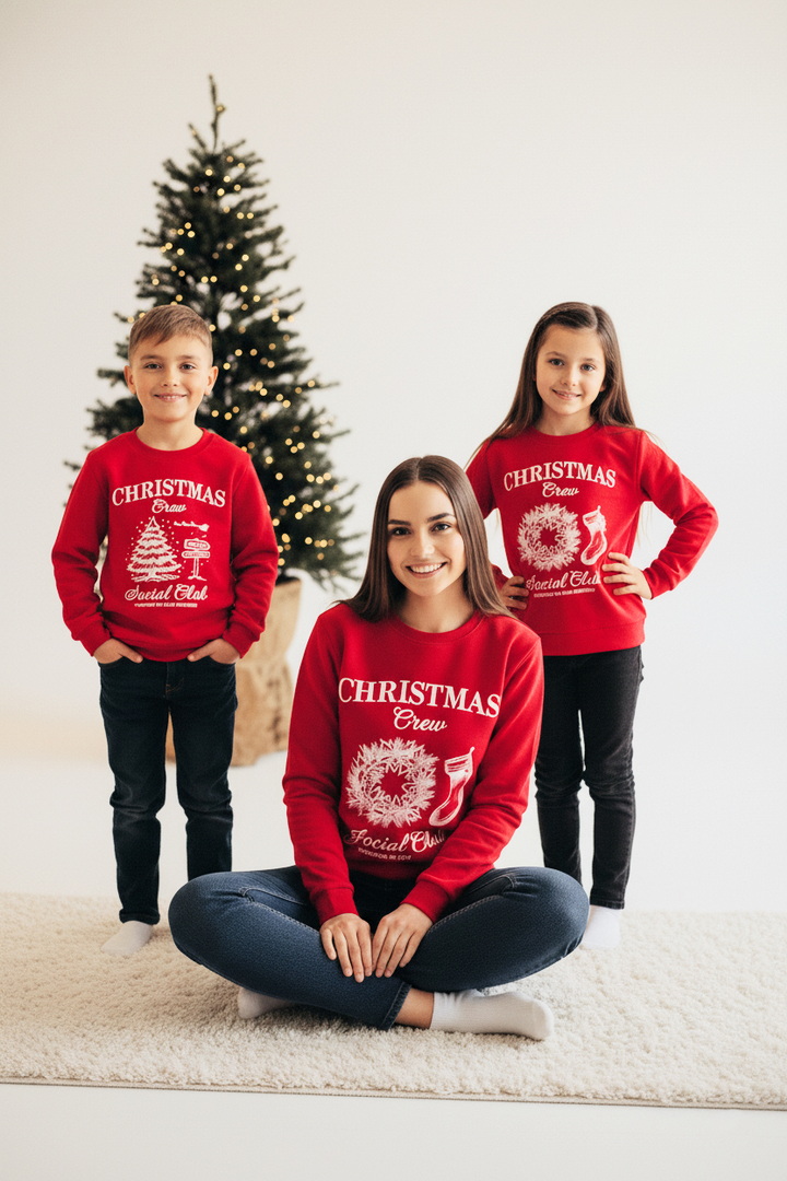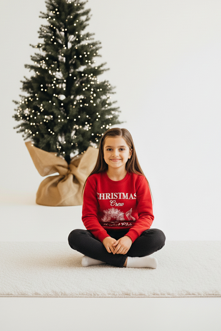Світшот для дівчаток вільного крою, виконаний із високоякісного футера з начосом, який створений для максимального комфорту та тепла. М’яка внутрішня поверхня приємно гріє, роблячи модель ідеальною для холодної пори року. Світшот має довгі рукава з еластичними манжетами, що забезпечують зручну посадку та зберігають форму. Комір-стійка з еластичного матеріалу додає виробу акуратного вигляду. Низ виробу також оформлений широким манжетом, що створює охайний силует і підкреслює стиль моделі. На передній частині виробу розміщений яскравий новорічний принт, нанесений методом шовкотрафаретного друку. Малюнок вирізняється чіткістю ліній та високою стійкістю до прання, що дозволяє зберігати насиченість. Світшот вдало поєднує класичний крій із святковим настроєм, що робить його чудовим вибором як для повсякденних образів, так і для створення новорічних луків. Можна створити образ family look із моделями 1133, 2461, 2462.