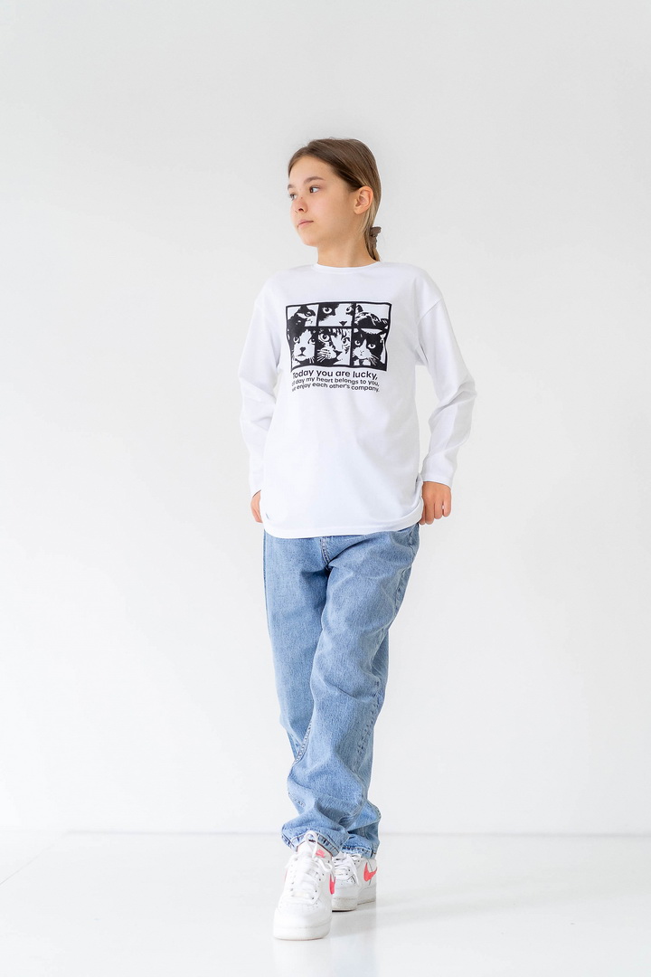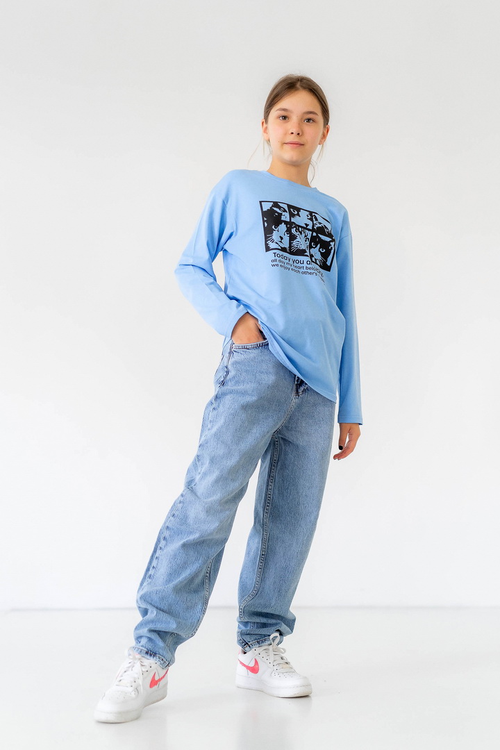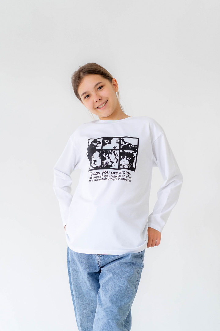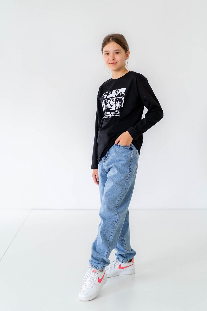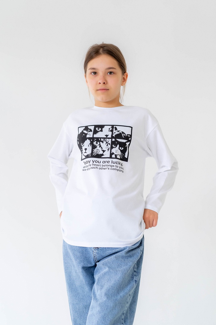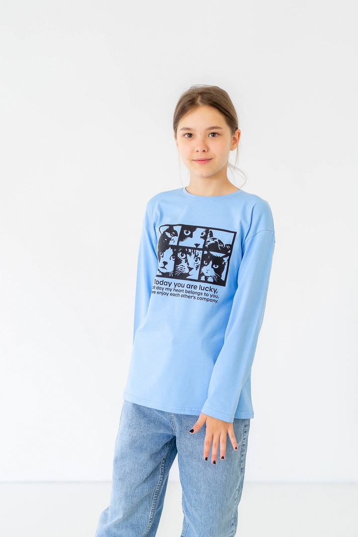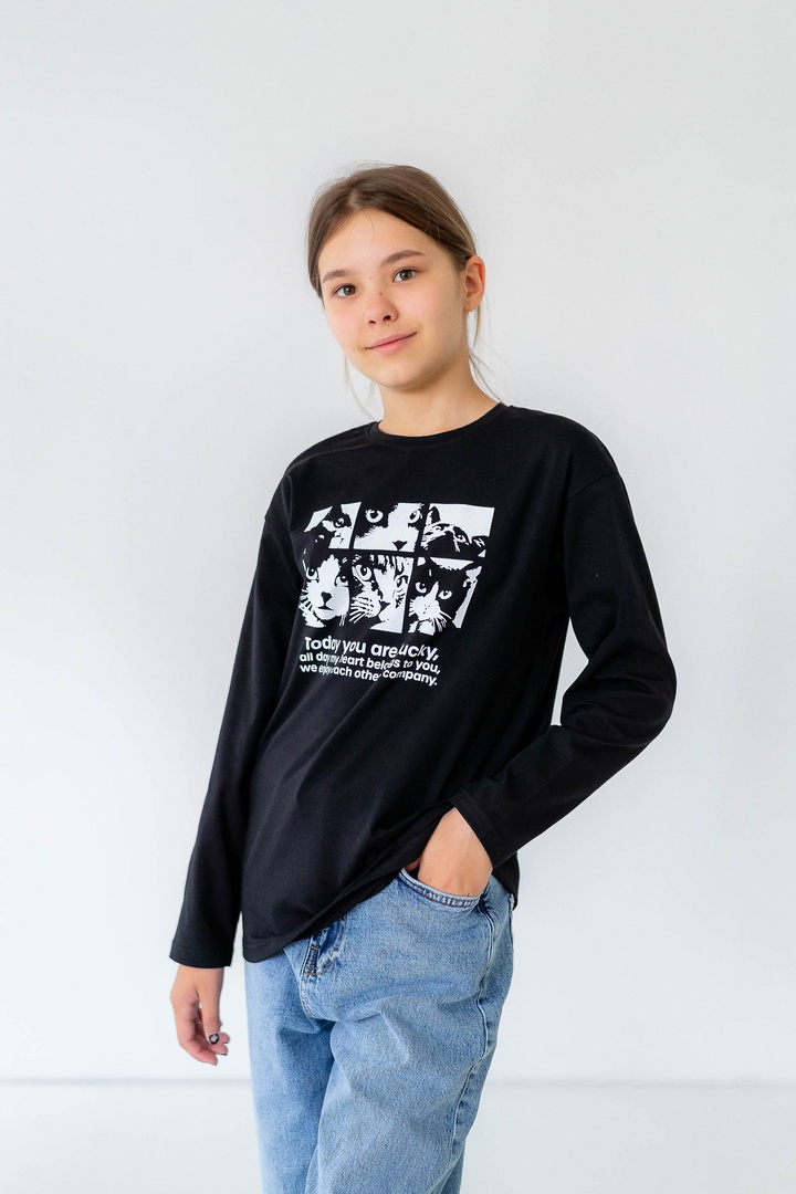 Лонгслів для дівчат - лонгслів (англ. — long — довгий, sleeve — рукав) — футболка з довгим рукавом, такі речі виготовляються з тонкої трикотажної тканини і мають округлий виріз під горло. Дана модель виготовлена з полотна "Стрейч-кулір піньє" - тканина легка та приємна на дотик. Таку річ можна комбінувати з будь-якими брюками, джинсами, спідницями.