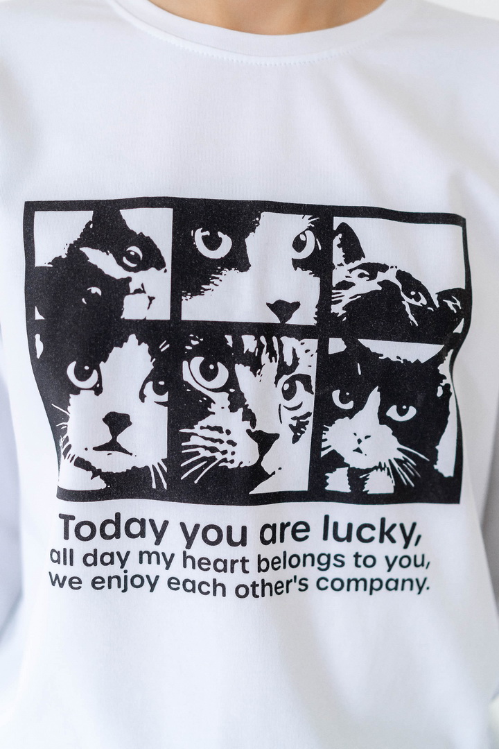 Рекомендації з догляду: прати при температурі не більше 30°C, принт прасувати тільки по виворотній стороні.