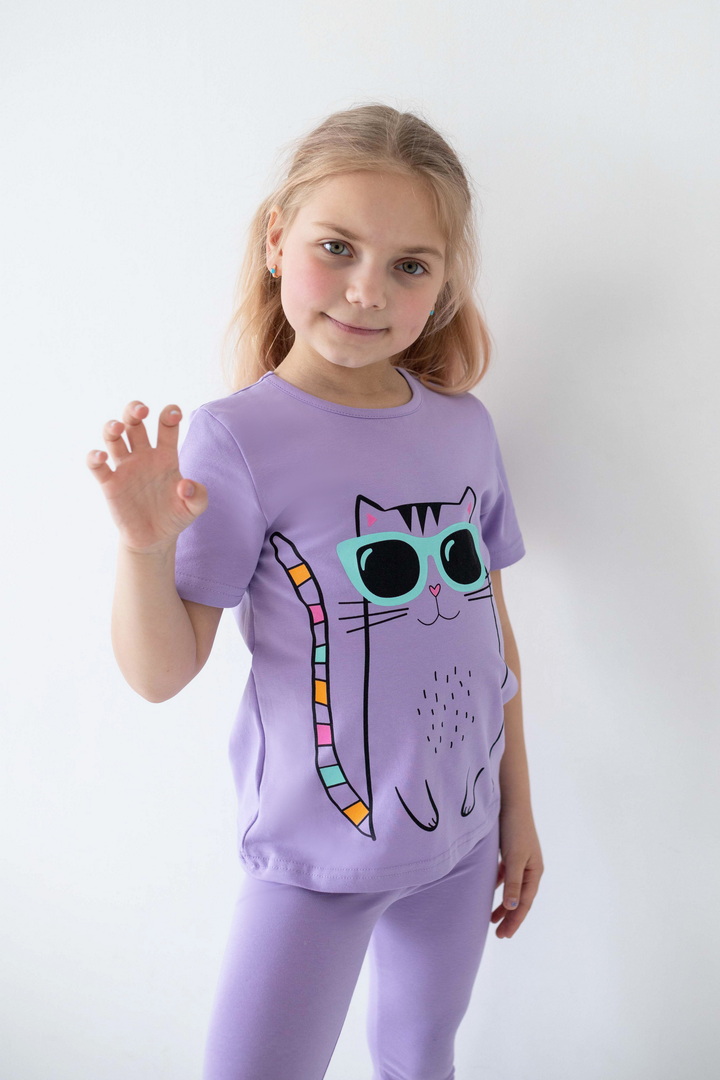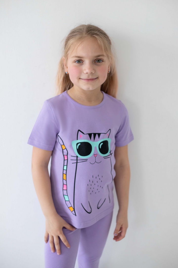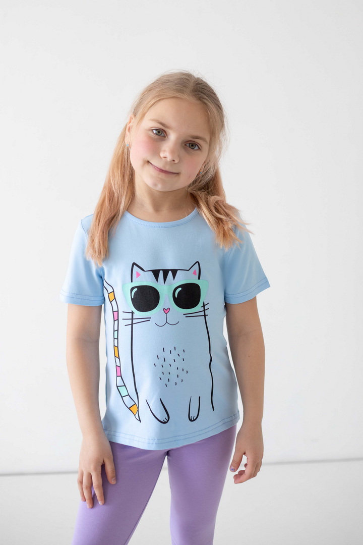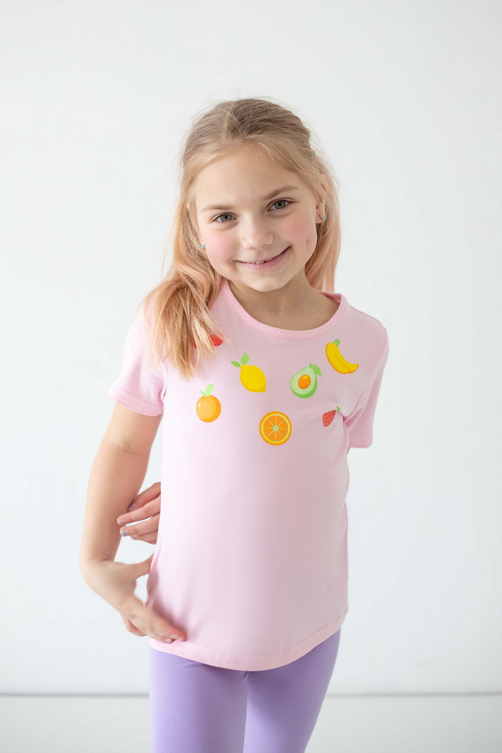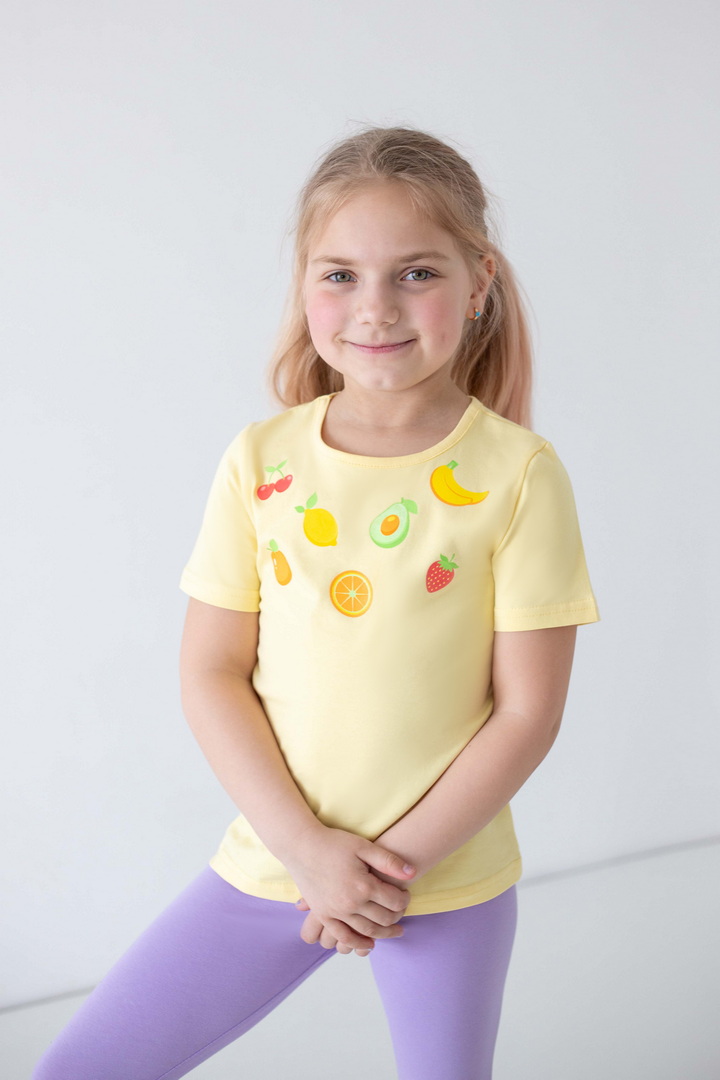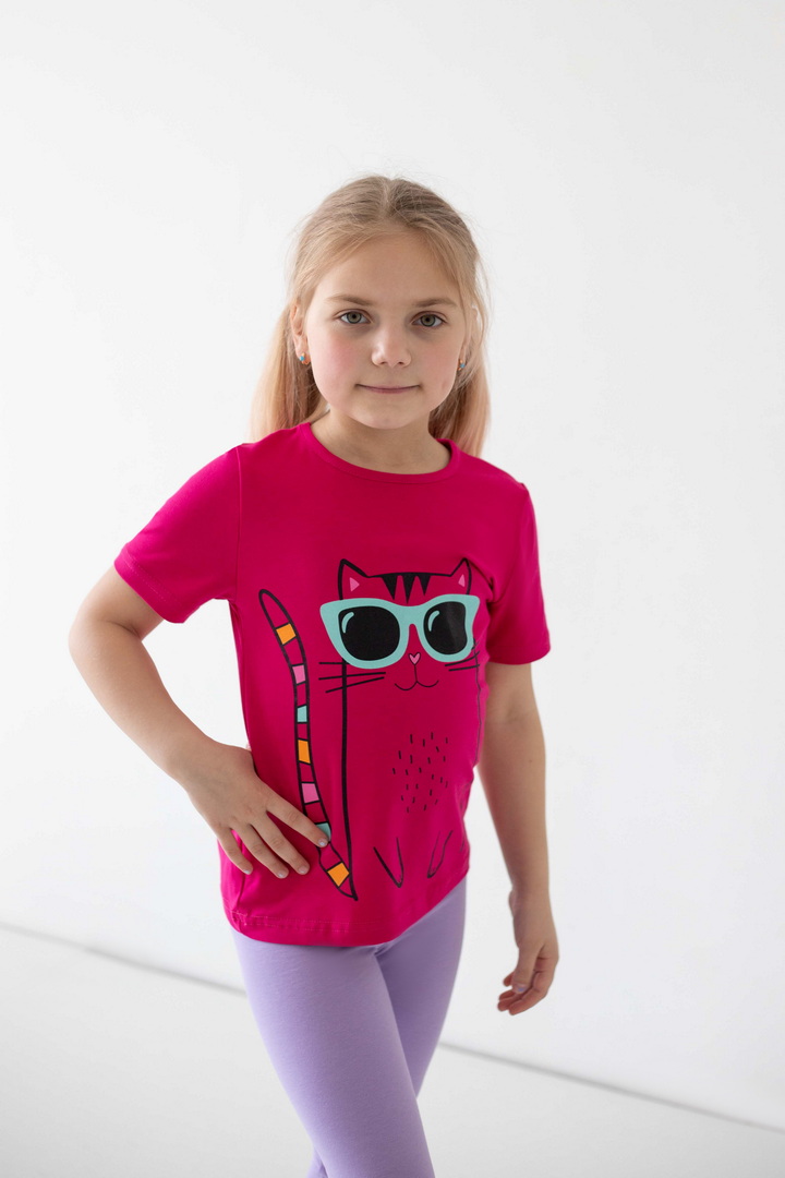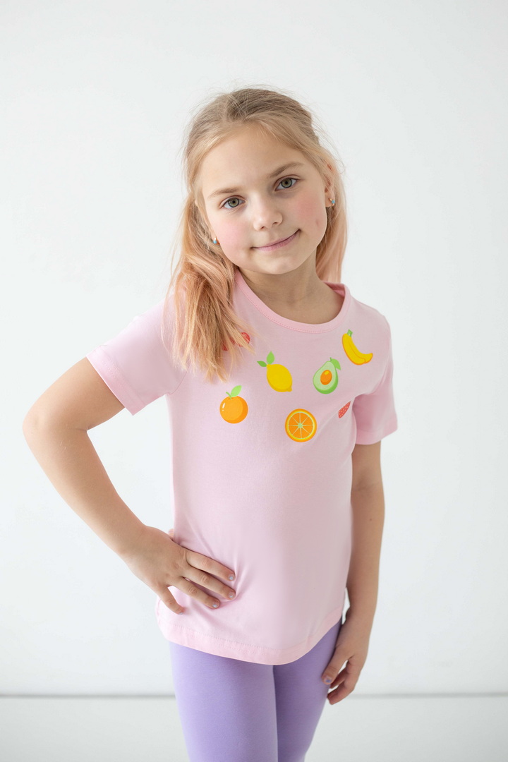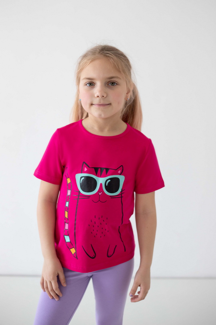 Ця футболка створена для моментів радості, руху та щирих усмішок. Вона ідеально доповнює активні будні маленької модниці, даруючи відчуття легкості та комфорту протягом усього дня. Матеріал — стрейч-кулір пеньє якісний, ніжний до шкіри, приємний на дотик і достатньо еластичний, щоб дитина почувалася вільно. Сучасні, трендові принти додають образу настрою та індивідуальності і виглядають яскраво та акуратно, не втрачаючи свого вигляду з часом. Продуманий крій забезпечує ідеальну посадку без тиску чи дискомфорту. Це саме та річ, яка швидко стає улюбленою і завжди доречна — вдома, на прогулянці чи в дорозі. Це більше, ніж базовий одяг — це відчуття турботи, стилю та свободи щодня.