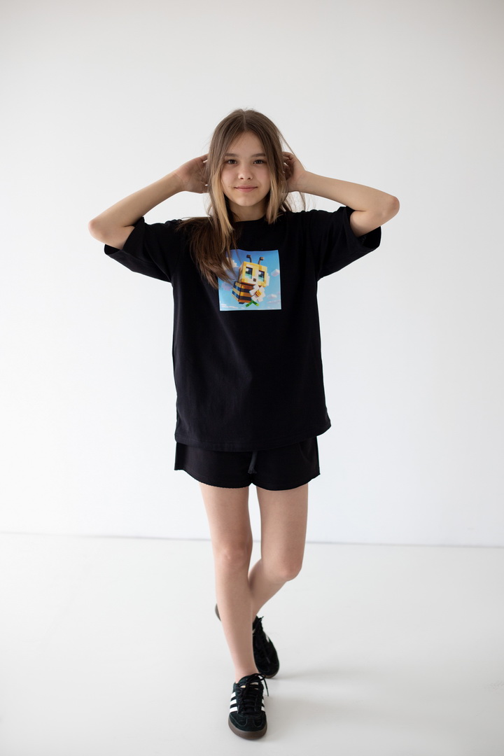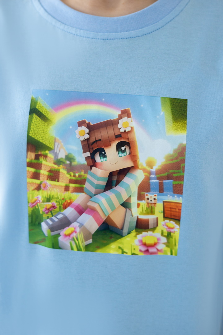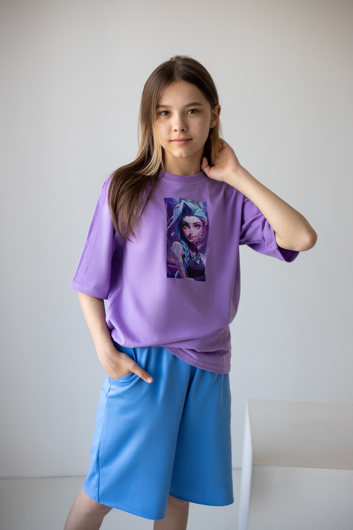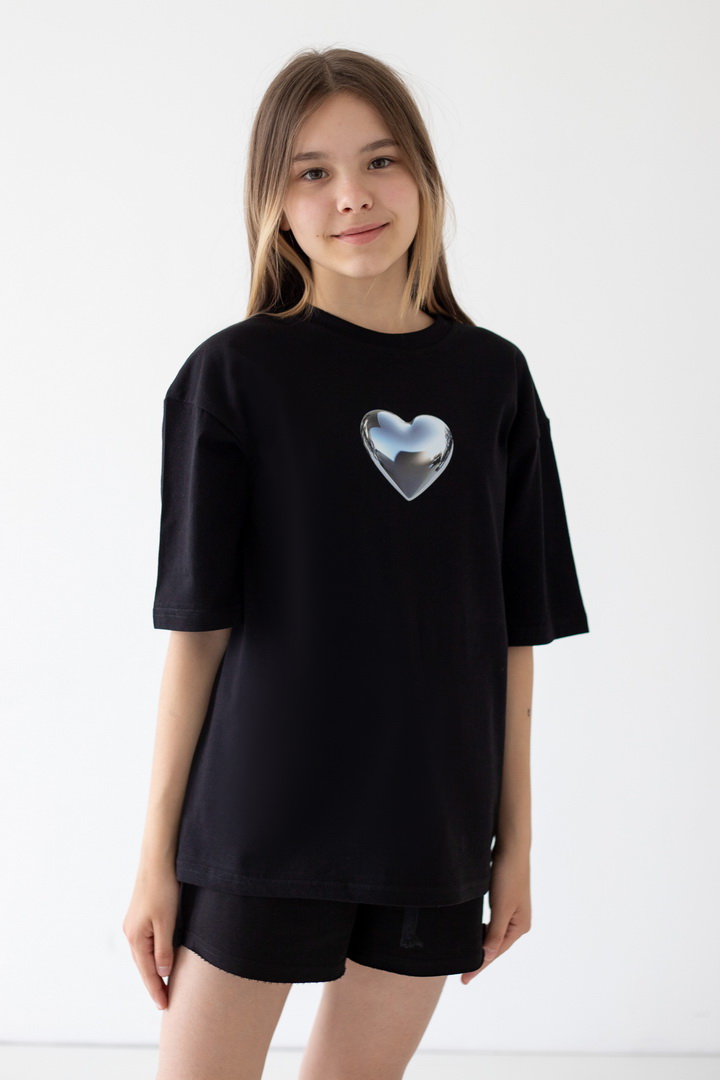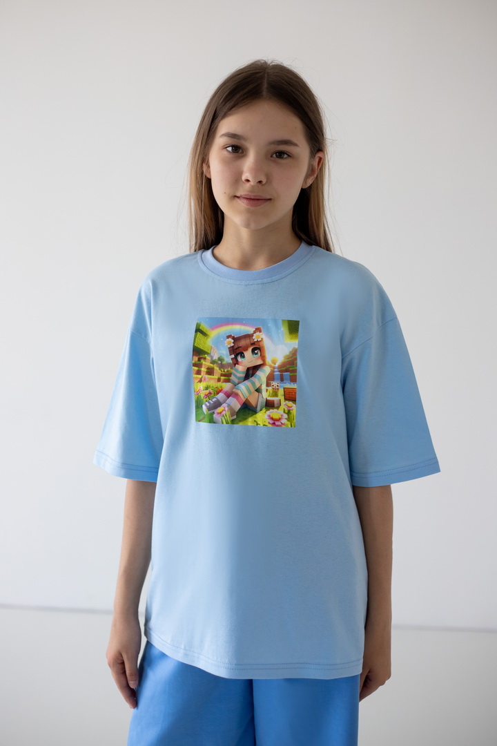 Базова футболка з куліру для дівчат-підлітків. Модель з короткими рукавами і округлим вирізом, по переду розташований малюнок надрукований DTF-принтером. Футболка універсальна, доповнити образ можна джинсами, однотонними або принтованими шортами. Полотно хорошої якості, натуральне за складом, після прання може давати усадку.