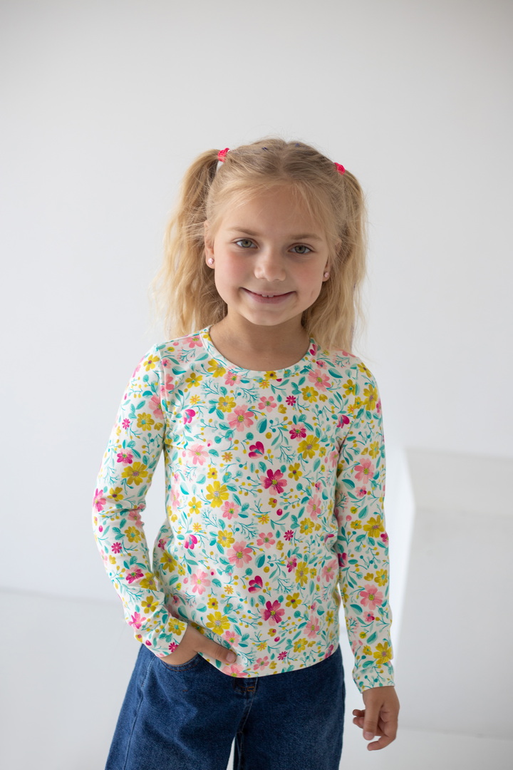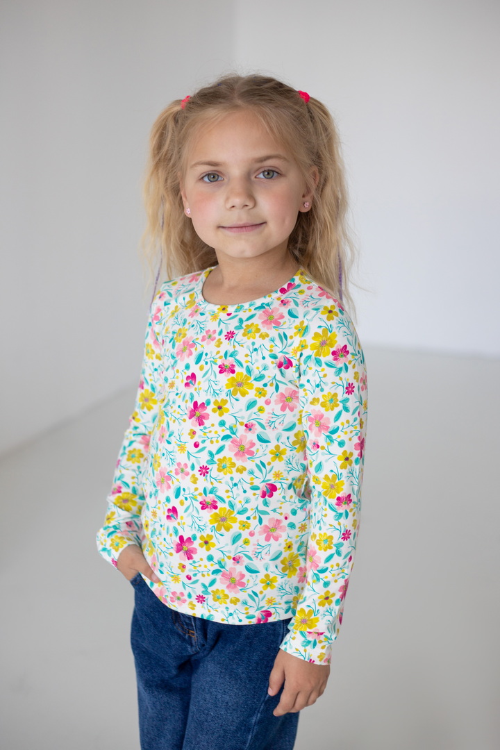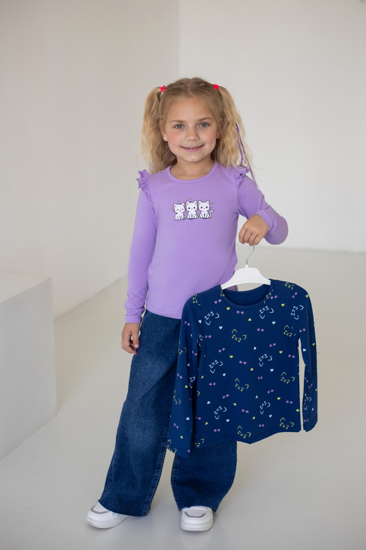 Мульти-набір футболок з довгими рукавами для дівчаток стане прекрасним доповненням до гардеробу юних модниць. Футболки з легкого натурального стрейч-куліру пеньє. Полотно легке, натуральне за складом - відмінний варіант для спекотного літа. Може давати усадку після прання. Футболки універсальні, носити можна з джинсами, брюками, під будь-яке взуття.