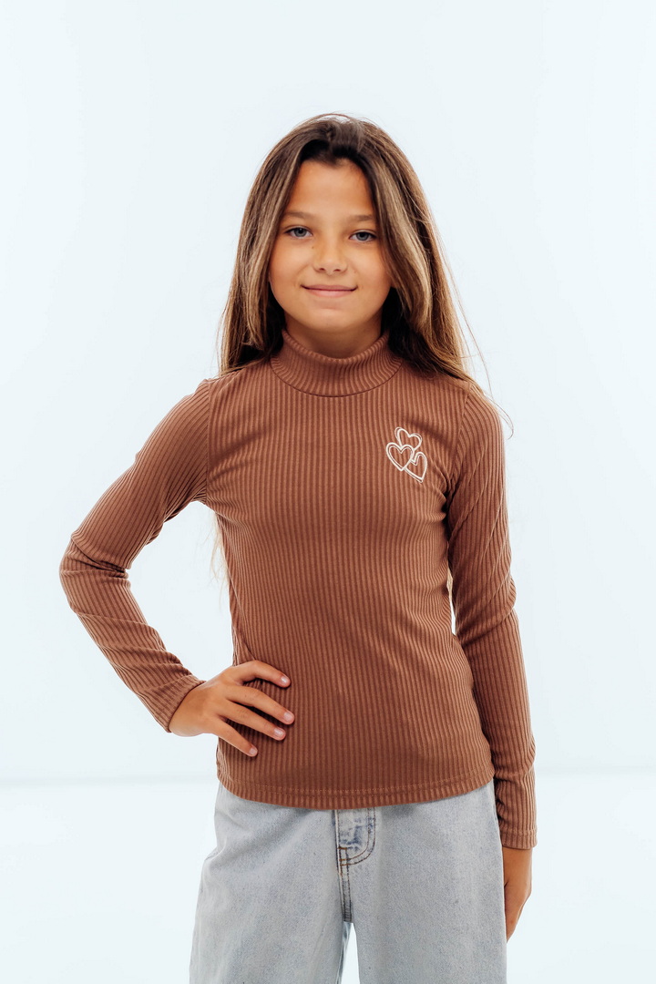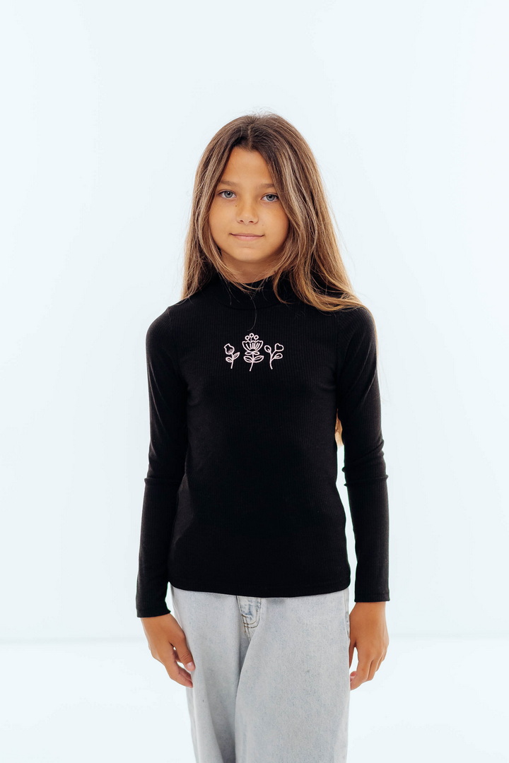 Базовий гольф для дівчаток із полівіскона. Класичний крой гольфу з коміром-стійкою без відвороту. Зпереду лаконічна вишивка. Полотно м'яке, еластичне і приємне до тіла. Тягнеться, добре тримає форму і не мнеться. Простий дизайн - ідеальна основа для створення модного зовнішнього вигляду.