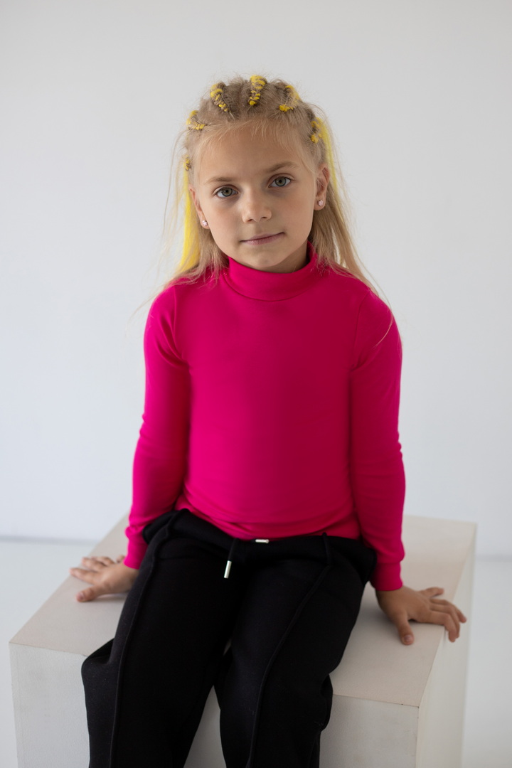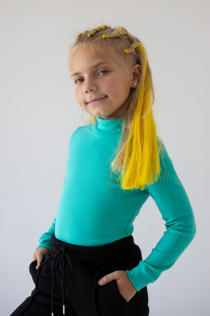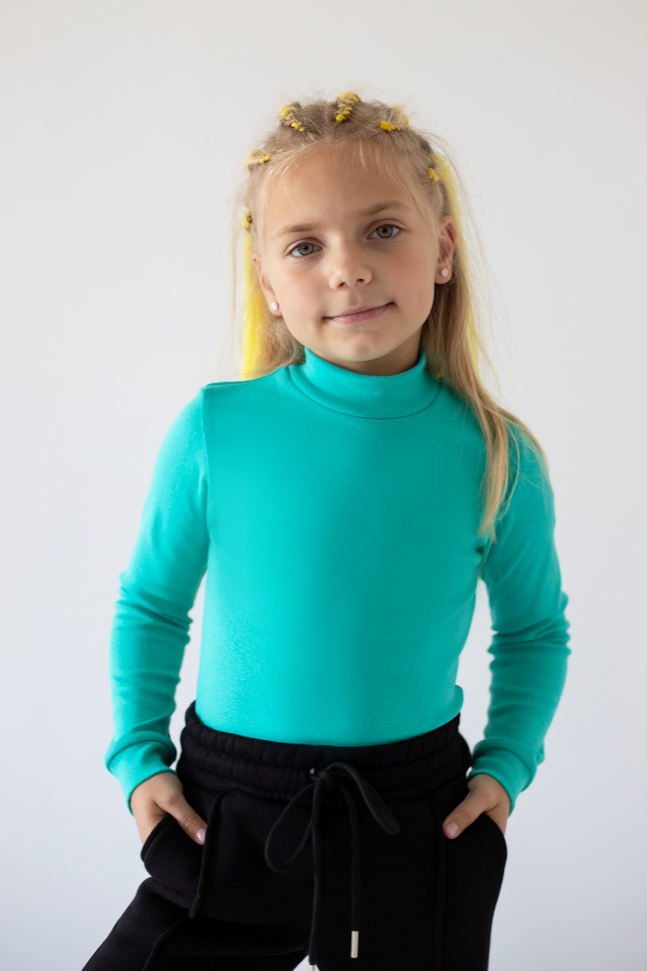 Водолазка дитяча стрейчова – стильна та зручна базова річ для щоденного носіння. Виконана з м’якого еластичного полотна, яке добре тягнеться та не сковує рухів. Має класичний високий горловий комір, довгі рукави та акуратний крій, що підкреслює охайний вигляд. Ідеально підходить для школи, прогулянок чи повсякденного гардероба. Завдяки стрейчевій тканині водолазка комфортно сідає по фігурі та зберігає форму після прання.