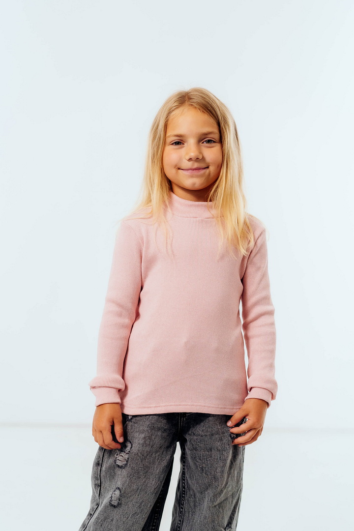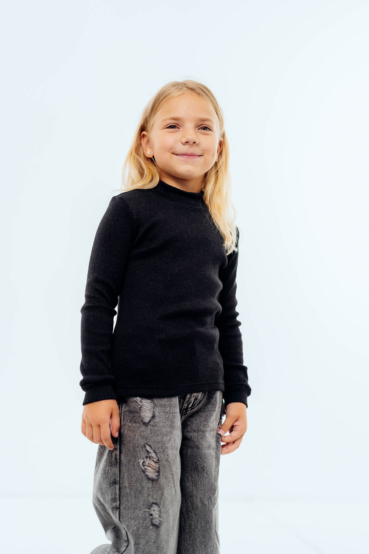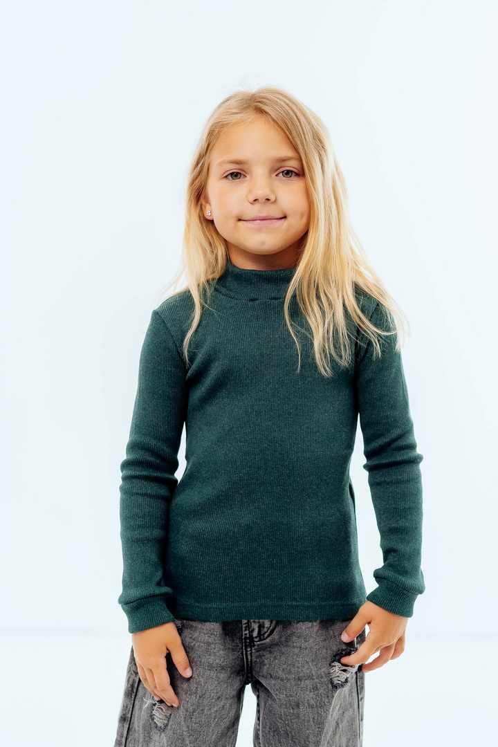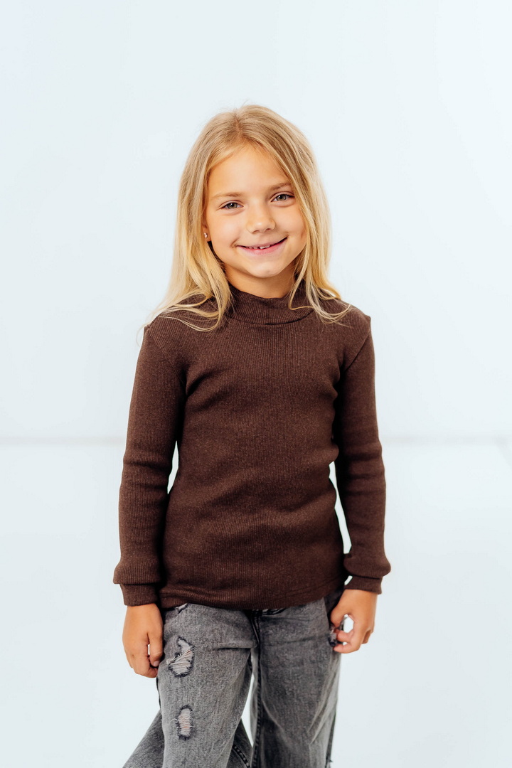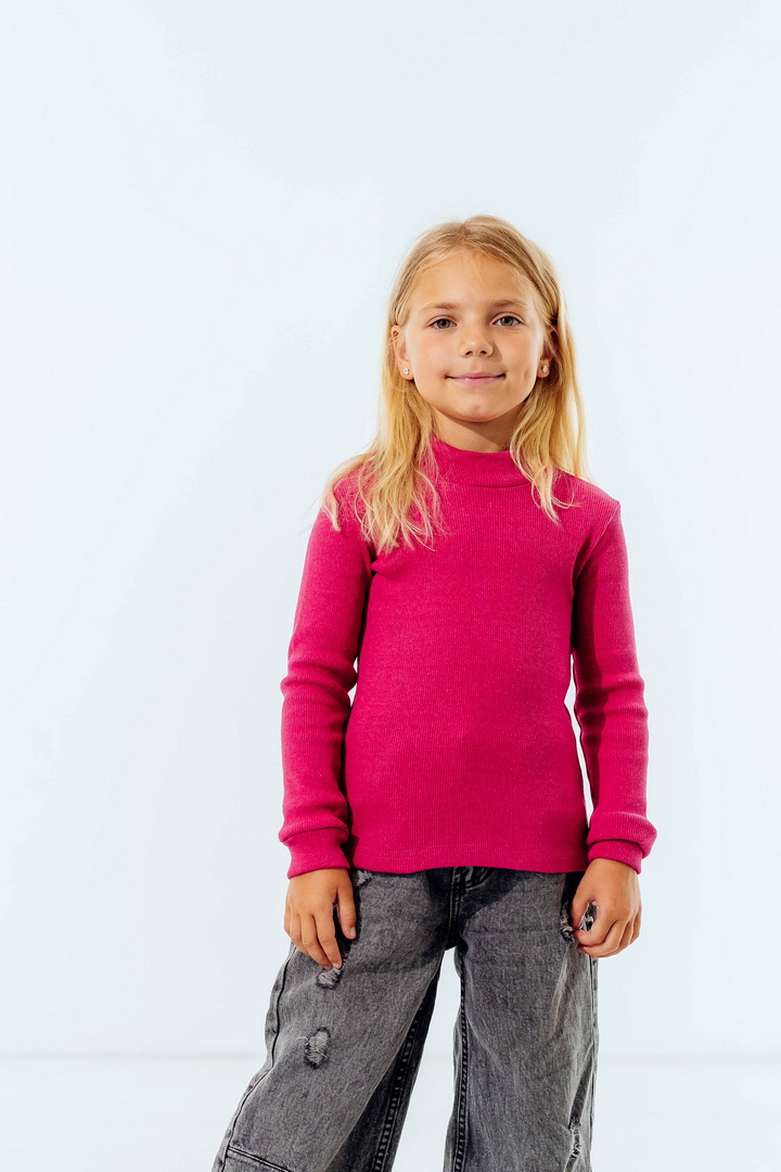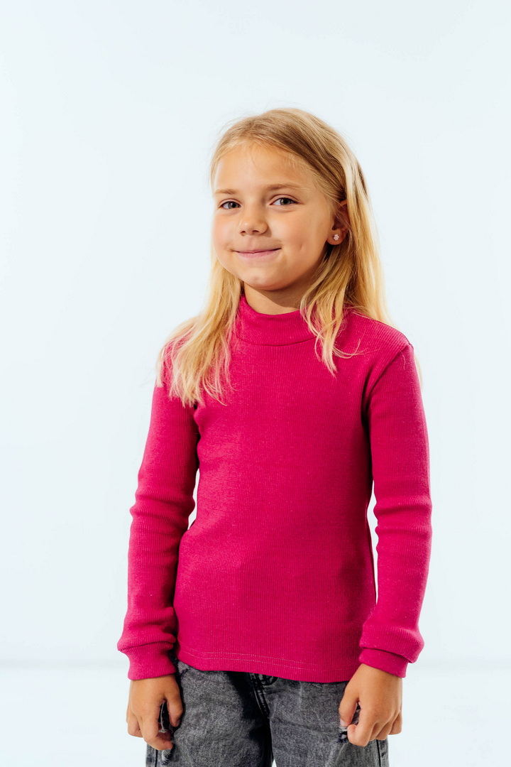 Базовий гольф для дівчаток з еластичного полотна, має невеликий начос. Полотно м'яке, приємне до тіла, добре тримає форму.