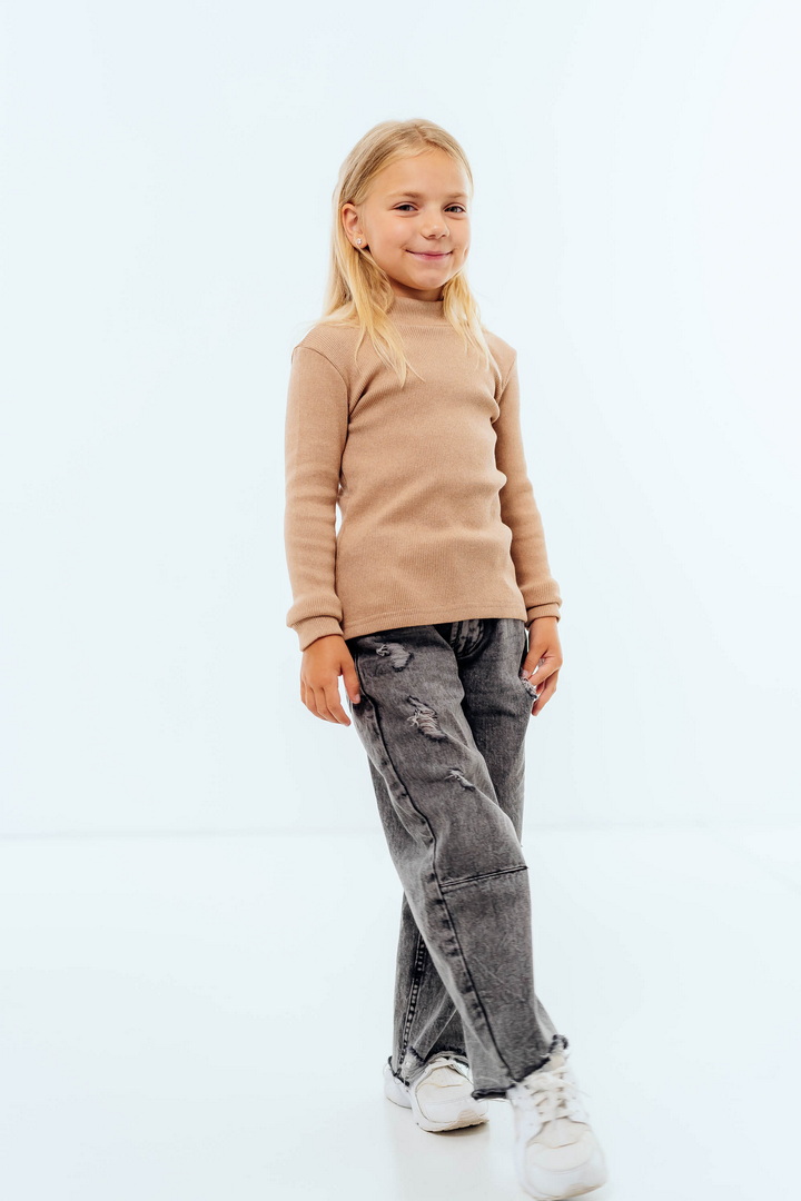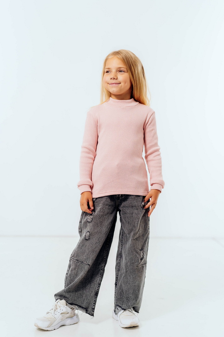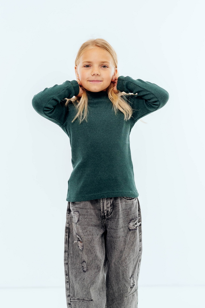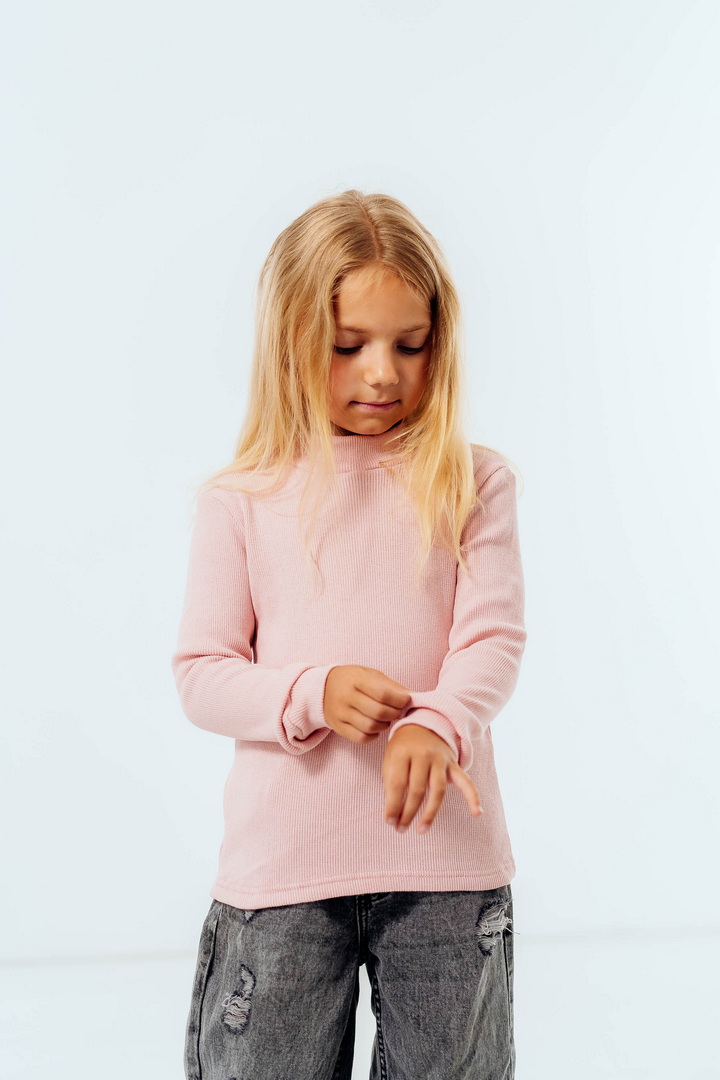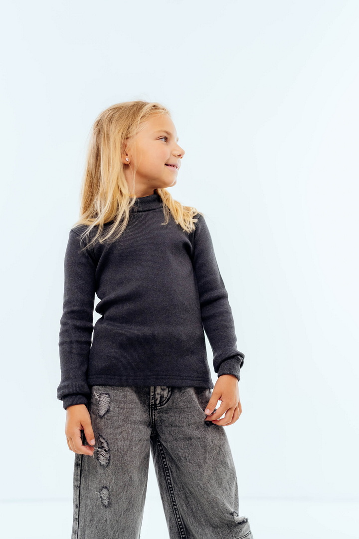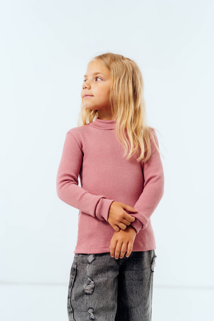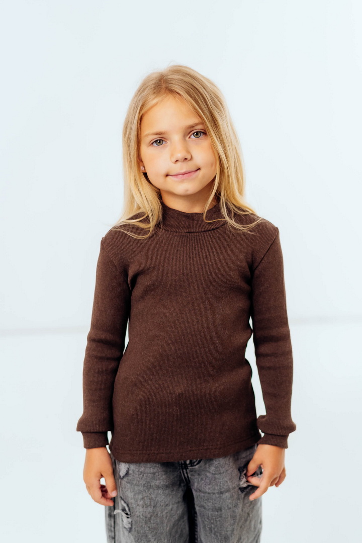 Базовий гольф для дівчаток з еластичного полотна, має невеликий начос. Полотно м'яке, приємне до тіла, добре тримає форму.