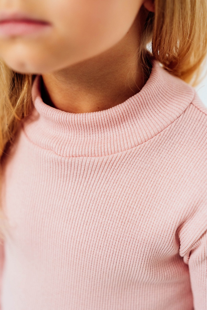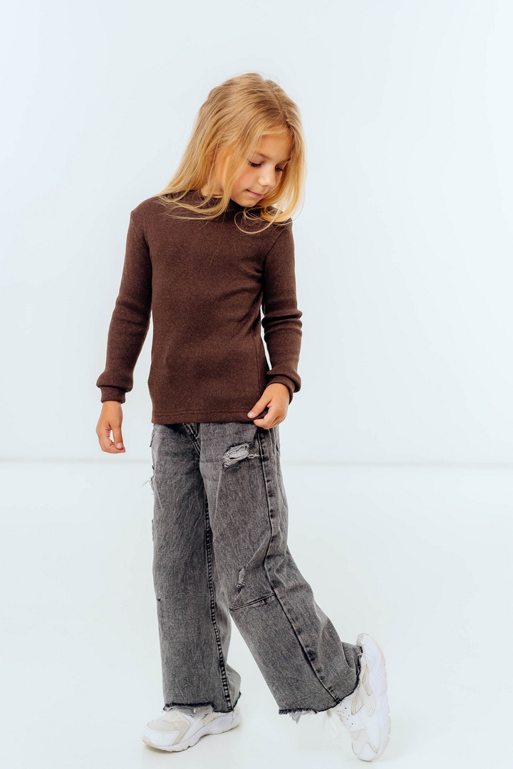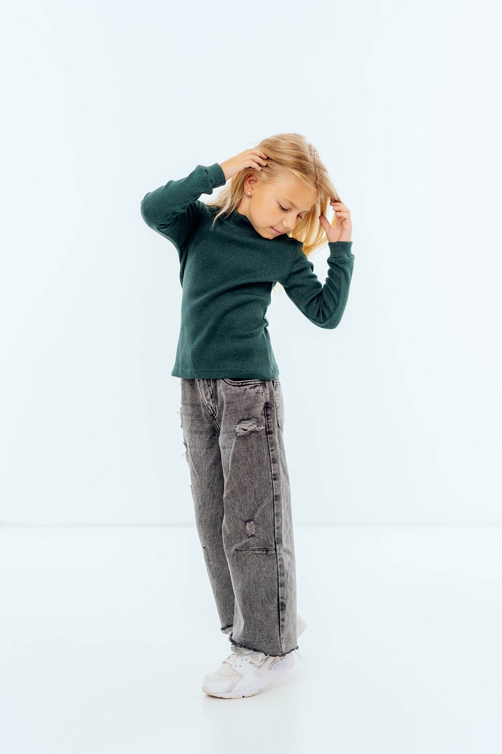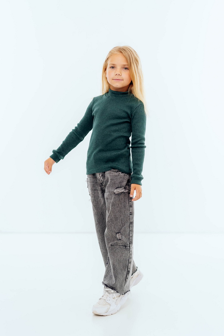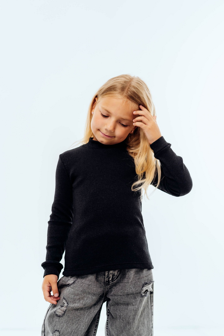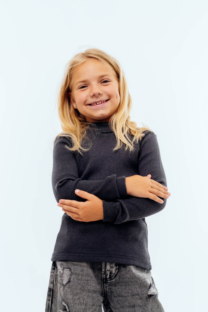 Базовий гольф для дівчаток з еластичного полотна, має невеликий начос. Полотно м'яке, приємне до тіла, добре тримає форму.