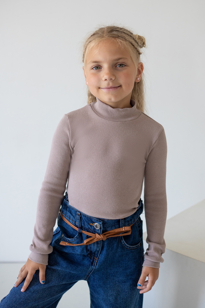 Водолазка з однотонного приємного до тіла трикотажу рубчик. Рубчик - це трикотажне полотно, яке має вив'язану фактуру англійської гумки 2x2, 3x3. Застосовується для виготовлення верхнього трикотажу. Тканина еластична, дуже добре тримає форму. Так як це натуральний матеріал, він пропускає повітря і дозволяє шкірі дихати. Підходить для щоденного використання в прохолодну пору року.