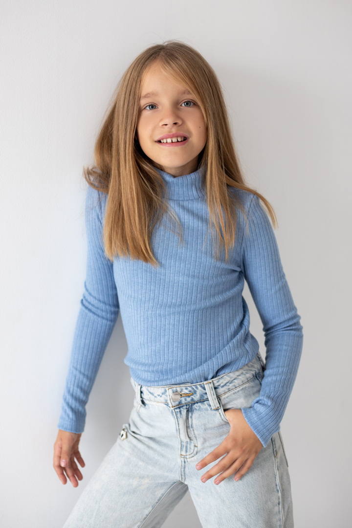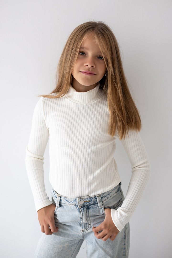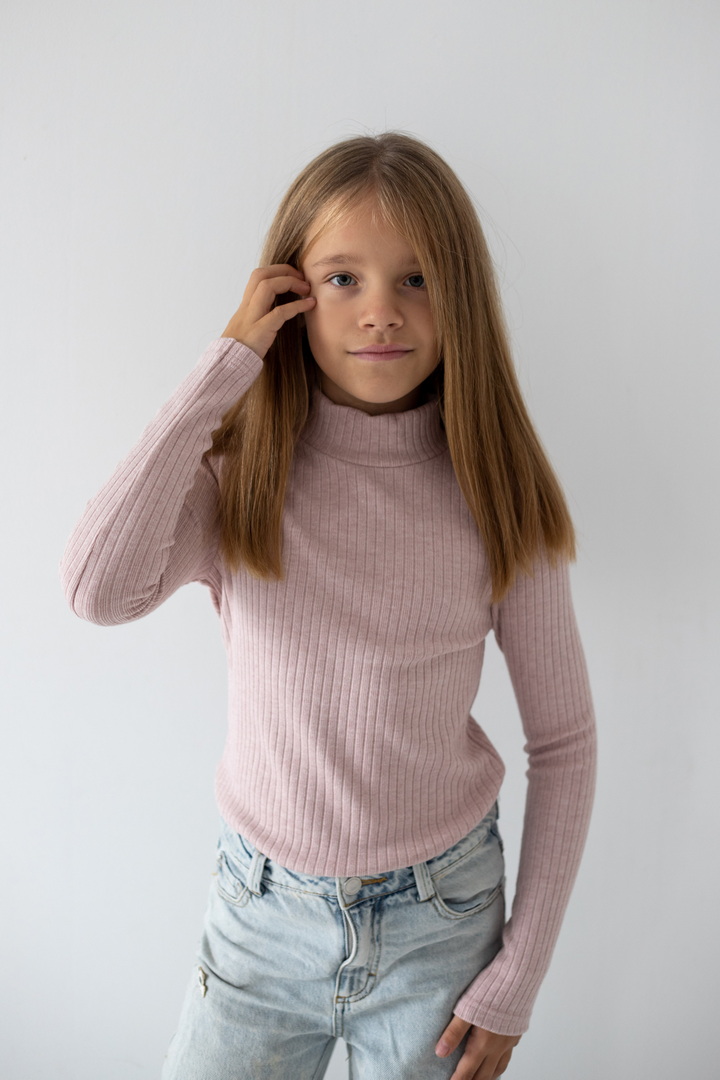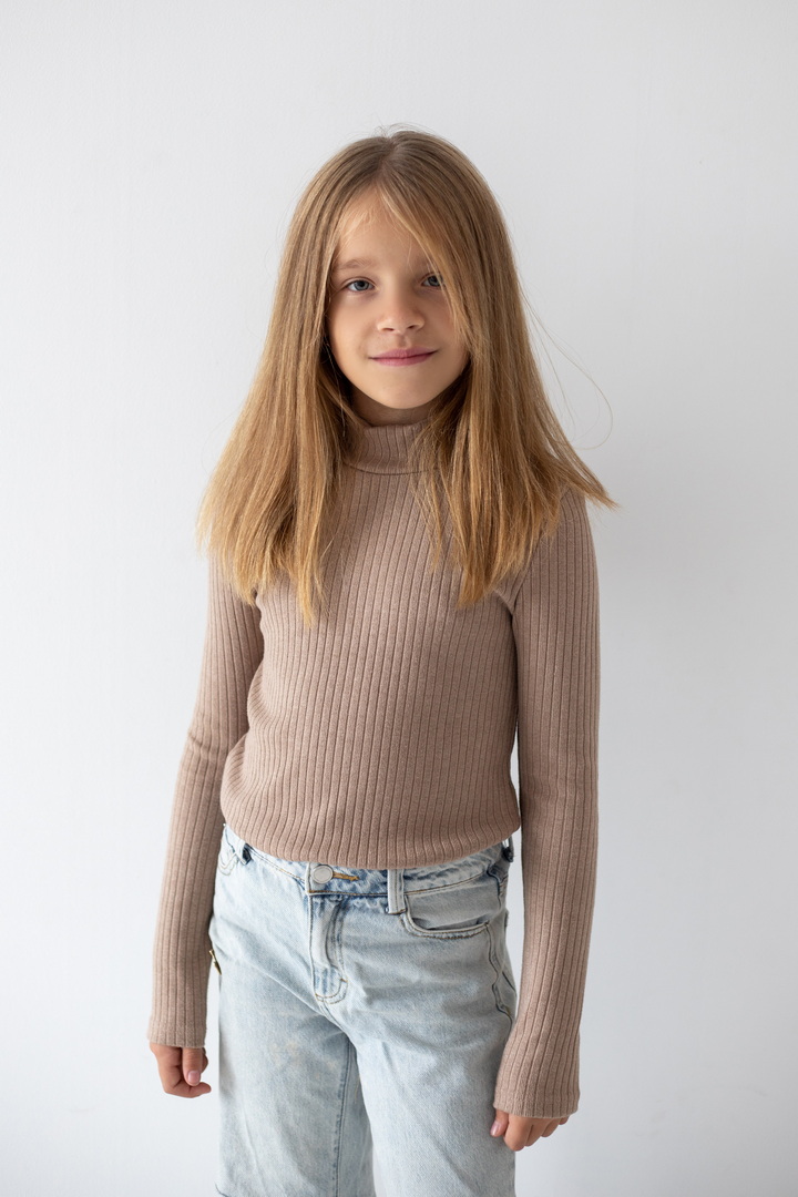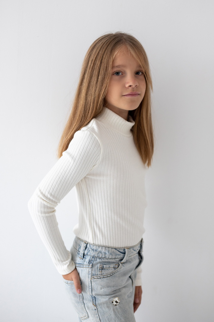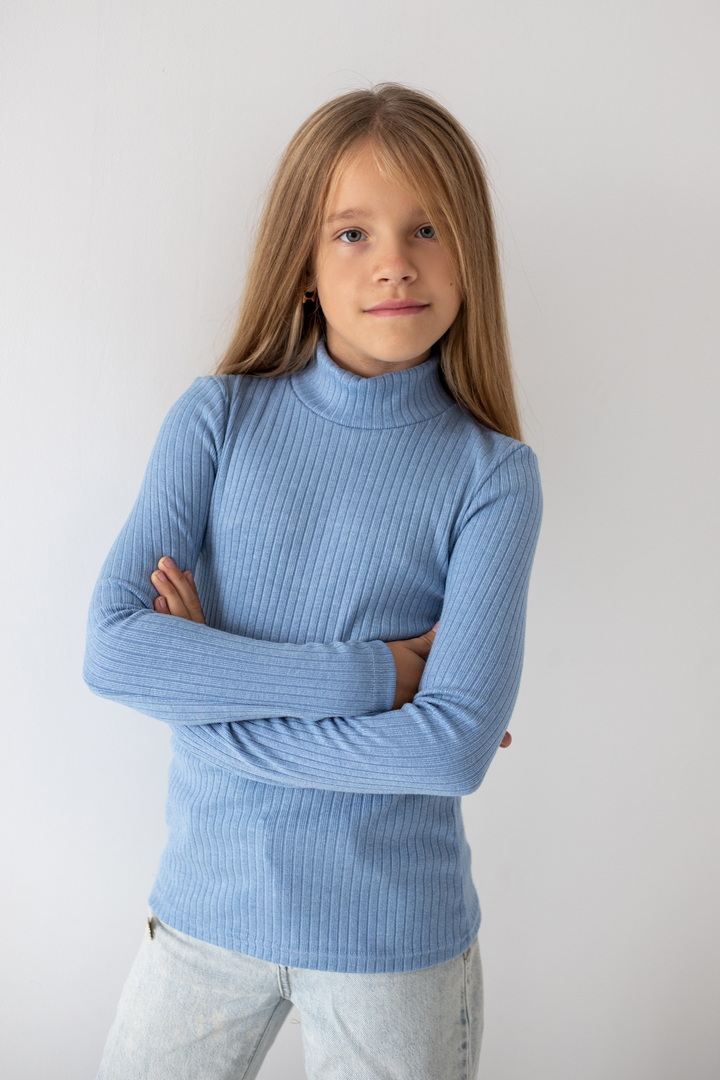 Базовий гольф для дівчаток з ангори мустанга з широкими смужками. Класичний крой гольфу з коміром - стійкою без відвороту. Полотно м'яке, еластичне і приємне до тіла. Тягнеться, добре тримає форму і не мнеться. Простий дизайн - ідеальна основа для створення модного зовнішнього вигляду.
