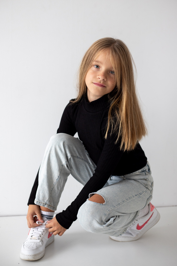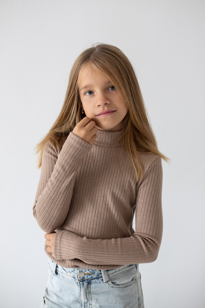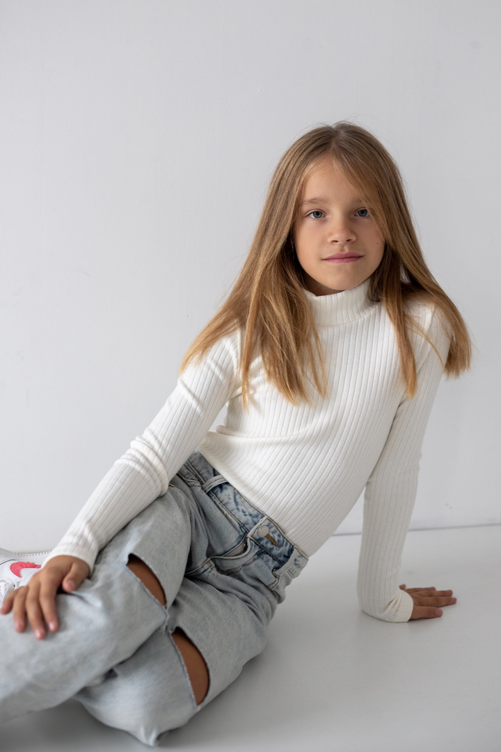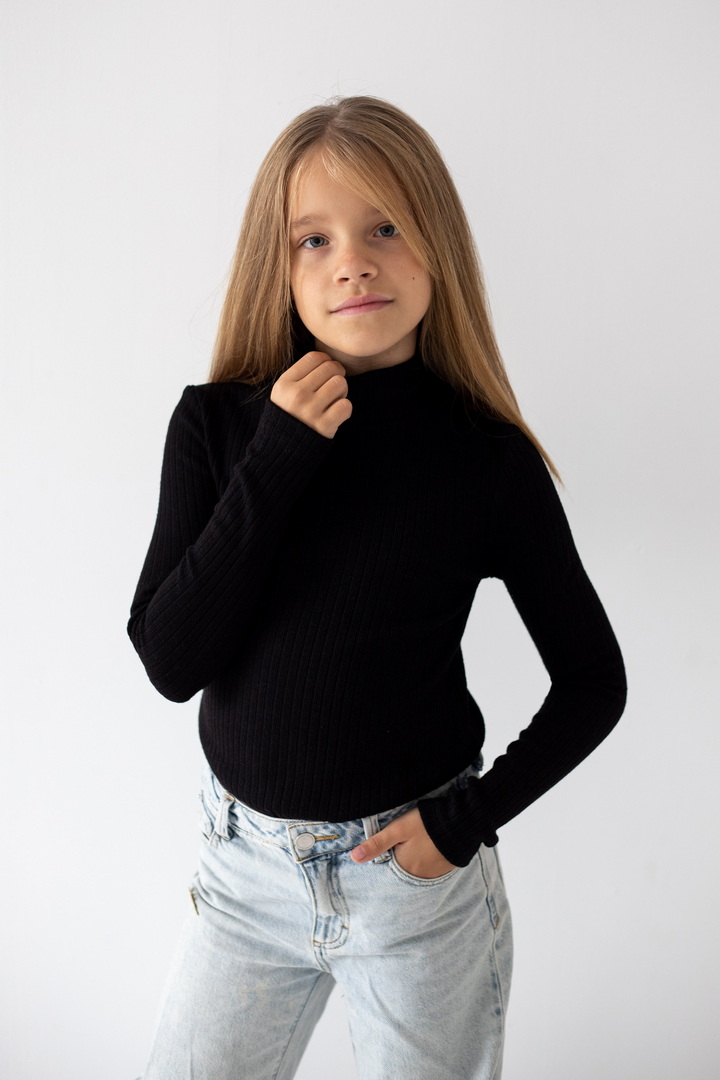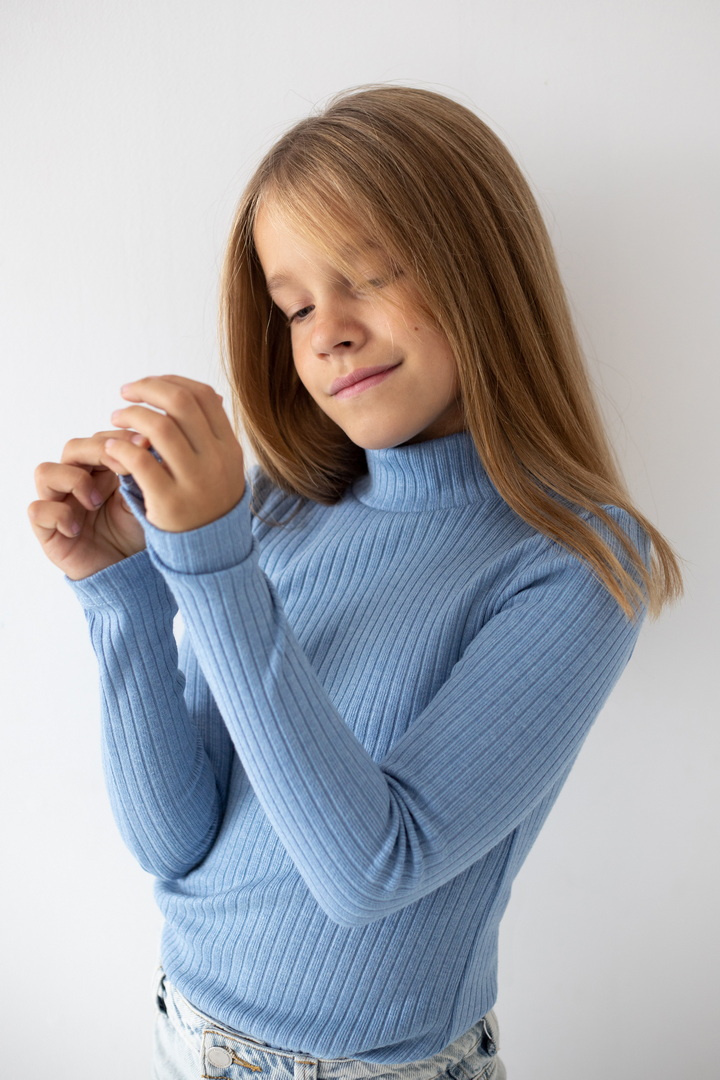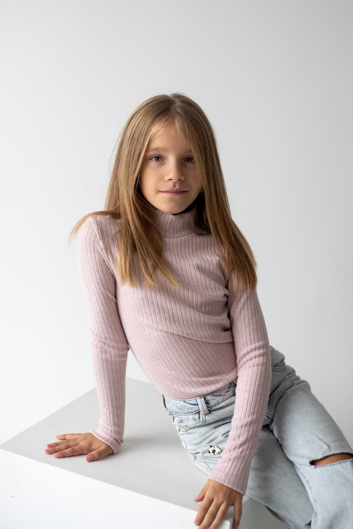 Базовий гольф для дівчаток з ангори мустанга з широкими смужками. Класичний крой гольфу з коміром - стійкою без відвороту. Полотно м'яке, еластичне і приємне до тіла. Тягнеться, добре тримає форму і не мнеться. Простий дизайн - ідеальна основа для створення модного зовнішнього вигляду.