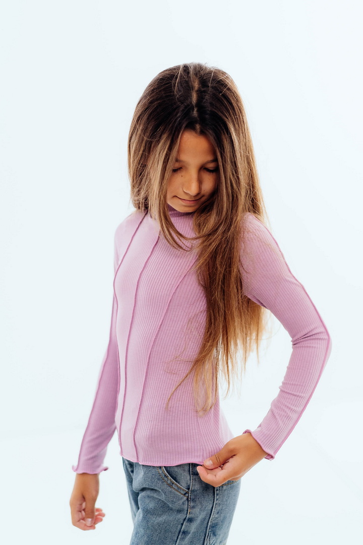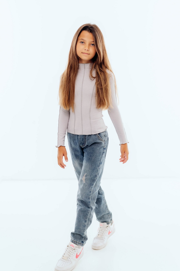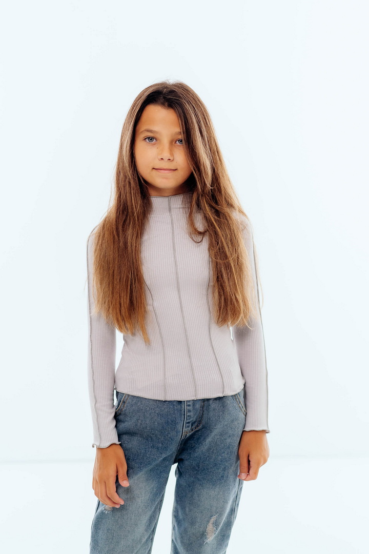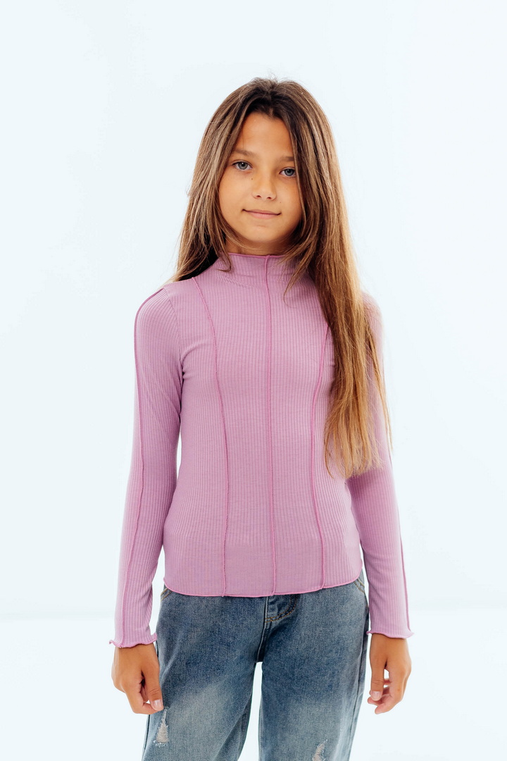 Базовий лонгслів для дівчаток з полотна "Полівіскон". Класичний крой лонгсліва з невисоким коміром без відвороту. Модель декорована оздобленням "Опіківка", що надає кофточку ніжності та легкості. Полотно м'яке, еластичне і приємне до тіла. Тягнеться, добре тримає форму і не мнеться. Простий дизайн - ідеальна основа для створення модного зовнішнього вигляду