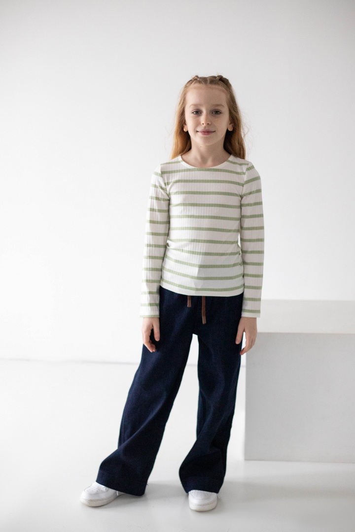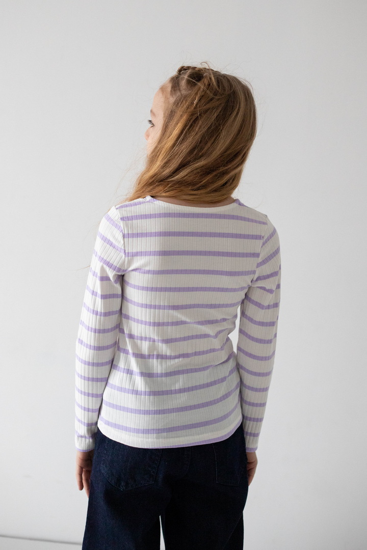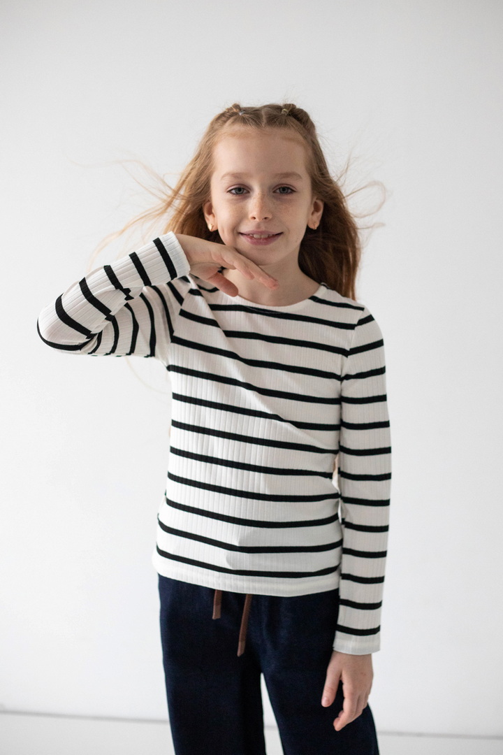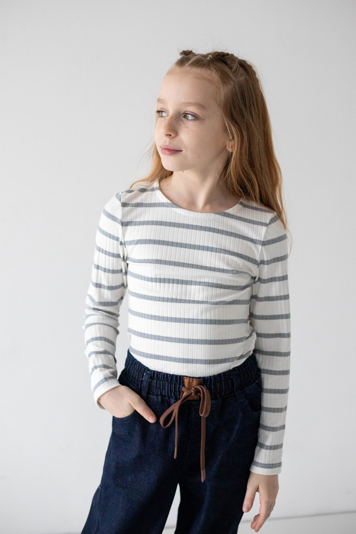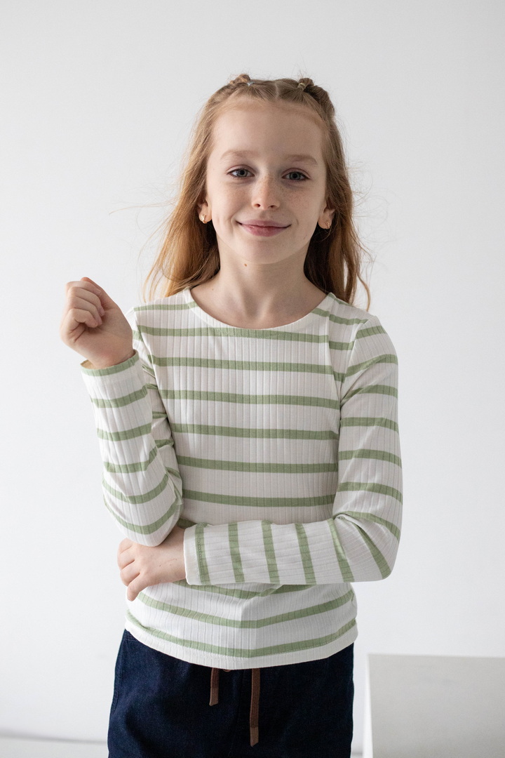 Стильний лонгслів для дівчат із трикотажу в рубчик — ідеальна річ, яка легко впишеться в будь-який гардероб. Завдяки еластичній структурі тканини, виріб м’яко прилягає до тіла, підкреслює силует та дарує максимальний комфорт. Матеріал приємний на дотик та добре пропускає повітря. Класичний крій і кругла горловина роблять модель універсальною, а довгі рукава забезпечують затишок у прохолодну погоду. Горизонтальна смужка додає лонгсліву модного акценту та візуально освіжає образ. Модель виглядає стильно як самостійний елемент, так і в поєднанні з жакетами, жилетами чи сарафанами. Практичний у догляді, не втрачає форму та колір після прання, зберігаючи охайний вигляд надовго.