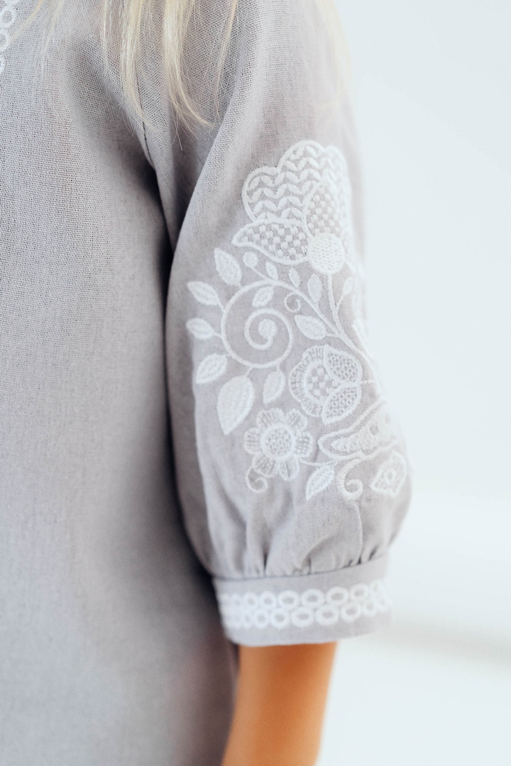 Склад: 55% льон, 45% віскоза. Вишитий орнамент: машинна вишивка