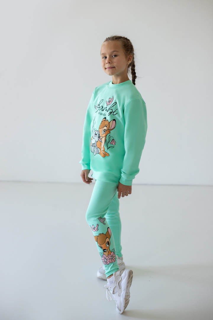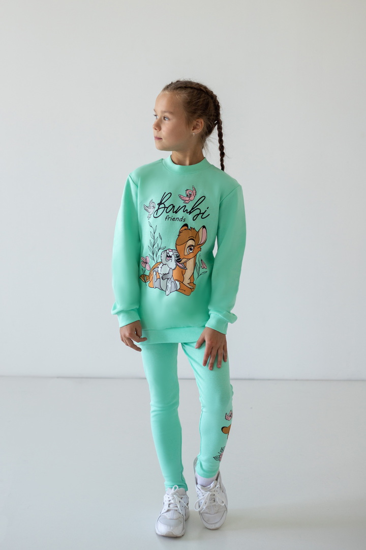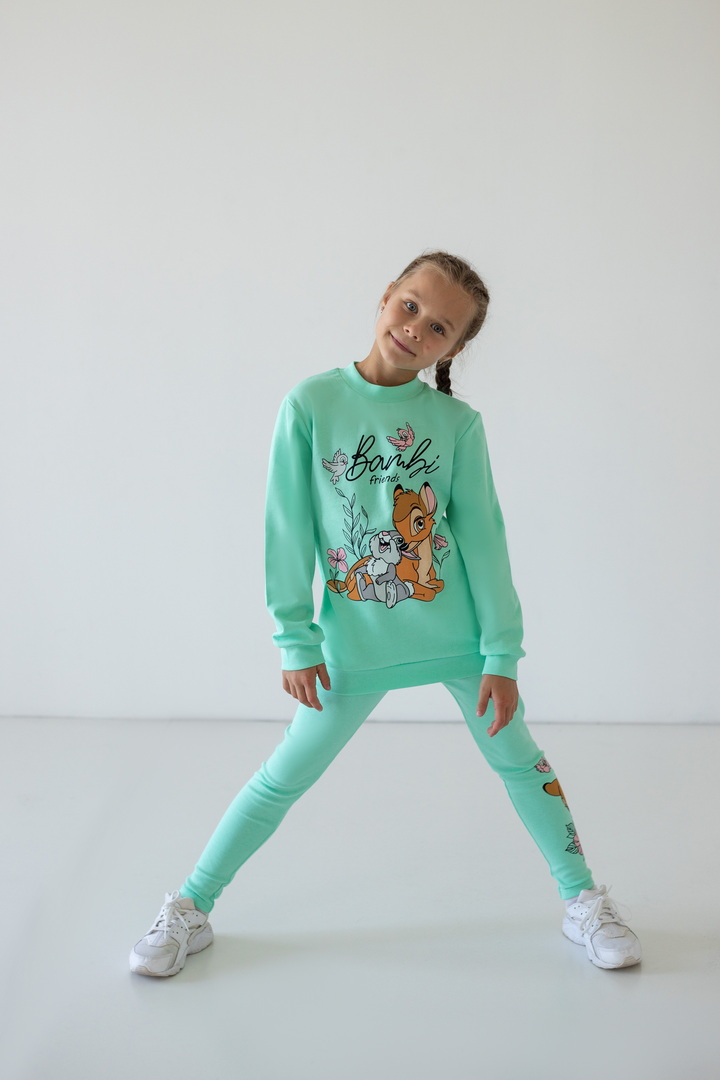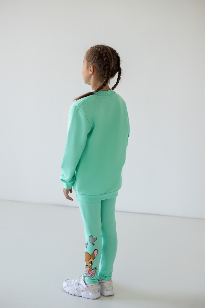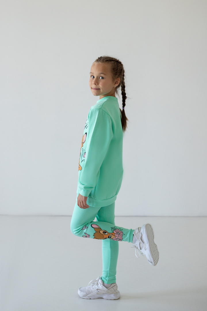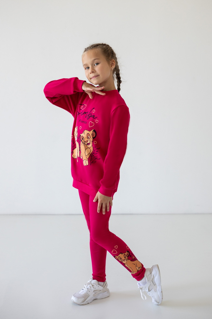 Стильний дитячий костюм, що складається зі світшоту (полотно "Футер з начосом") та легінсів (полотно "Стрейч"). Світшот прикрашений яскравим принтом, що надають образу грайливості та позитиву. Легінси доповнені принтом у нижній частині, створюючи гармонійний комплект. Костюм виготовлений із м’якої та приємної на дотик трикотажної тканини, яка забезпечує комфорт протягом дня. Ідеальний варіант для активних ігор, прогулянок чи щоденного носіння.Полотно: стрейч/футер з начосом.
