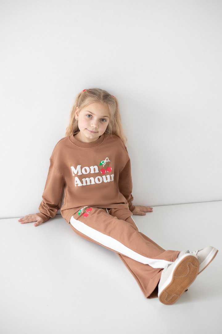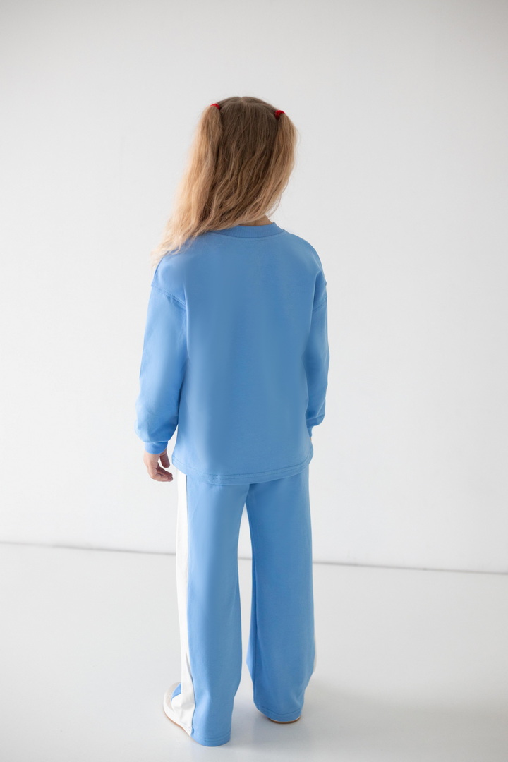 Цей костюм для дівчаток створений для активного, яскравого дитинства, де кожен рух — це радість, а кожен день наповнений пригодами. Він гармонійно поєднує в собі сучасний дизайн, продуманий крій та максимальний комфорт, який так важливий для дитини. Комплект складається зі світшота та штанів, виготовлених із якісного двониткового футера. Ця тканина відома своєю м’якістю, еластичністю та зносостійкістю. Вона приємна до тіла, добре пропускає повітря та допомагає підтримувати комфортну температуру, що робить костюм ідеальним. Світшот має вільний, трохи oversize крій, який забезпечує комфорт. Манжети на рукавах додають зручності та допомагають виробу добре тримати форму. Оригінальний принт на грудях робить образ яскравим і запам’ятовуваним, додаючи нотки грайливості та настрою. Штани виконані у сучасному стилі з прямим кроєм, що виглядає актуально та водночас дуже зручно. Еластичний пояс м’яко фіксується на талії, не тисне та забезпечує ідеальну посадку. Додаткові декоративні елементи та вставки підкреслюють стильність моделі, роблячи її не просто річчю, а справжнім fashion-образом для дитини. Цей костюм стане улюбленим у гардеробі вашої дівчинки — адже він не лише гарний, а й неймовірно комфортний.