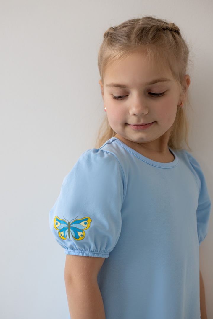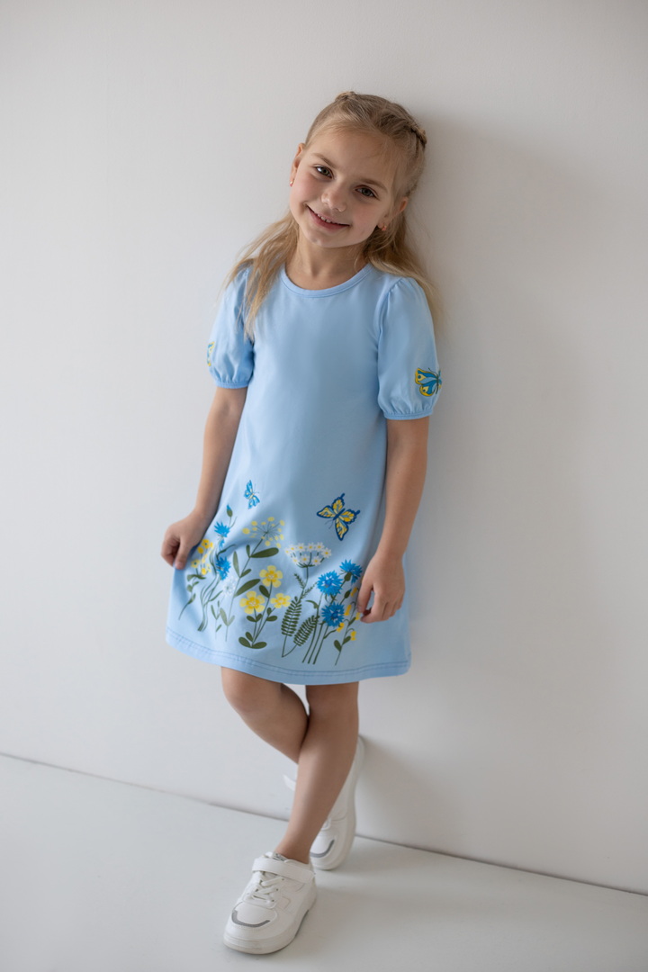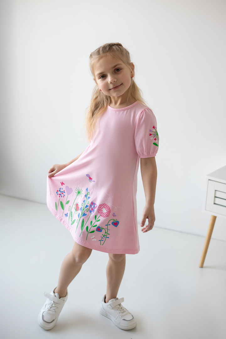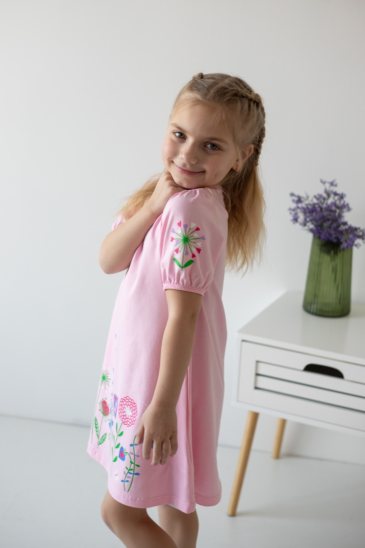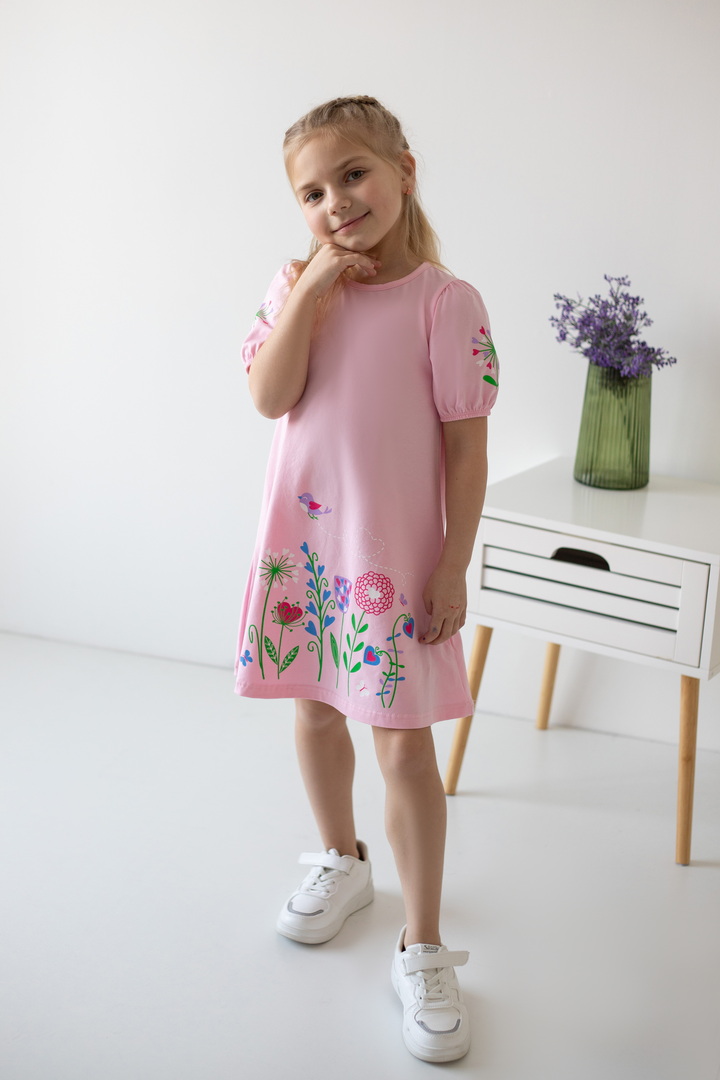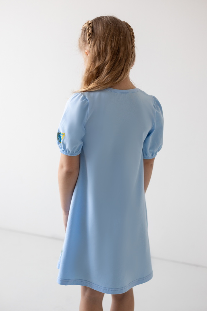 Зручна літня сукня для дівчинки. Сукня виконана з приємного до тіла яскравого та якісного трикотажного полотна "Стрейч-кулір" та прикрашена накатом. Полотно натуральне за складом, легке, в міру тонке ідеальний варіант для літа.