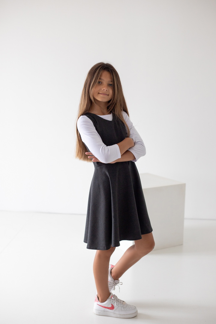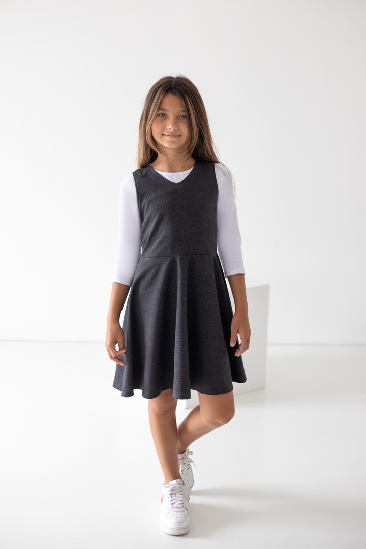 Шкільний сарафан виглядає модно і стильно, що важливо не тільки для батьків, але і для самої дитини. Адже одяг має бути не тільки практичним і зручним, а й відповідати всім критеріям дитячої моди. Цей гарний сарафан чудово підійде як на кожен день, так і для урочистостей. Шкільний сарафан виконаний із полотна "Костюмка", ззаду застібається на блискавку.