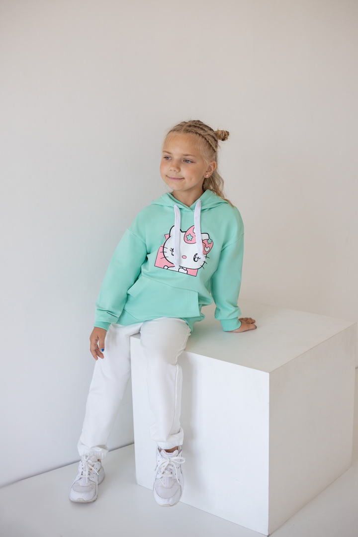 Комфортний худі для дітей з якісного трикотажного полотна "Футер двонитковий". Модель прямого силуету, довгі рукави та низ – з манжетами. Кишеня-кенгуру на лицьовій частині порадує вашу дитину. Худі - це відмінний вибір для повсякденного носіння, що буде актуальним незалежно від модних тенденцій. Його легко можна комбінувати з будь-яким повсякденним одягом – штани, шорти, джинси. Худі також стане чудовим подарунком у пам'ятний день з будь-якого випадку – день народження та просто знак уваги до дитини!