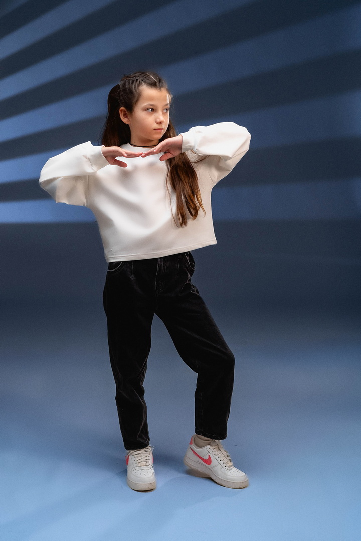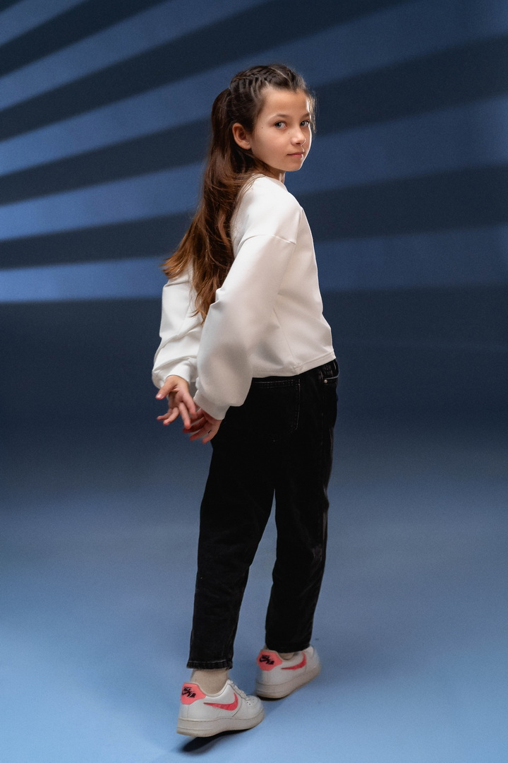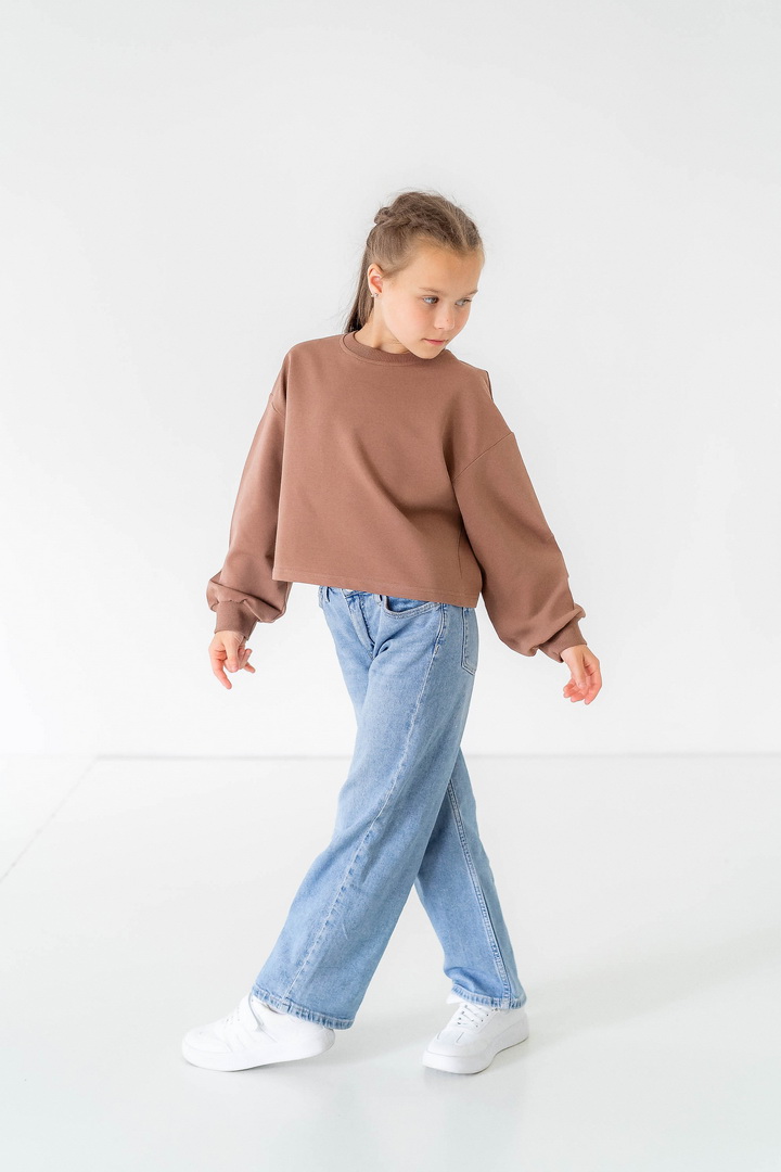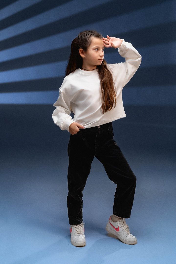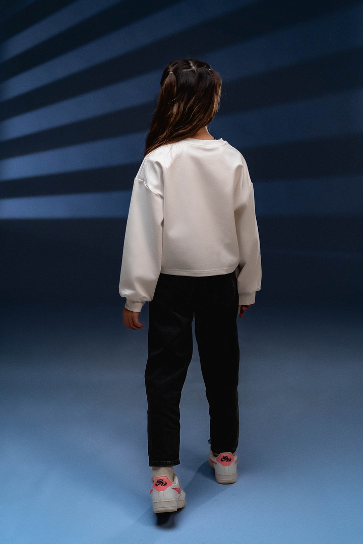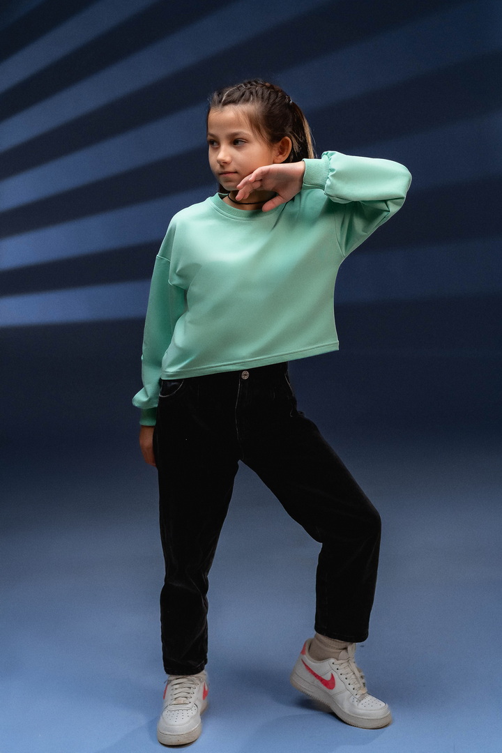 Світшот для дівчаток виготовлений з полотна "Футер двонитковий". Модель укороченого вільного крою, цей стиль - це головна тенденція у світі моди, такі речі виглядають спокійно, комфортно та надають образам "Легкості". Світшот відмінно поєднується з брюками, джинсами - така кофточка невід'ємний атрибут у гардеробі незалежно від статі чи віку.